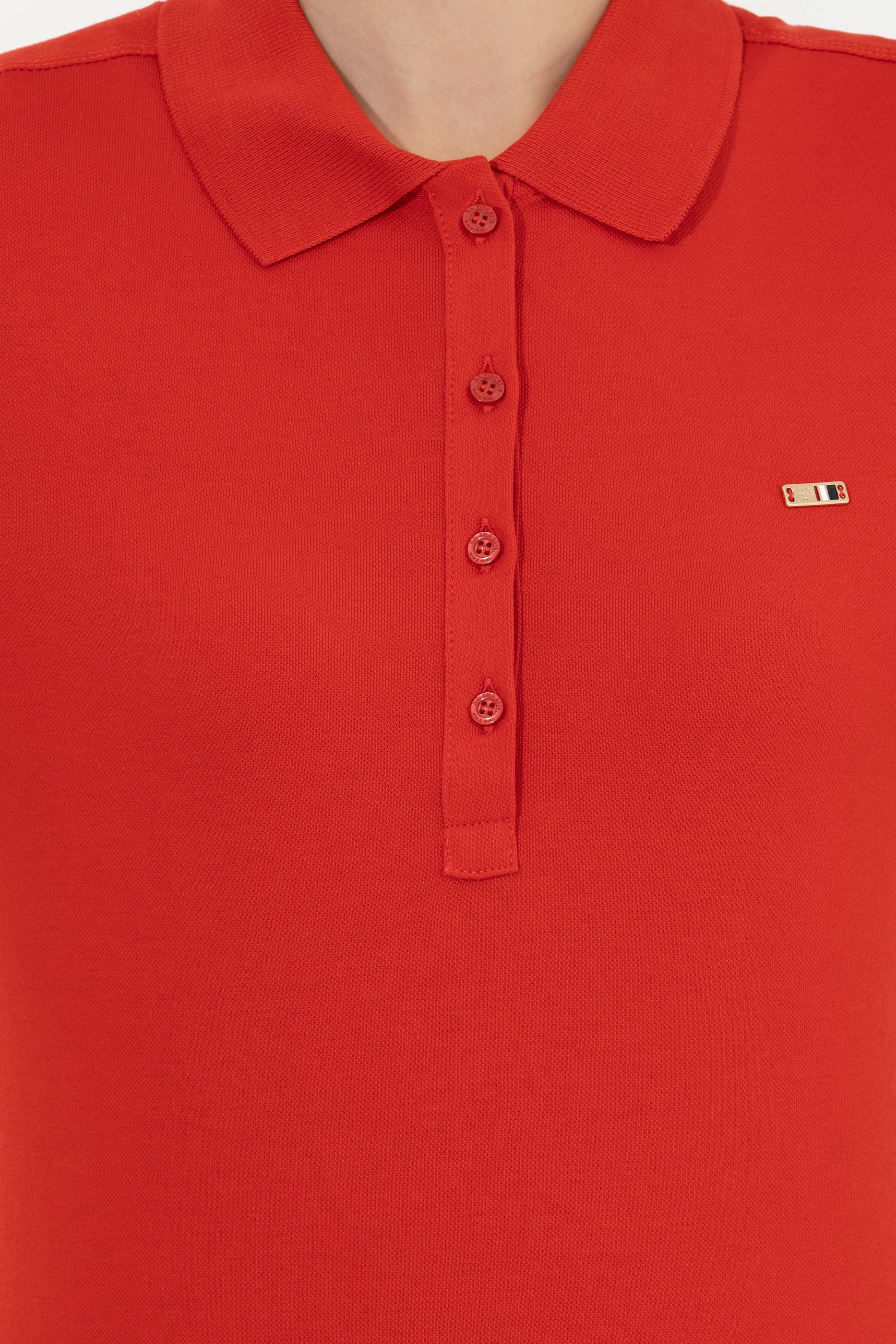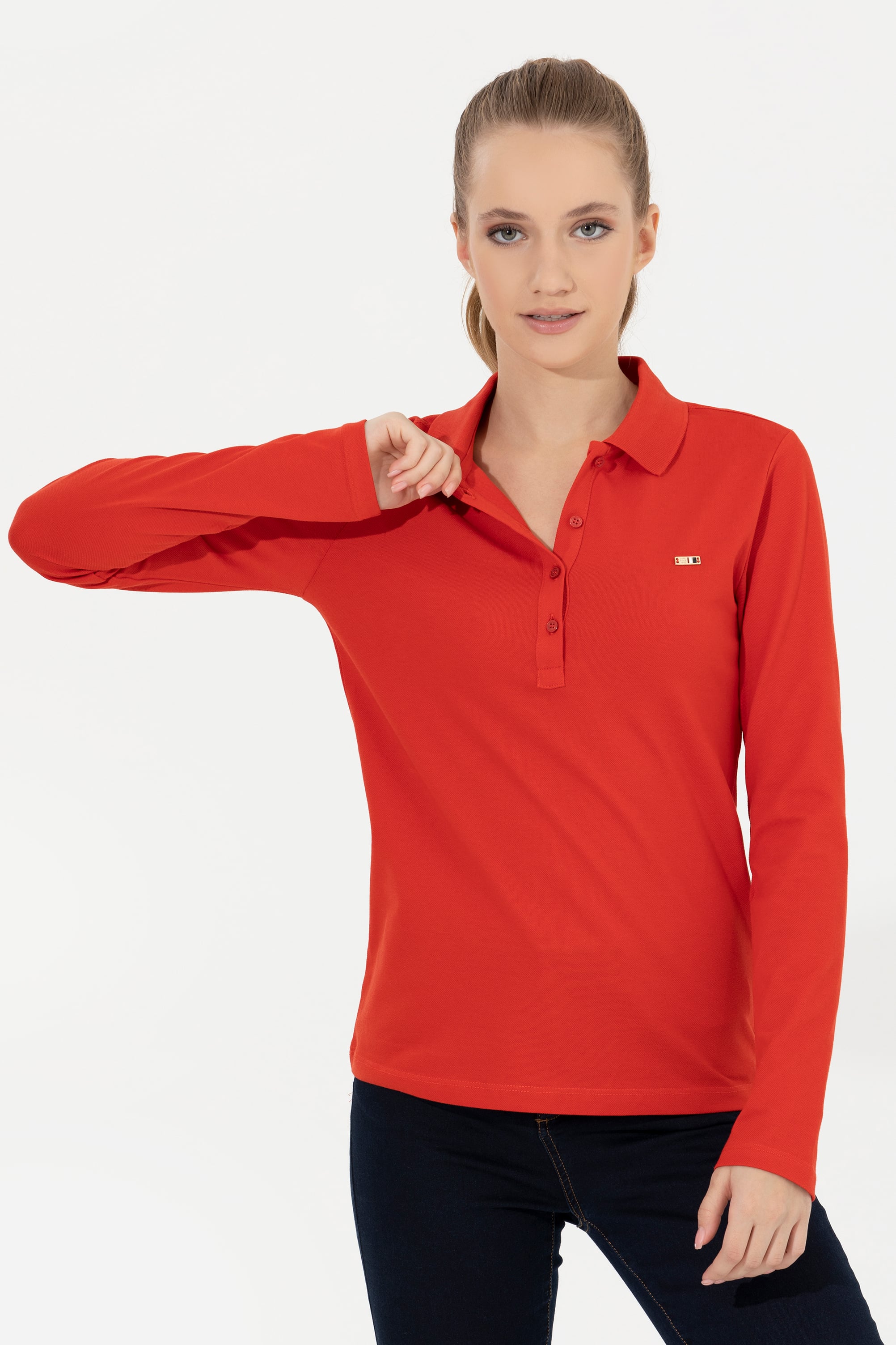 Kadın Kırmızı Basic Polo Yaka Sweatshirt