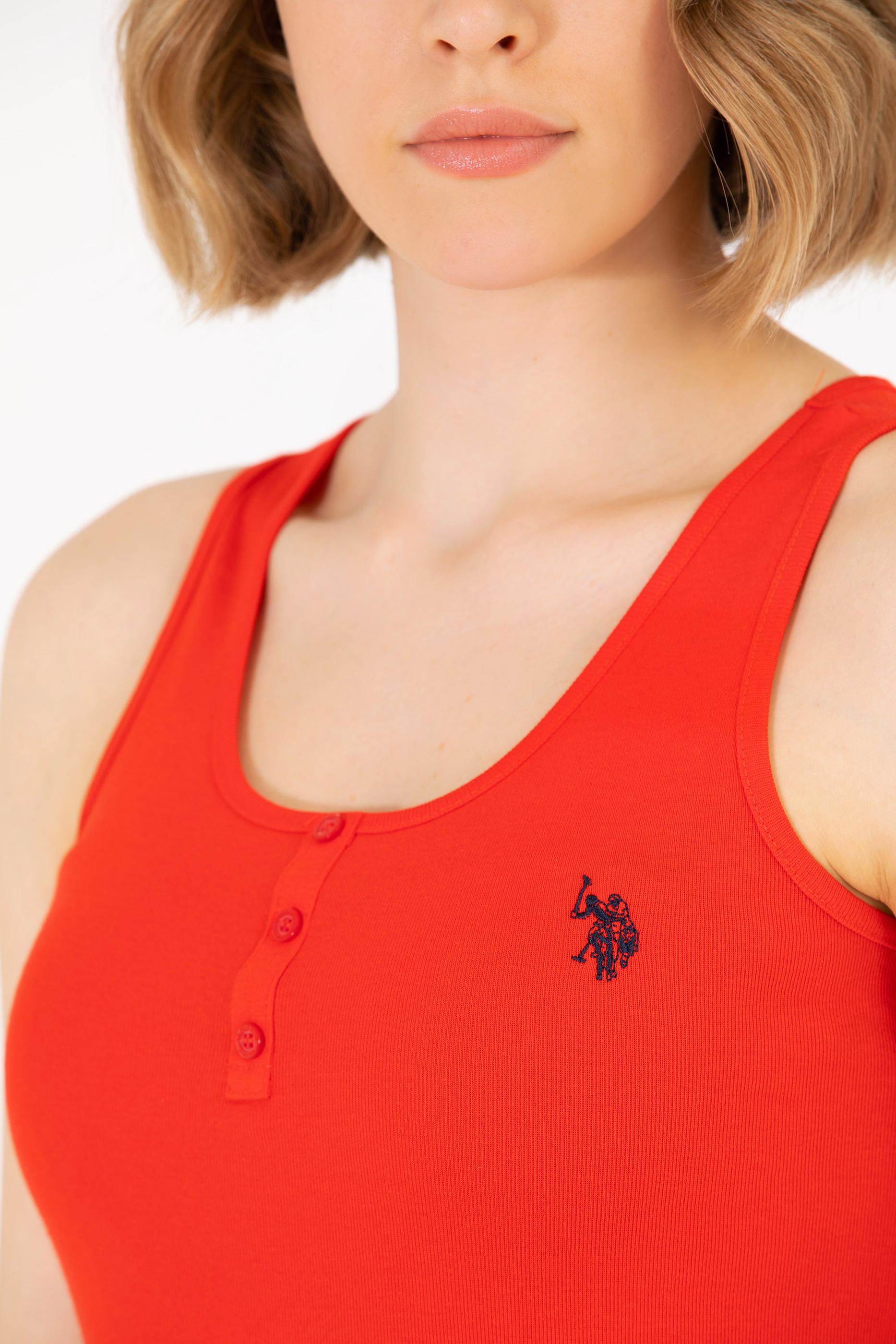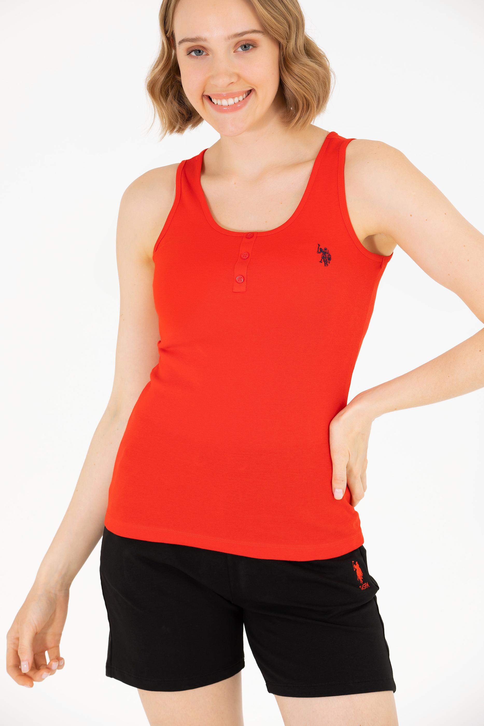 Kadın Kırmızı Bisiklet Yaka Kolsuz Basic Tişört