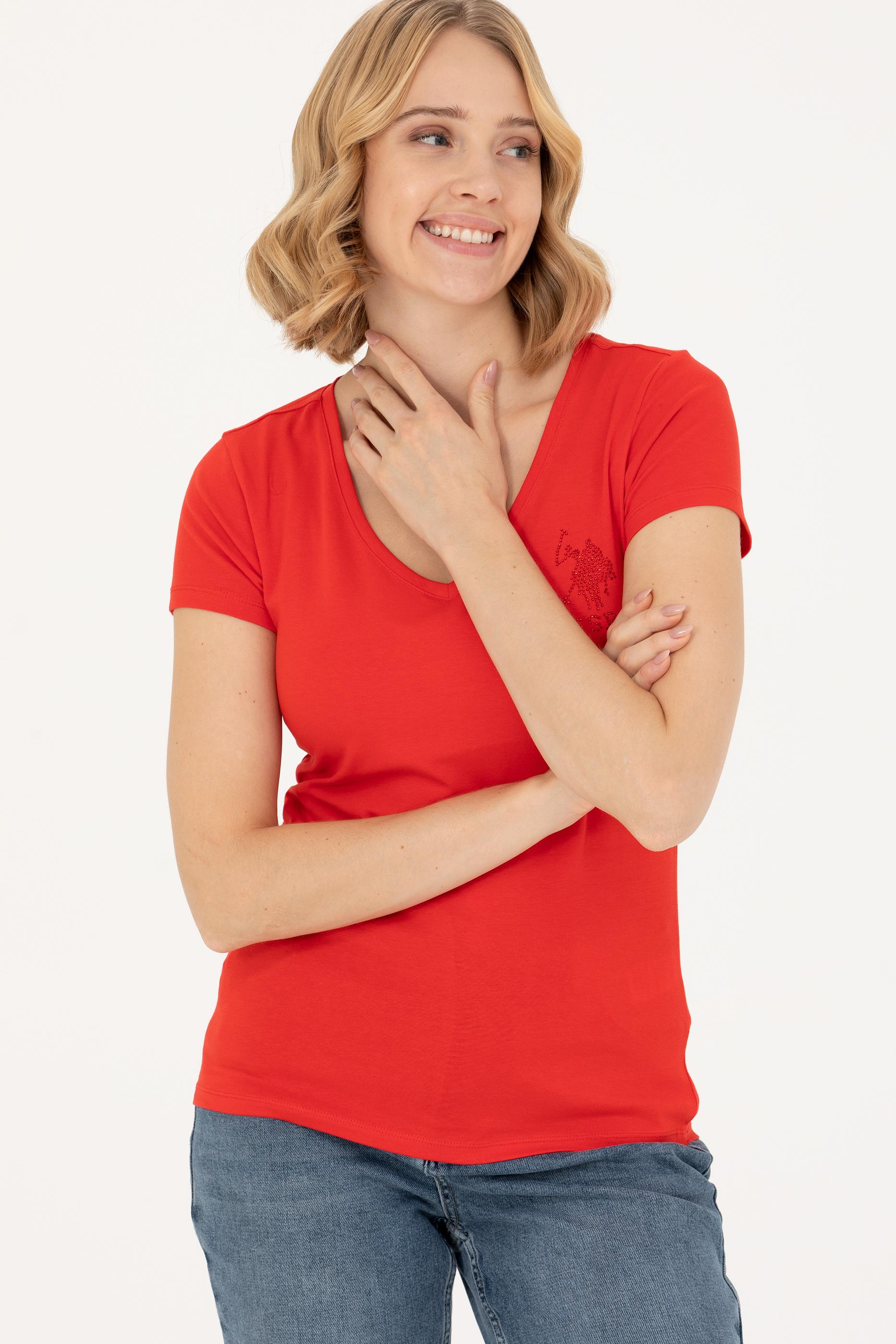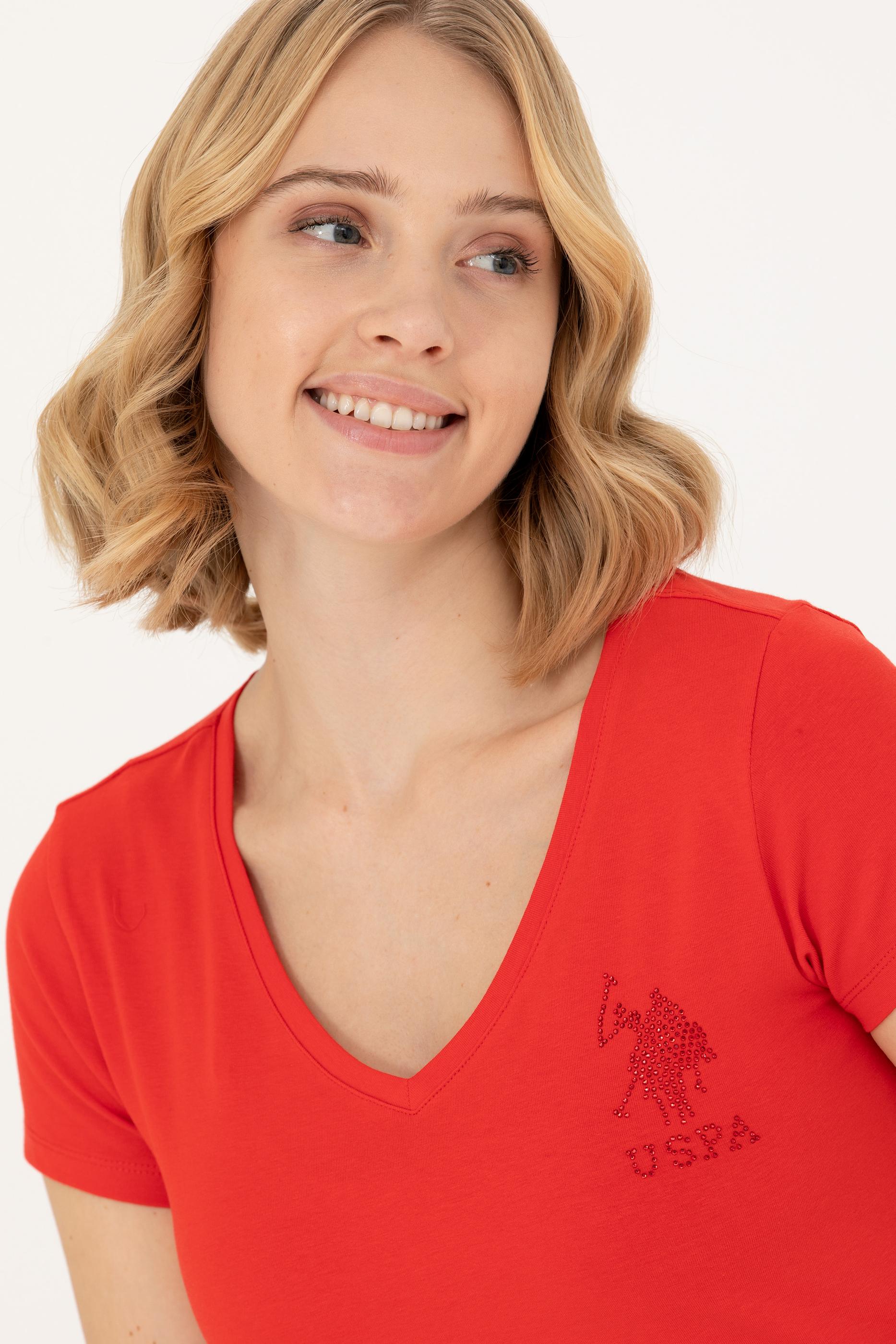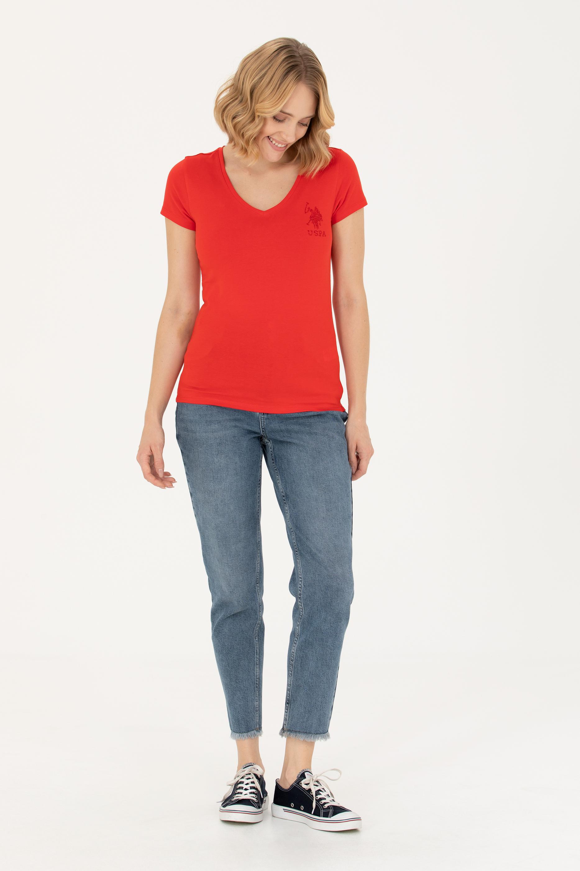 Kadın Kırmızı Basic V Yaka Tişört