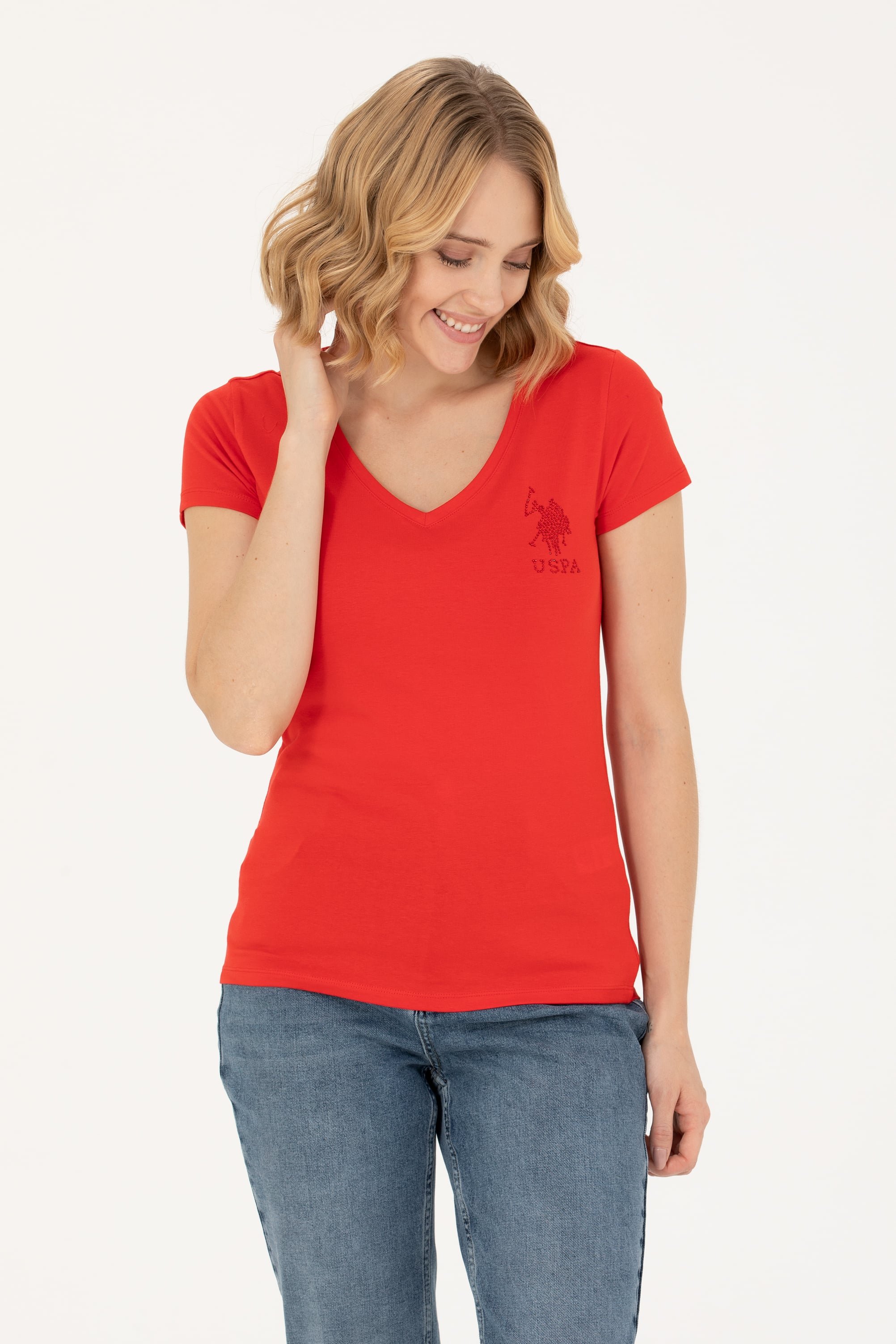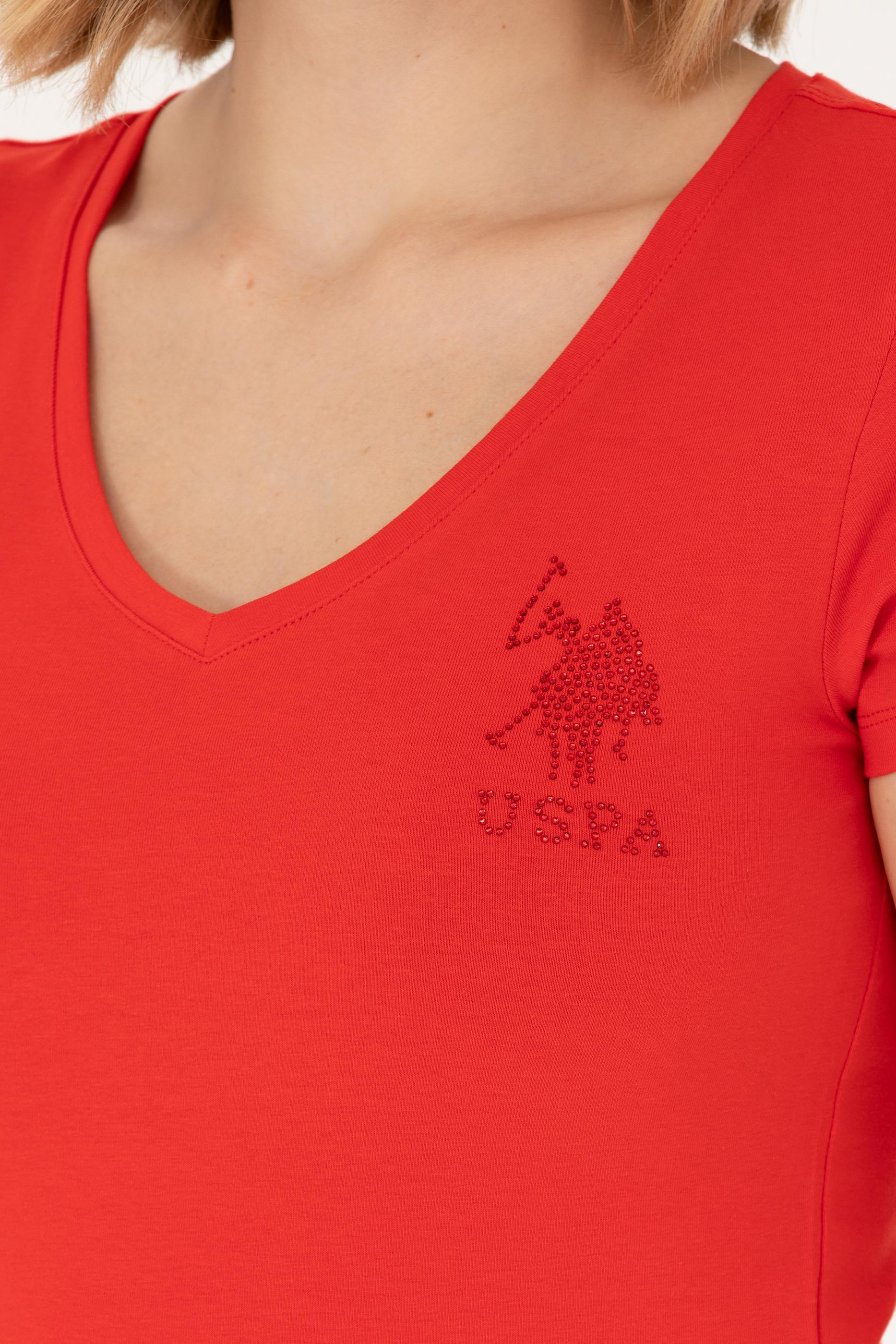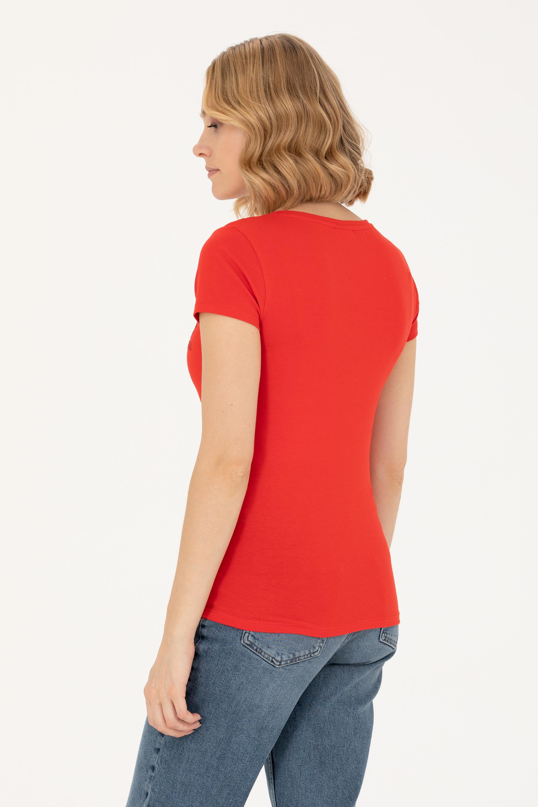 Kadın Kırmızı Basic V Yaka Tişört