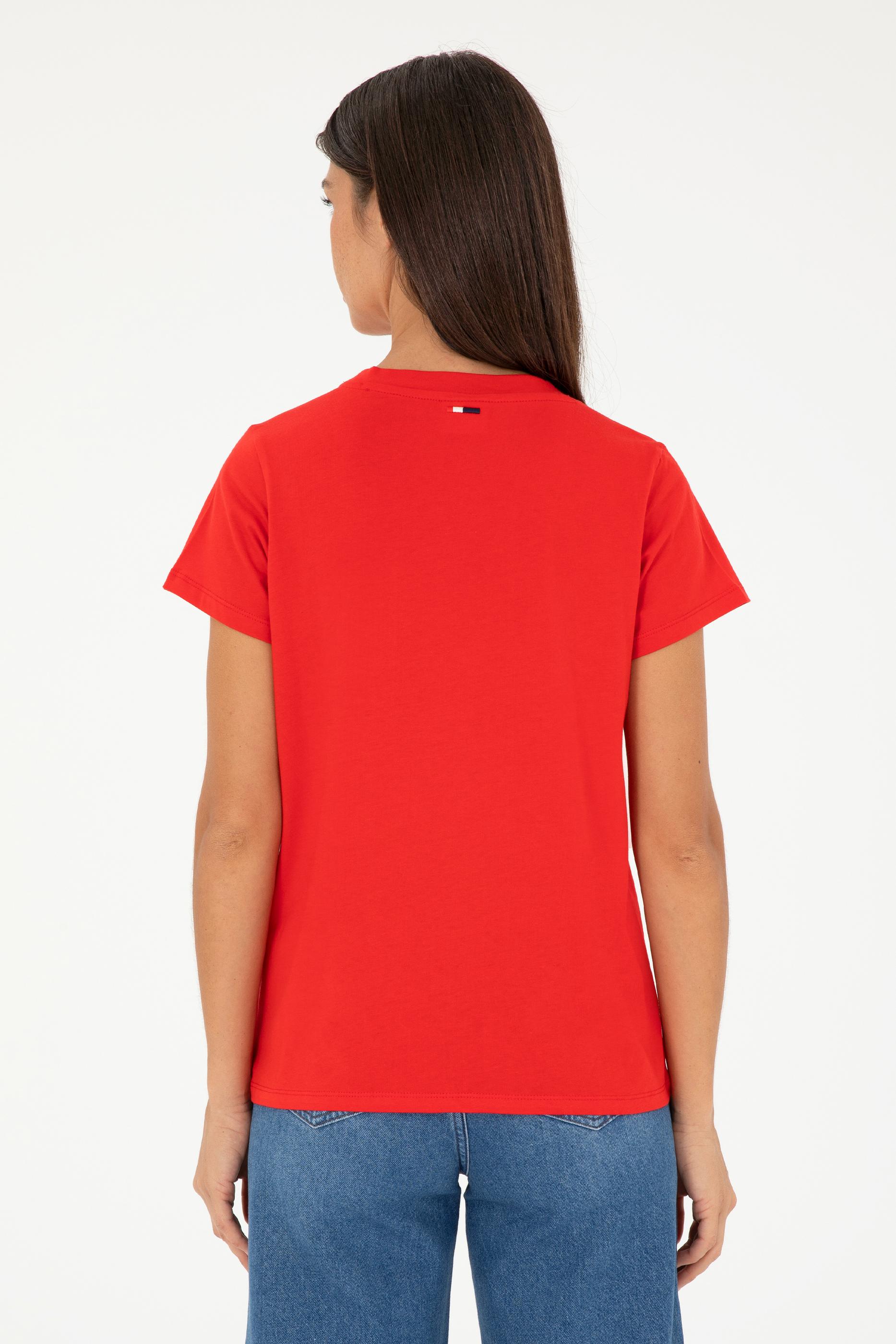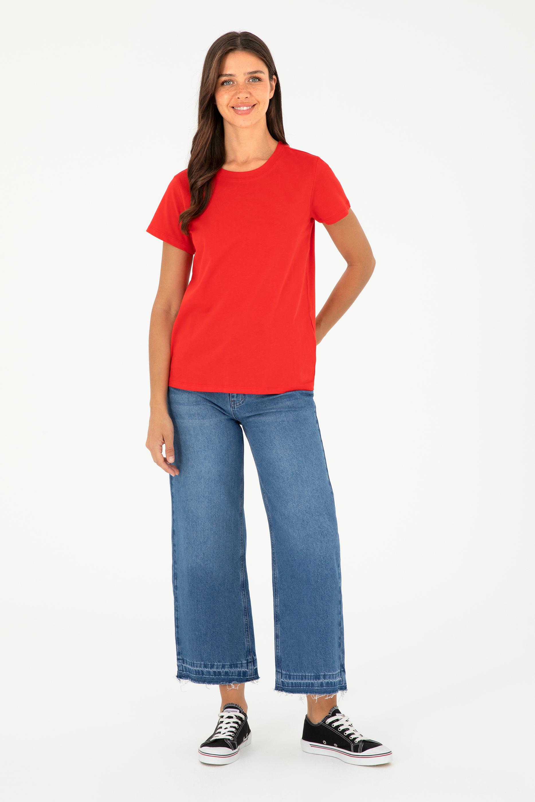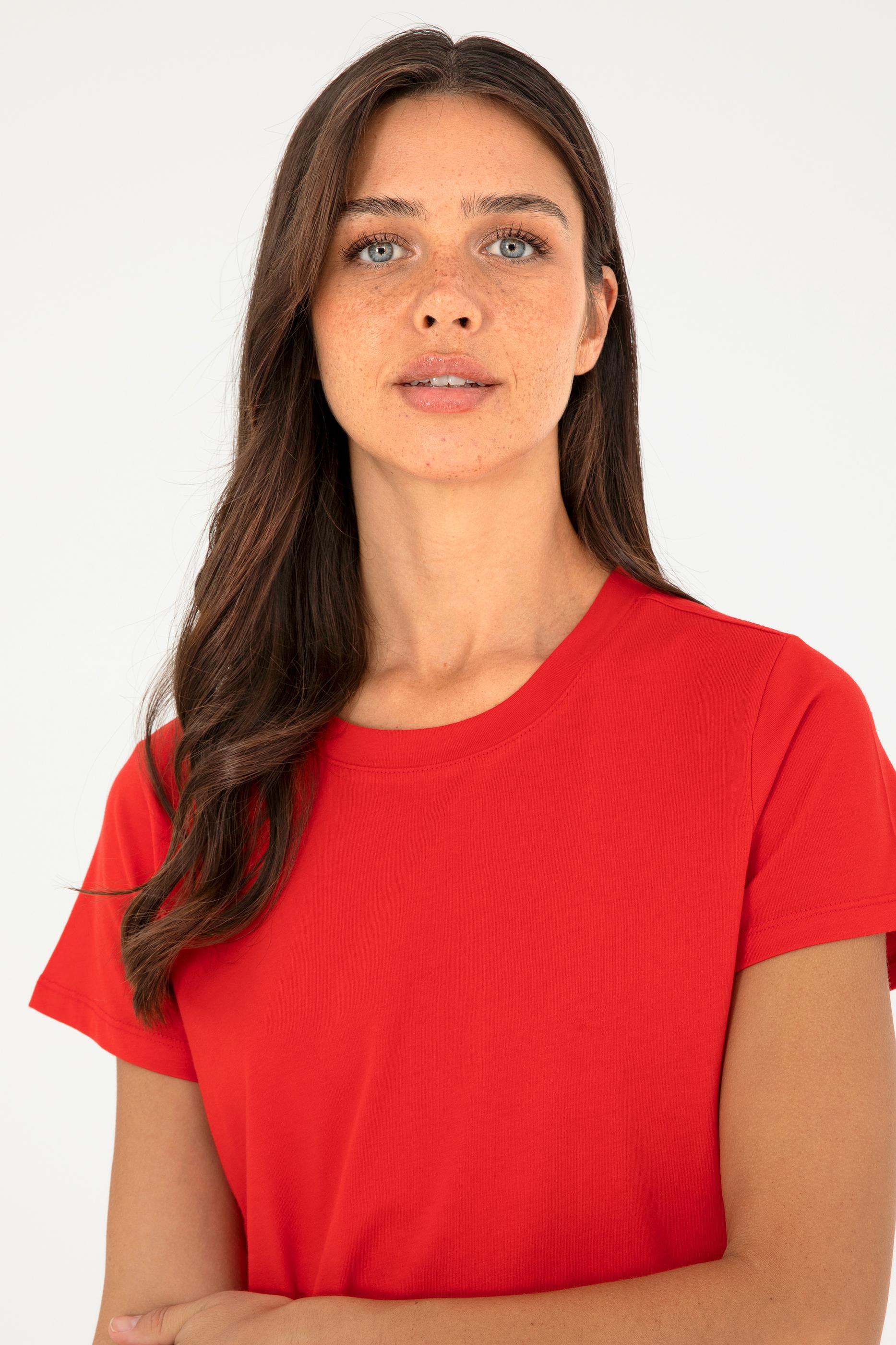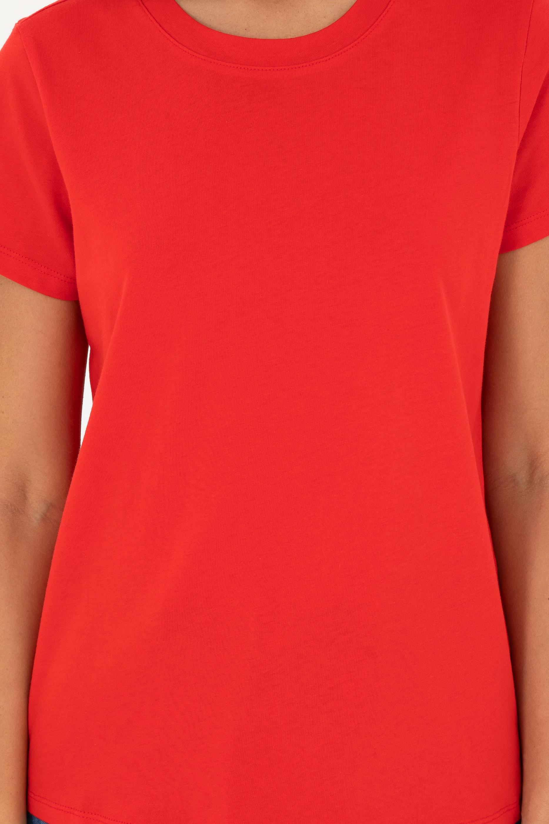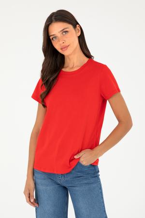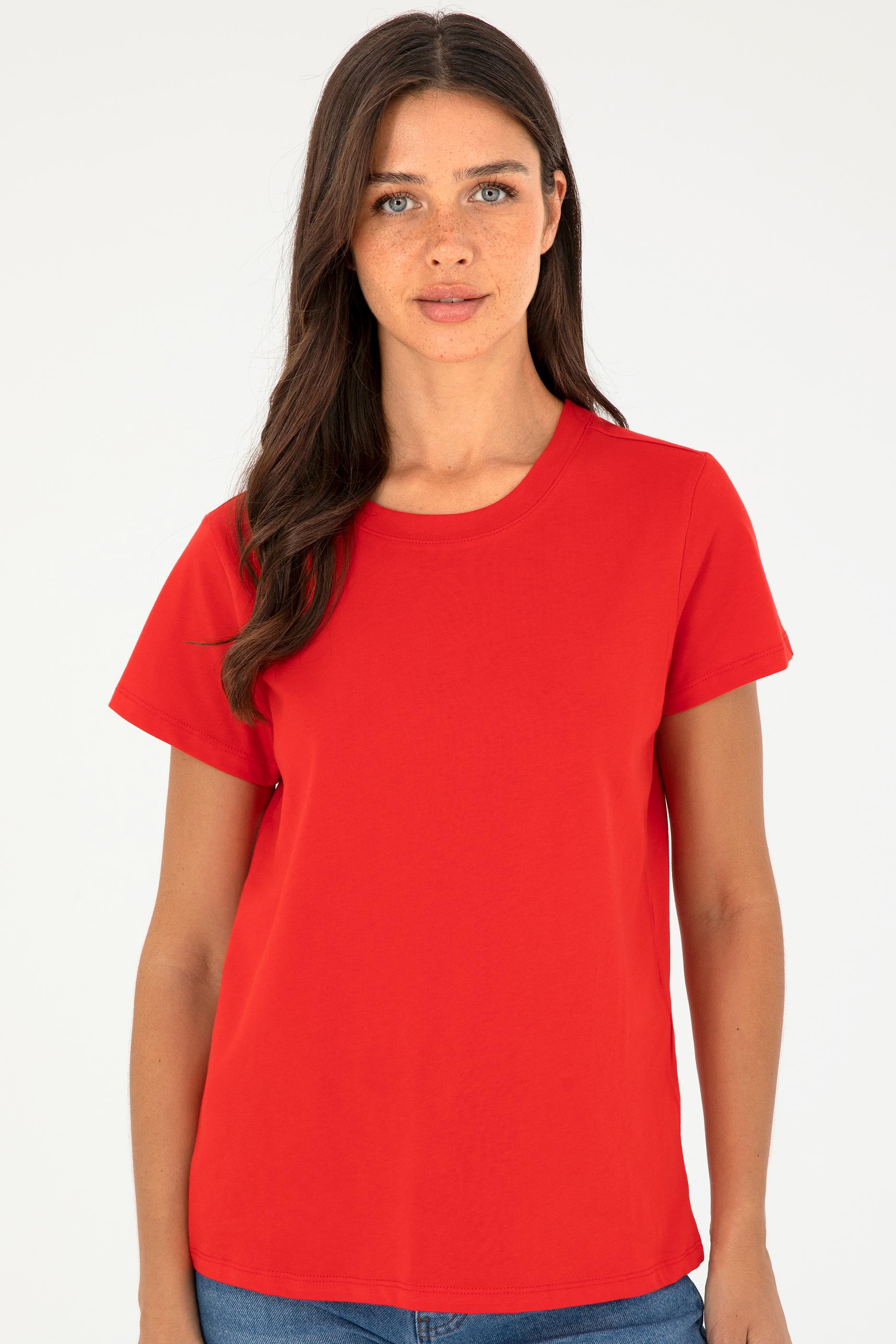 Kadın Kırmızı Bisiklet Yaka Basic Tişört