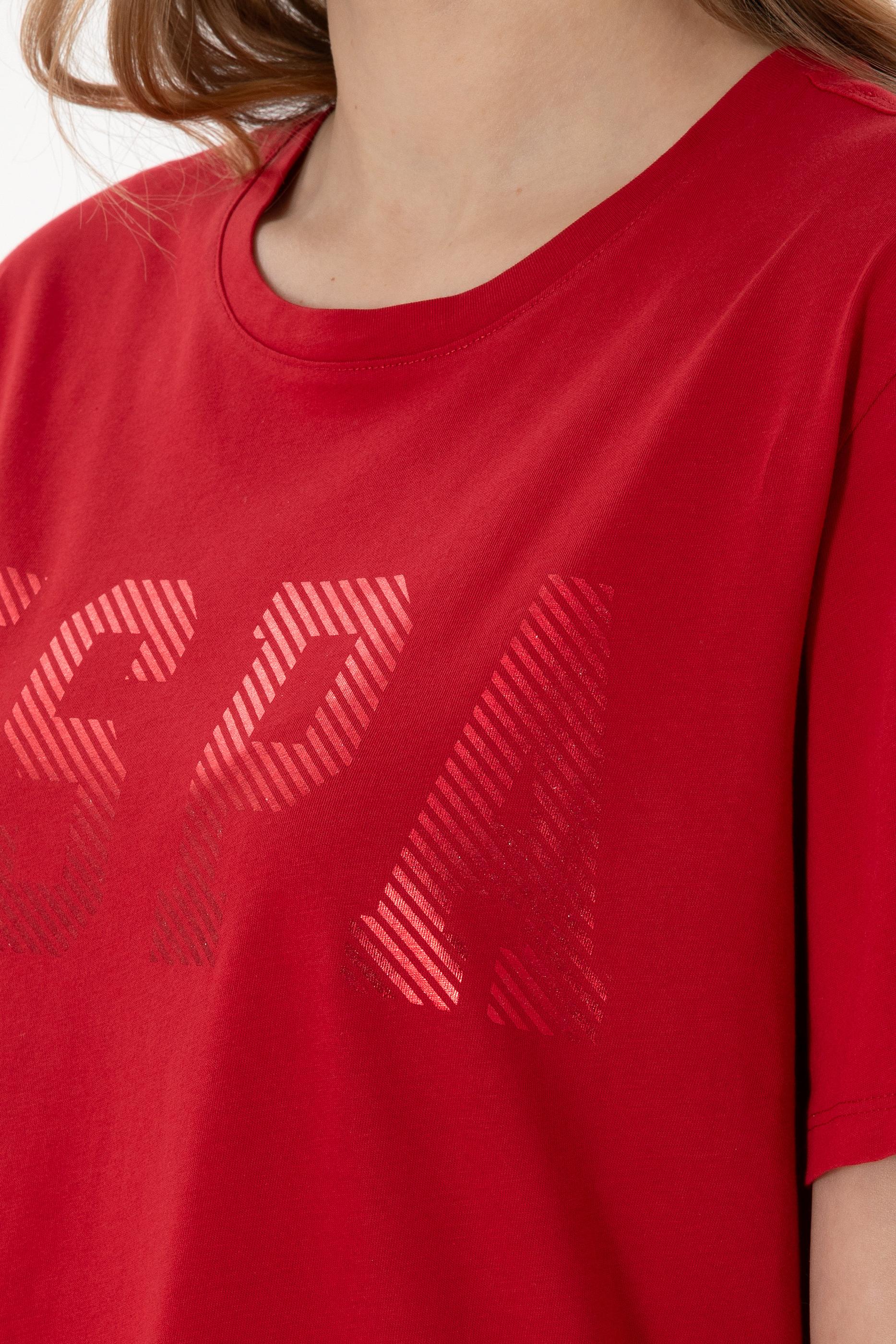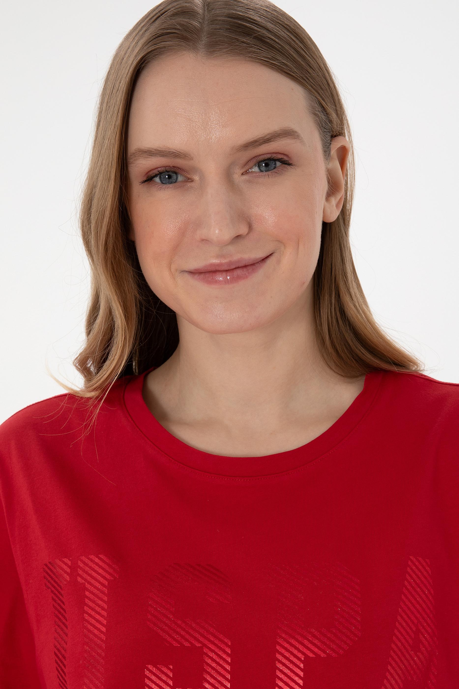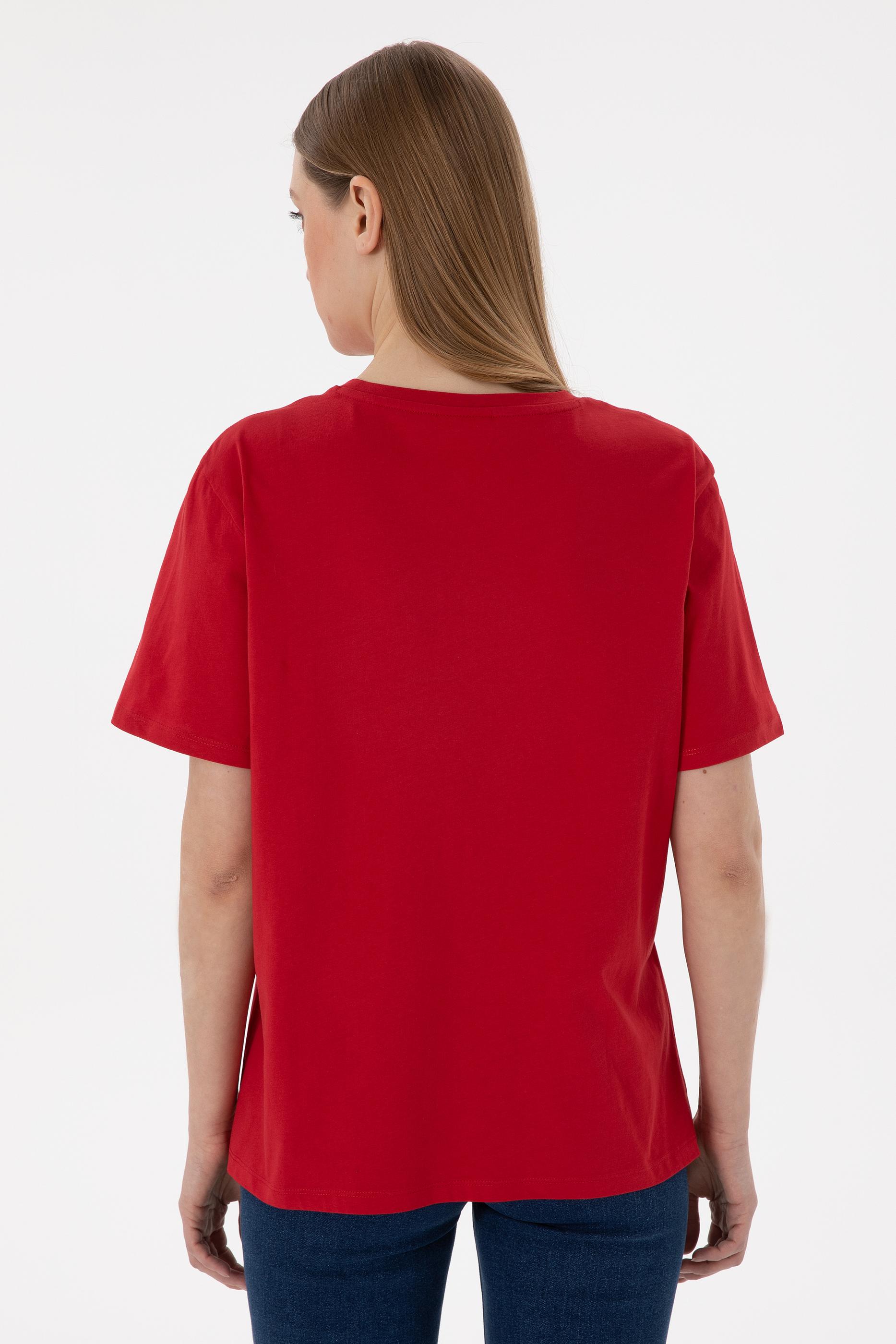 Kadın Kırmızı Bisiklet Yaka Basic Tişört