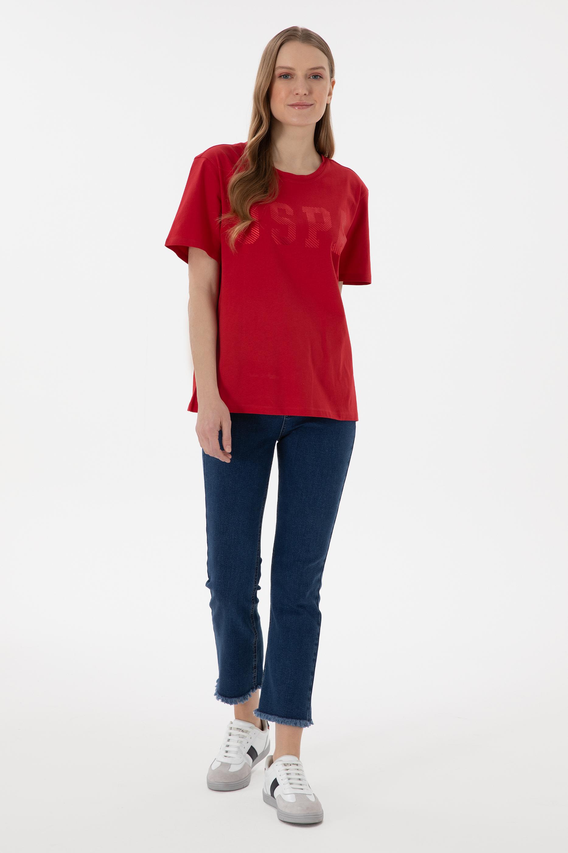 - Kadın Kırmızı Bisiklet Yaka Basic Tişört