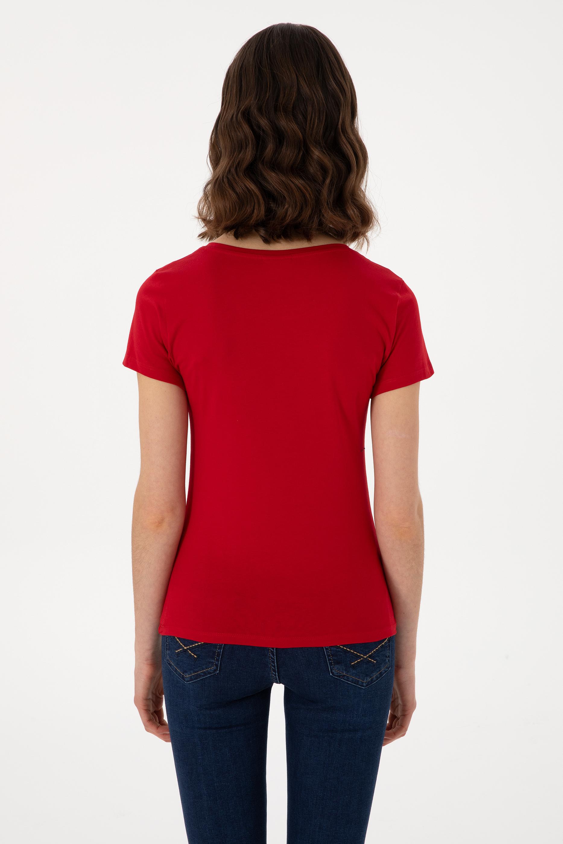 Kadın Kırmızı Bisiklet Yaka Tişört