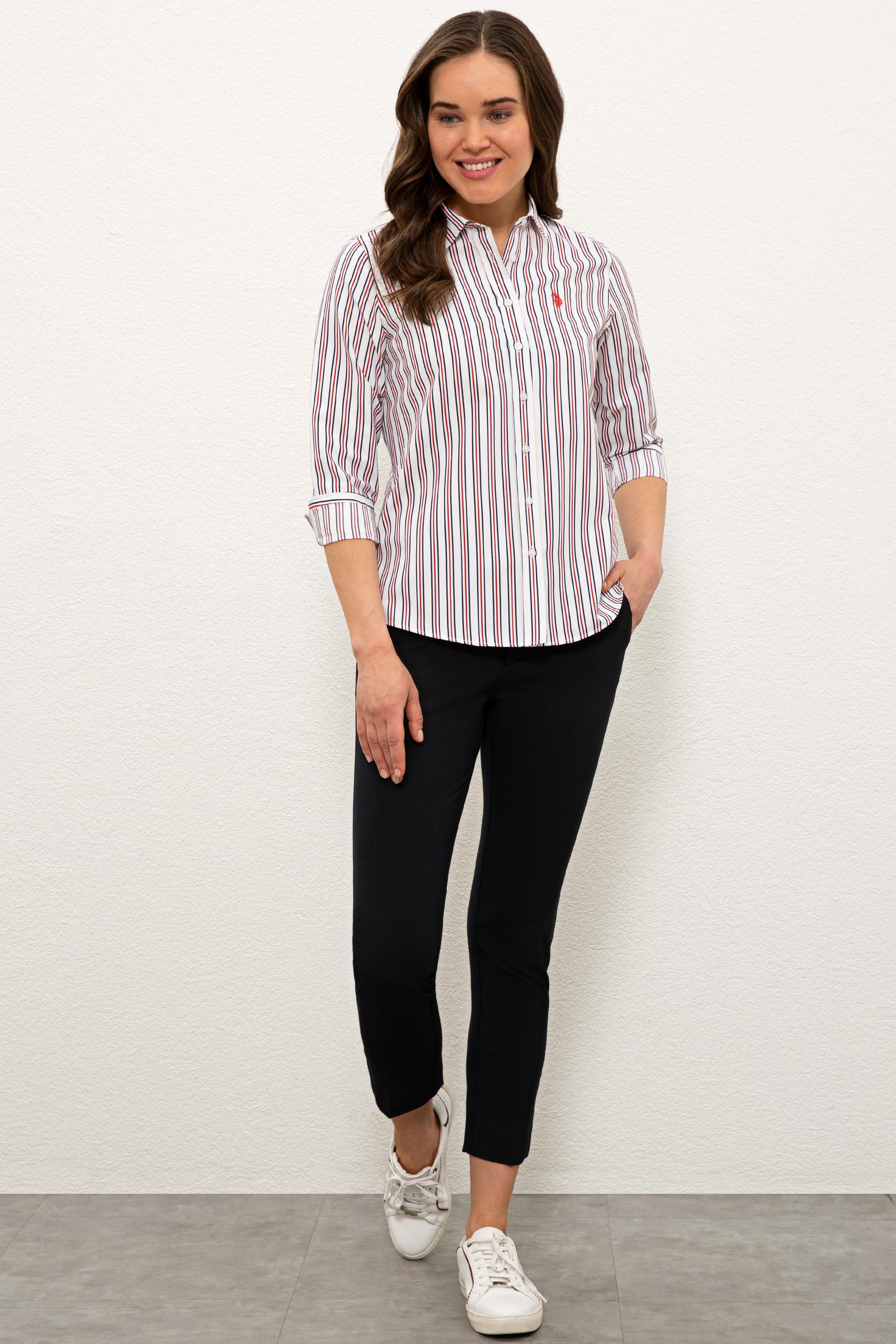 - Kadın Kırmızı Çizgili Gömlek Uzunkol