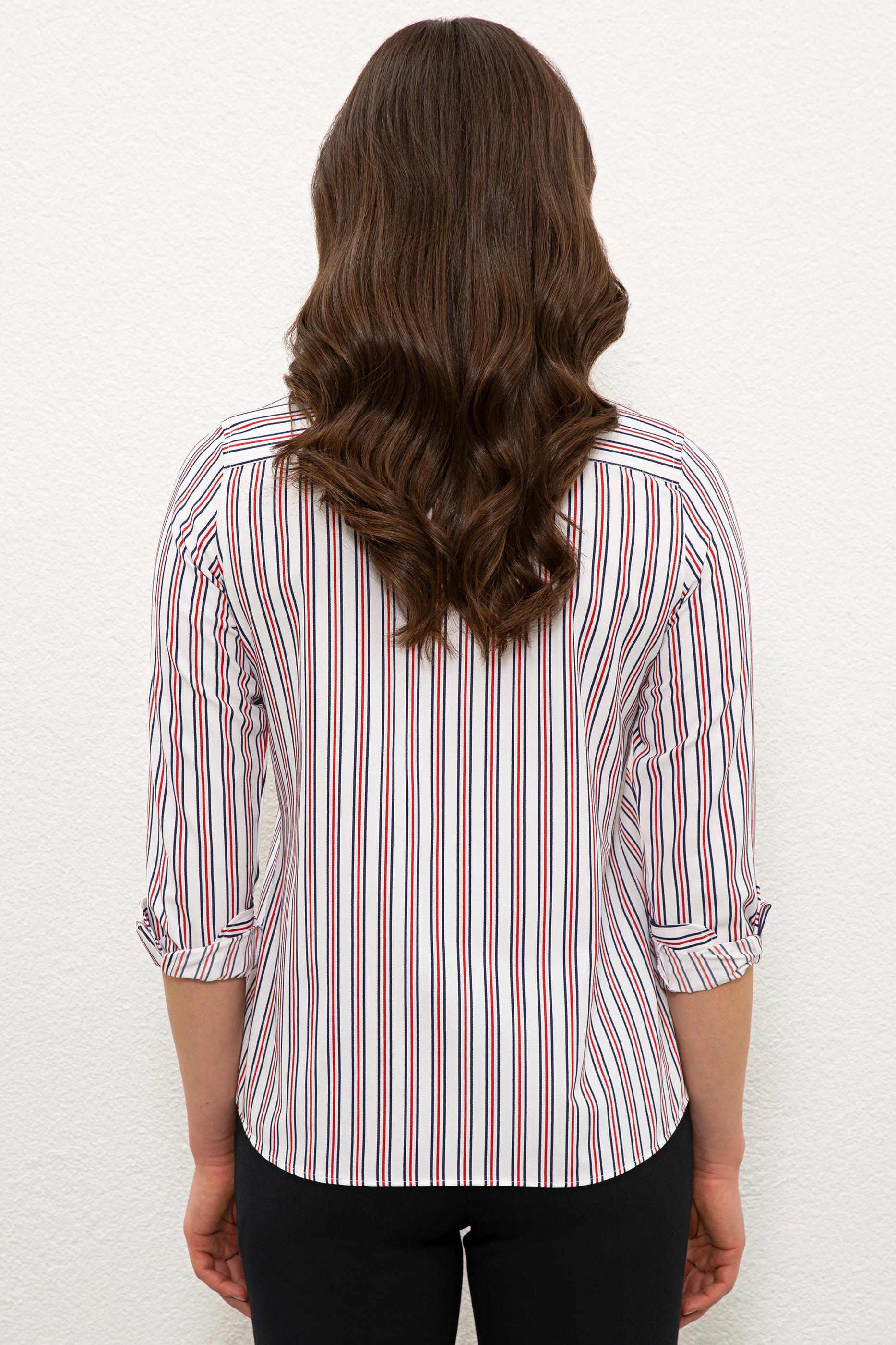 Kadın Kırmızı Çizgili Gömlek Uzunkol