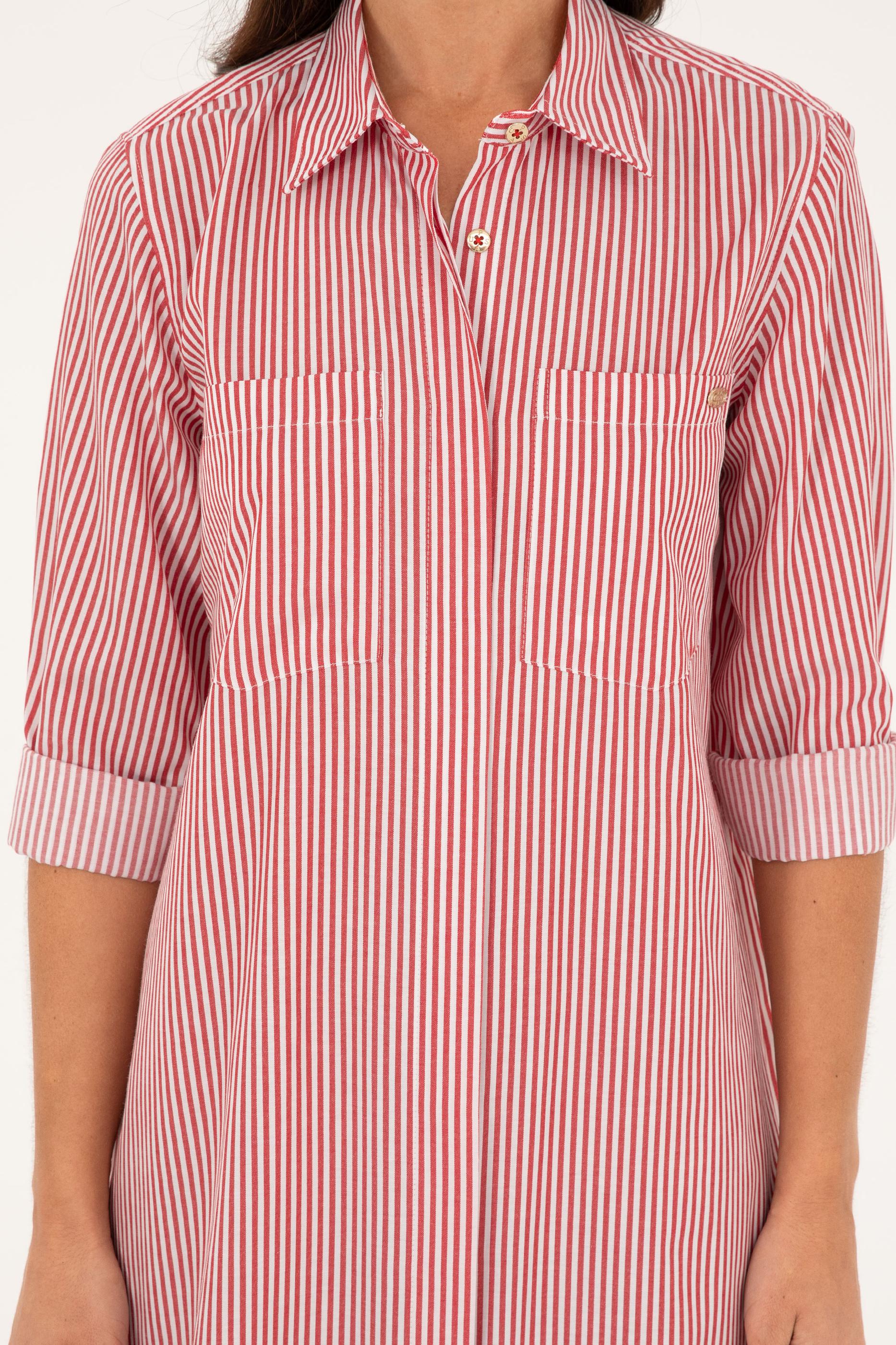 Yumuşak ve rahat bir dokuma elbise arıyorsanız kırmızı çizgili uzun kollu elbise tam da aradığınız parça olabilir. %50 pamuk ve %50 polyester karışımı ile üretilmiş olan elbise, nefes alabilirliği ve dayanıklılığıyla öne çıkar. Kırmızı çizgili deseni her ortamda dikkat çekmenizi sağlayacak zarif bir dokunuş sunar.