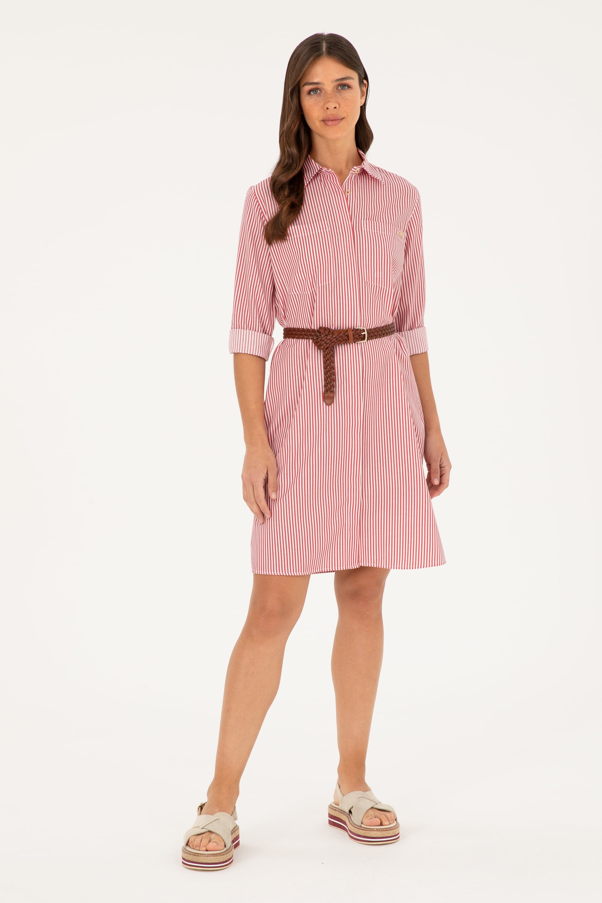 Kadın Kırmızı Çizgili Dokuma Elbise