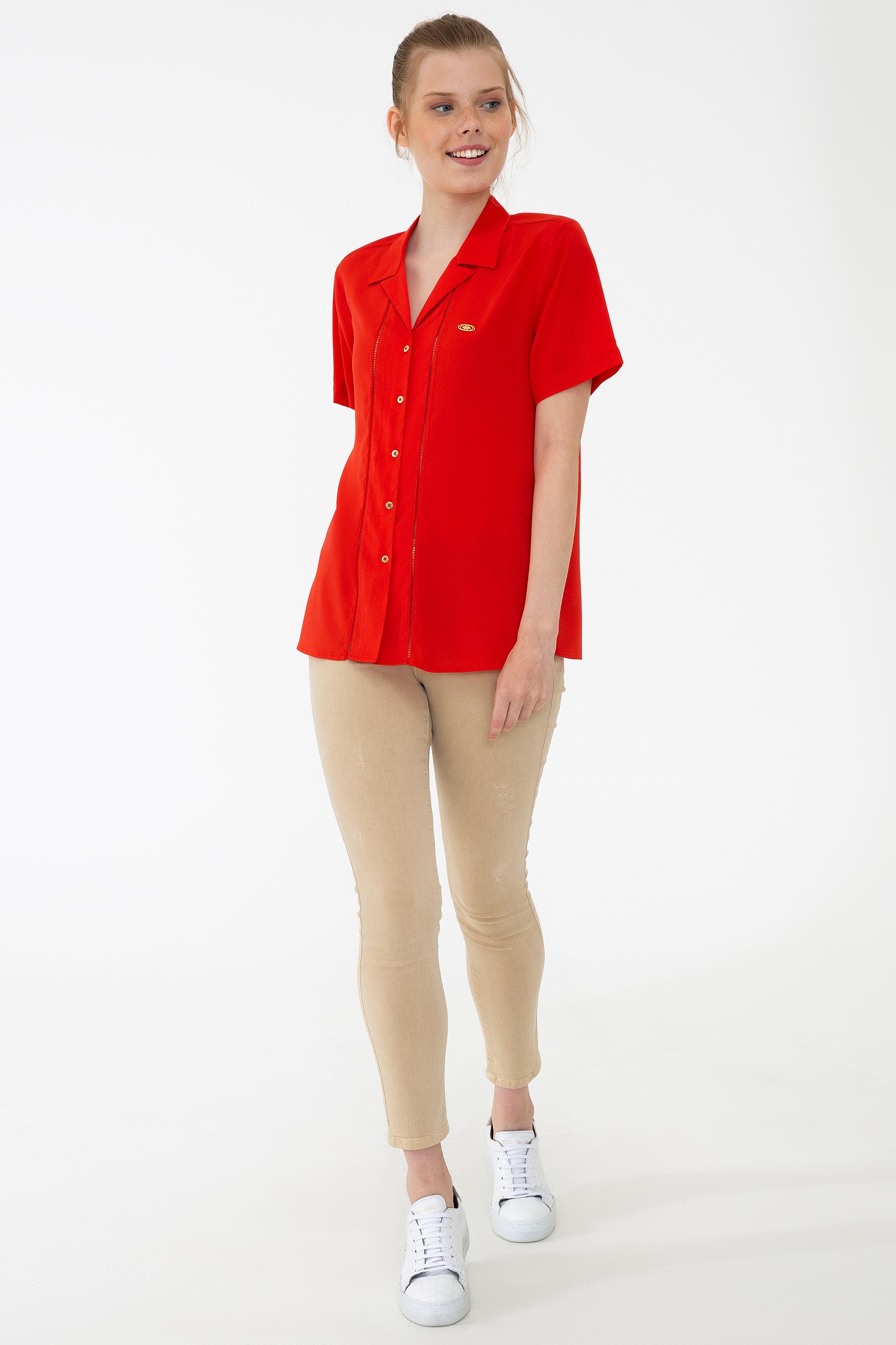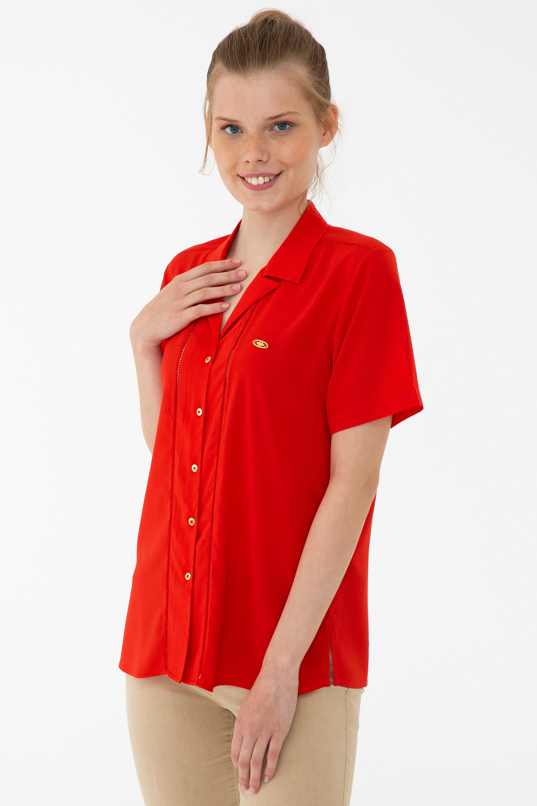 - Kadın Kırmızı Gömlek Kısakol