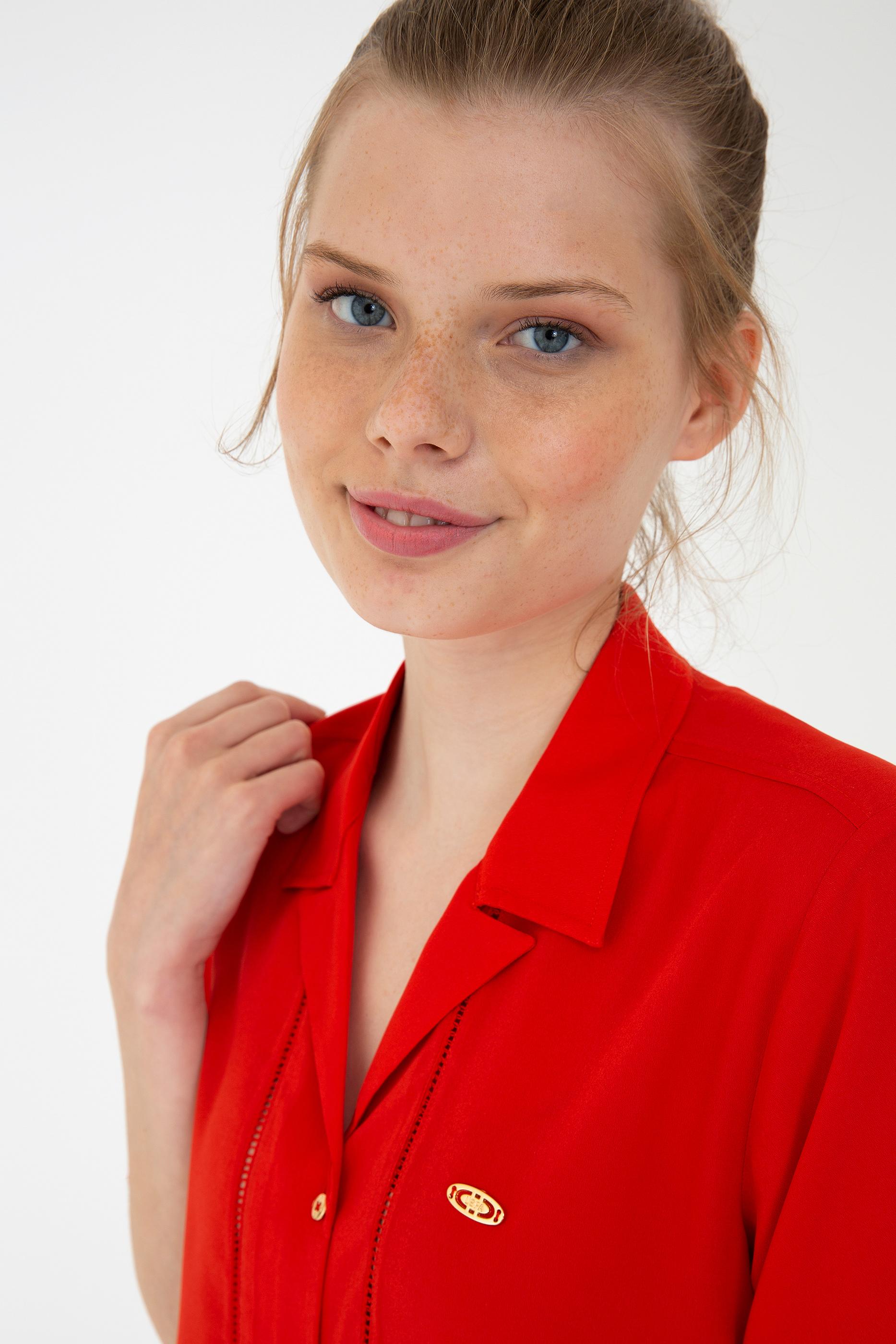 Kadın Kırmızı Gömlek Kısakol