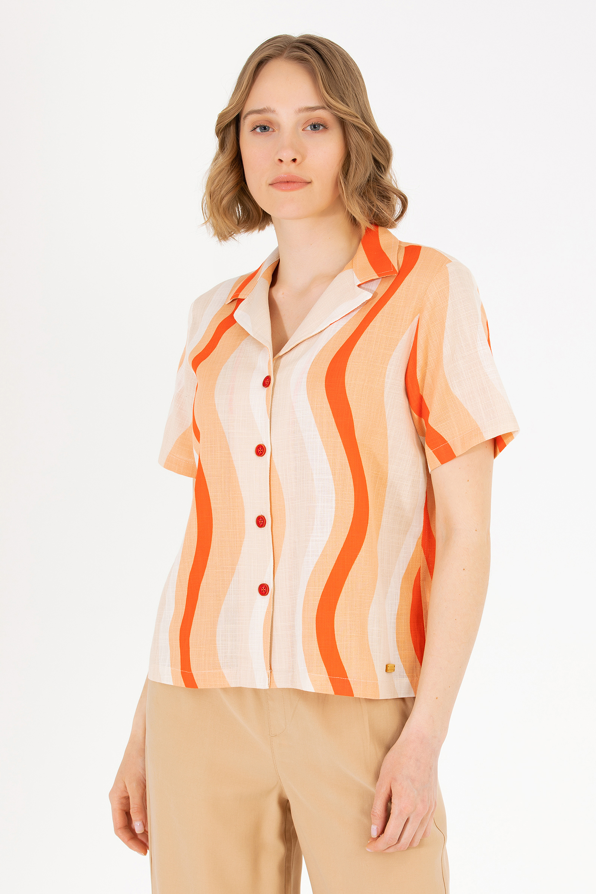 - Kadın Kırmızı Kısa Kollu Gömlek
