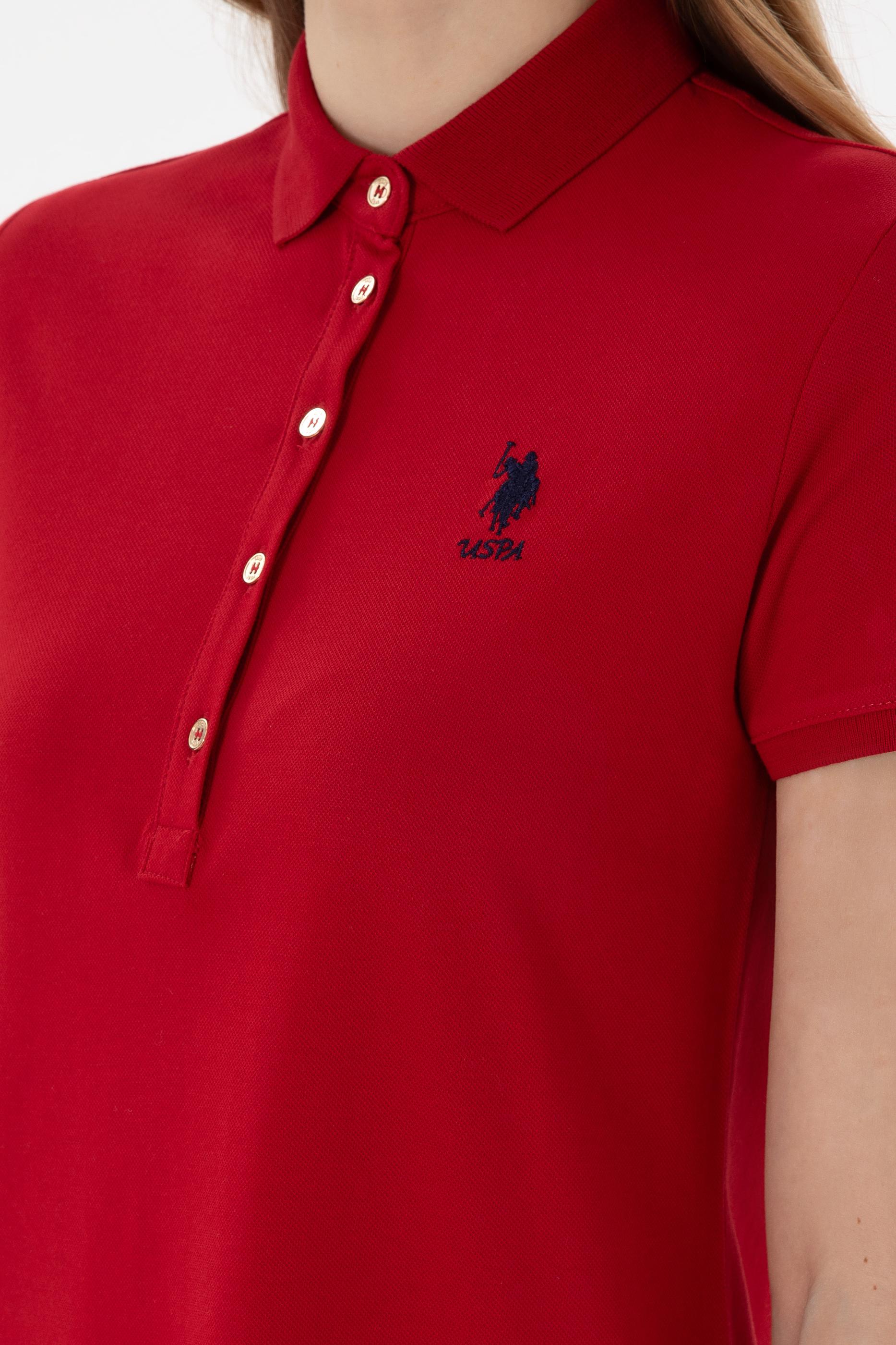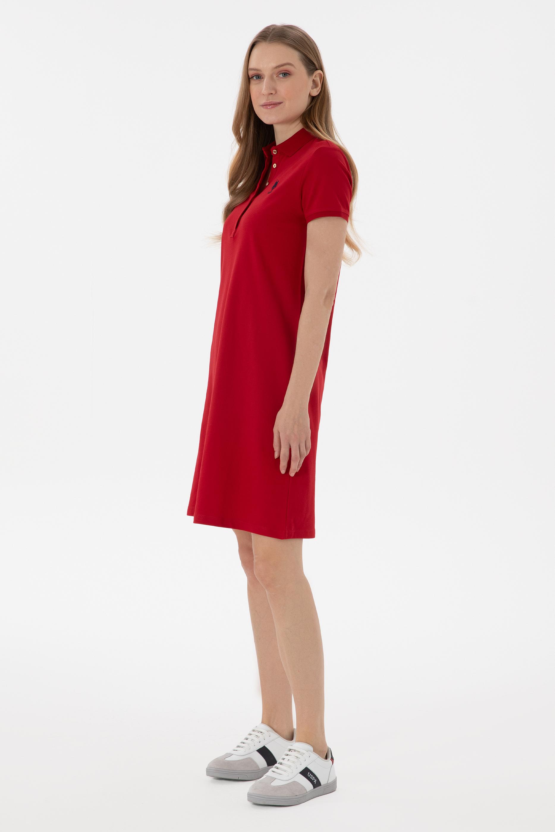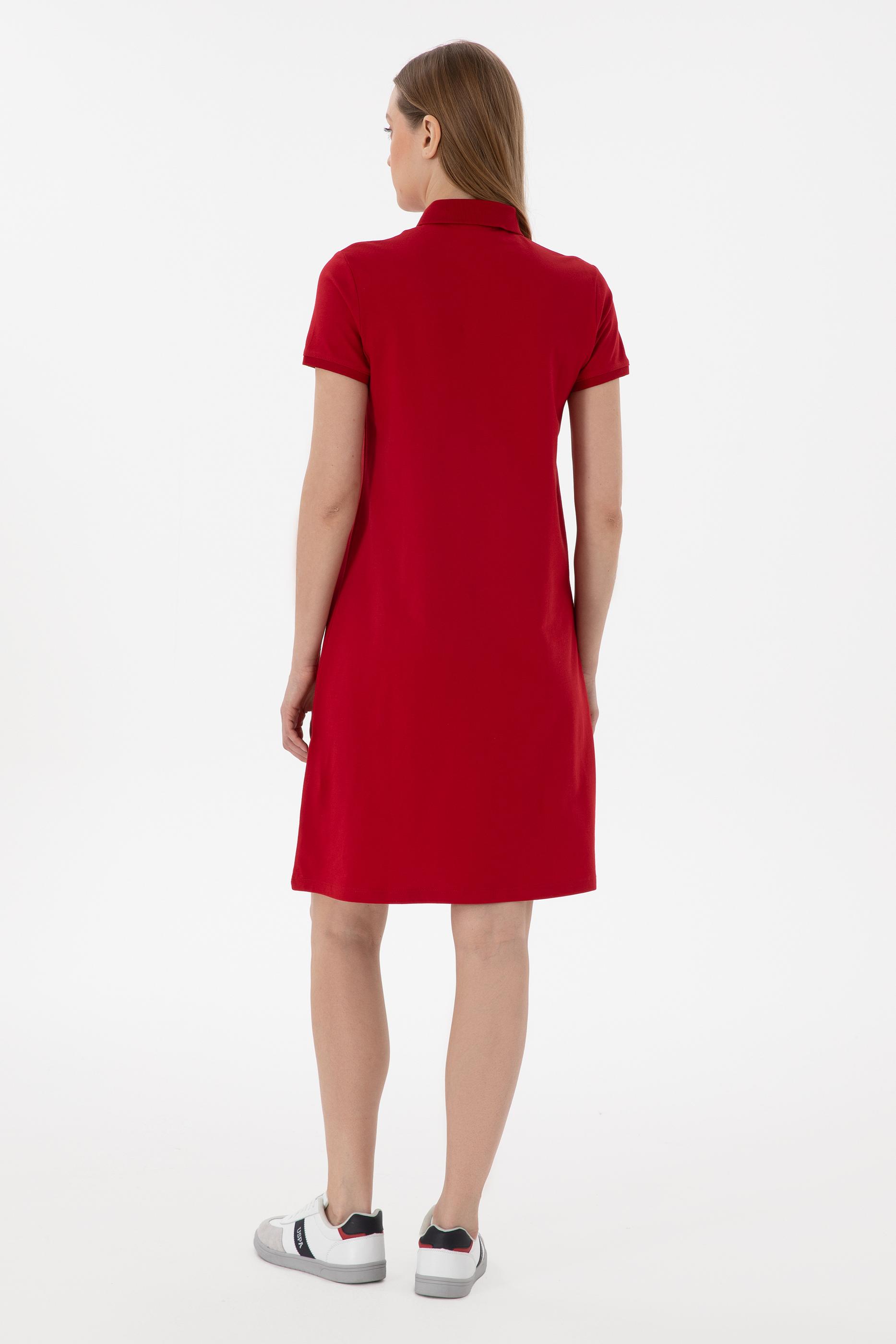 Kadın Kırmızı Polo Yaka Mini Boy Örme Elbise