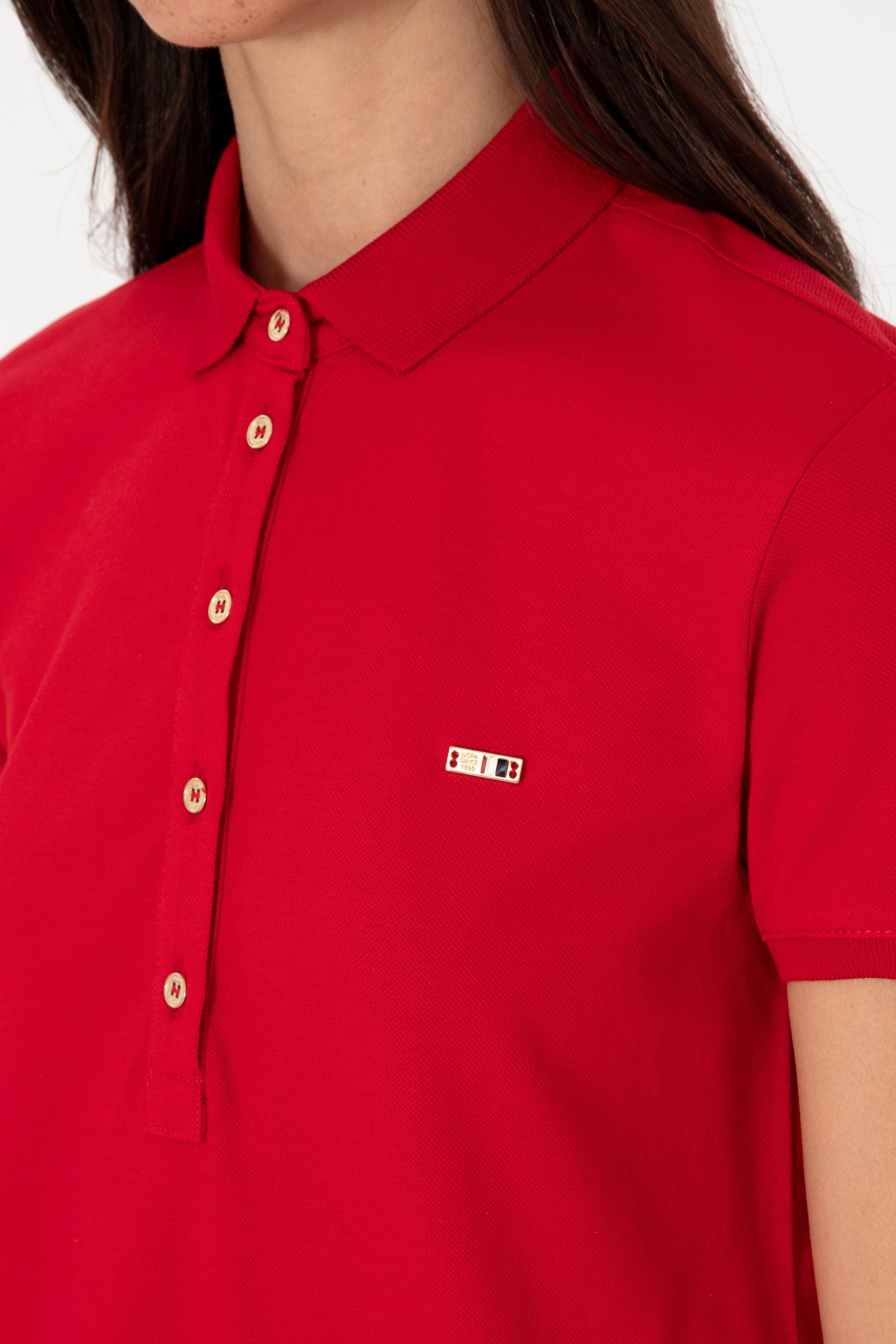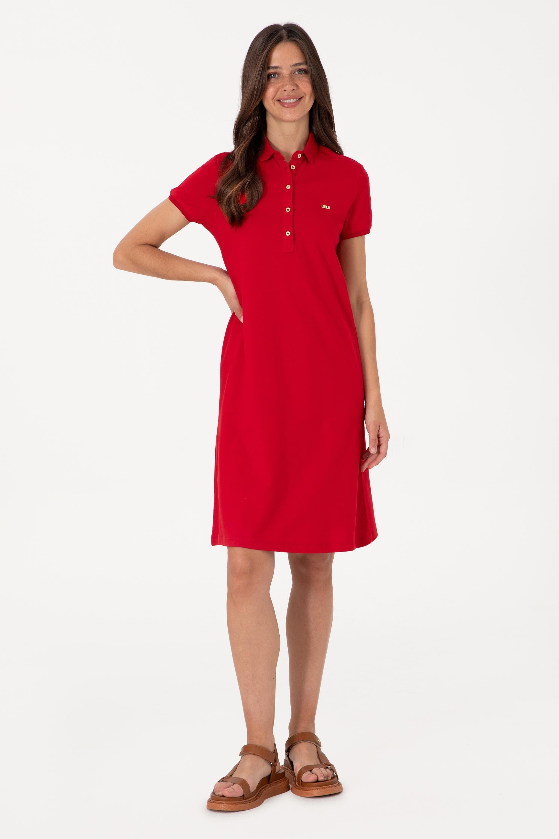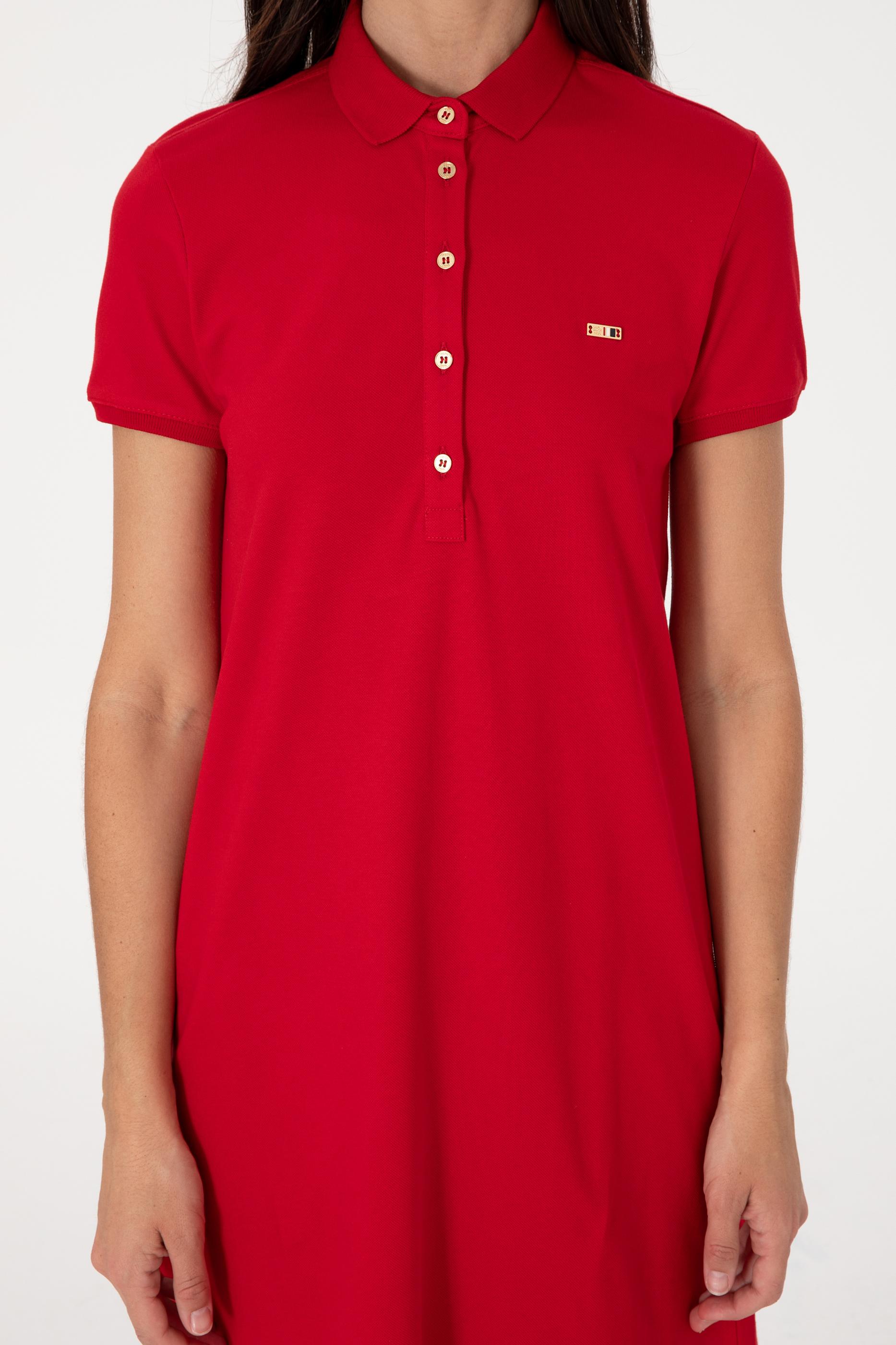 Kadın Kırmızı Polo Yaka Mini Boy Örme Elbise - 50305853009