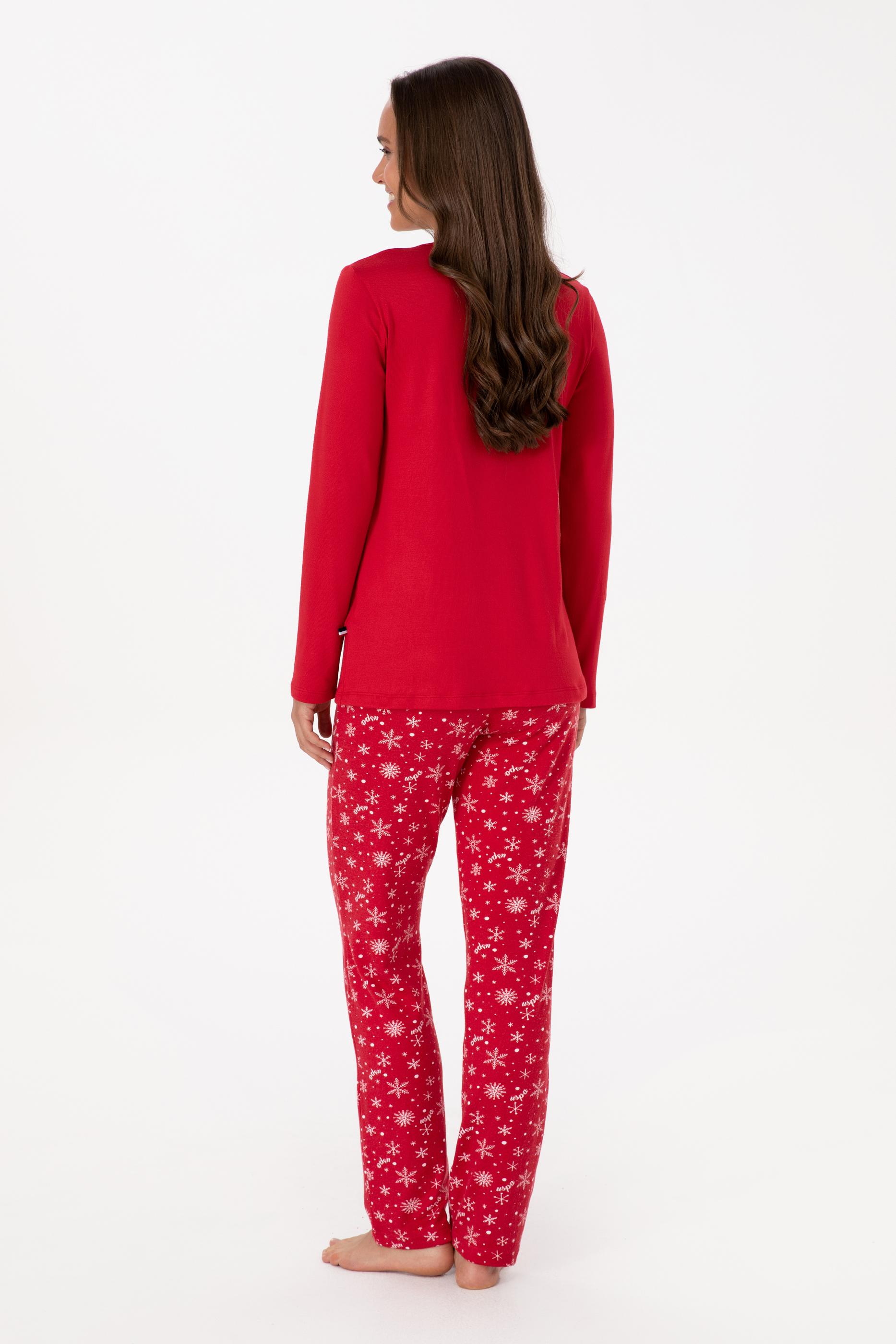 Kadın Kırmızı Yılbaşı Temalı Pijama Takımı