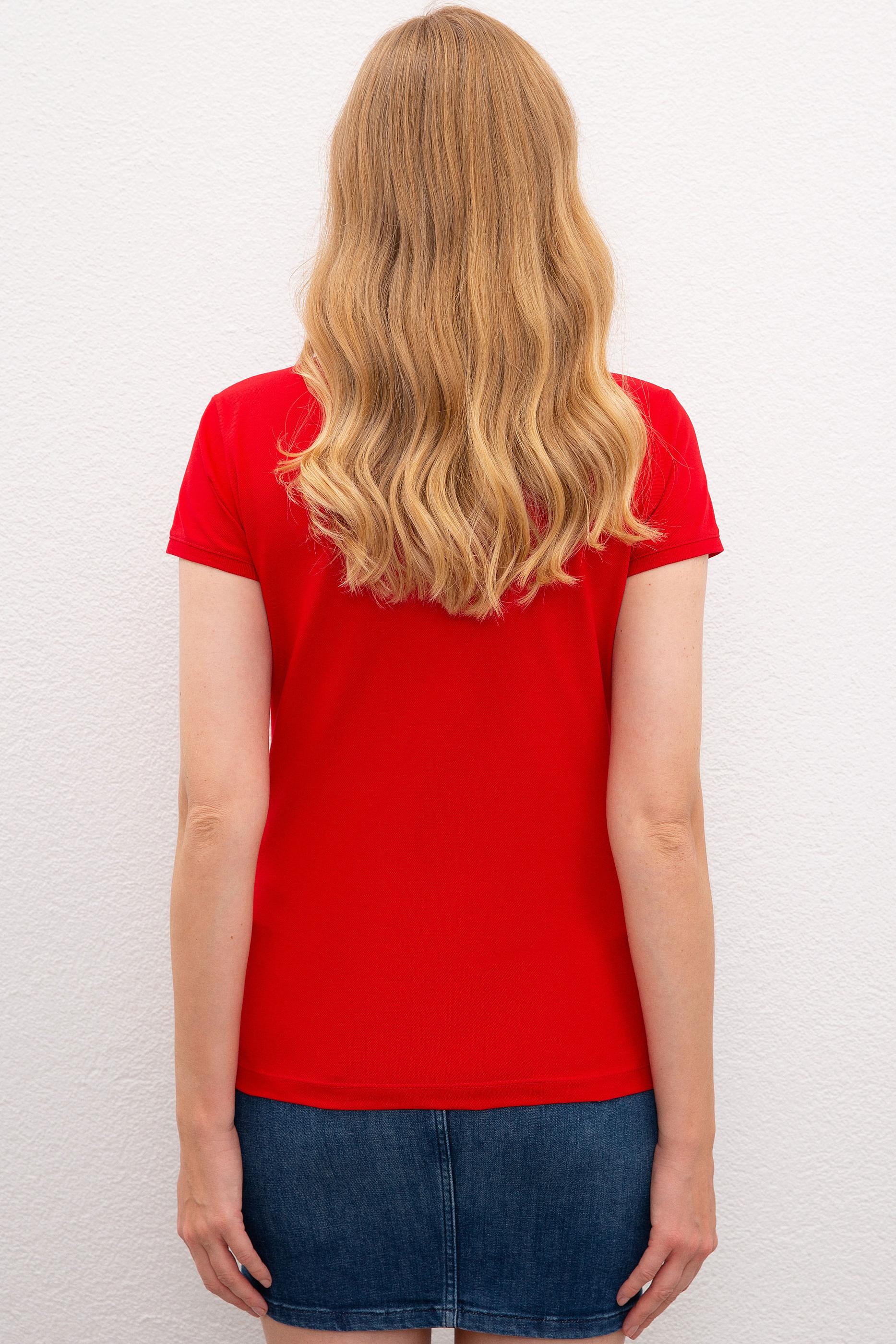 Kadın Kırmızı Polo Yaka Basic Tişört