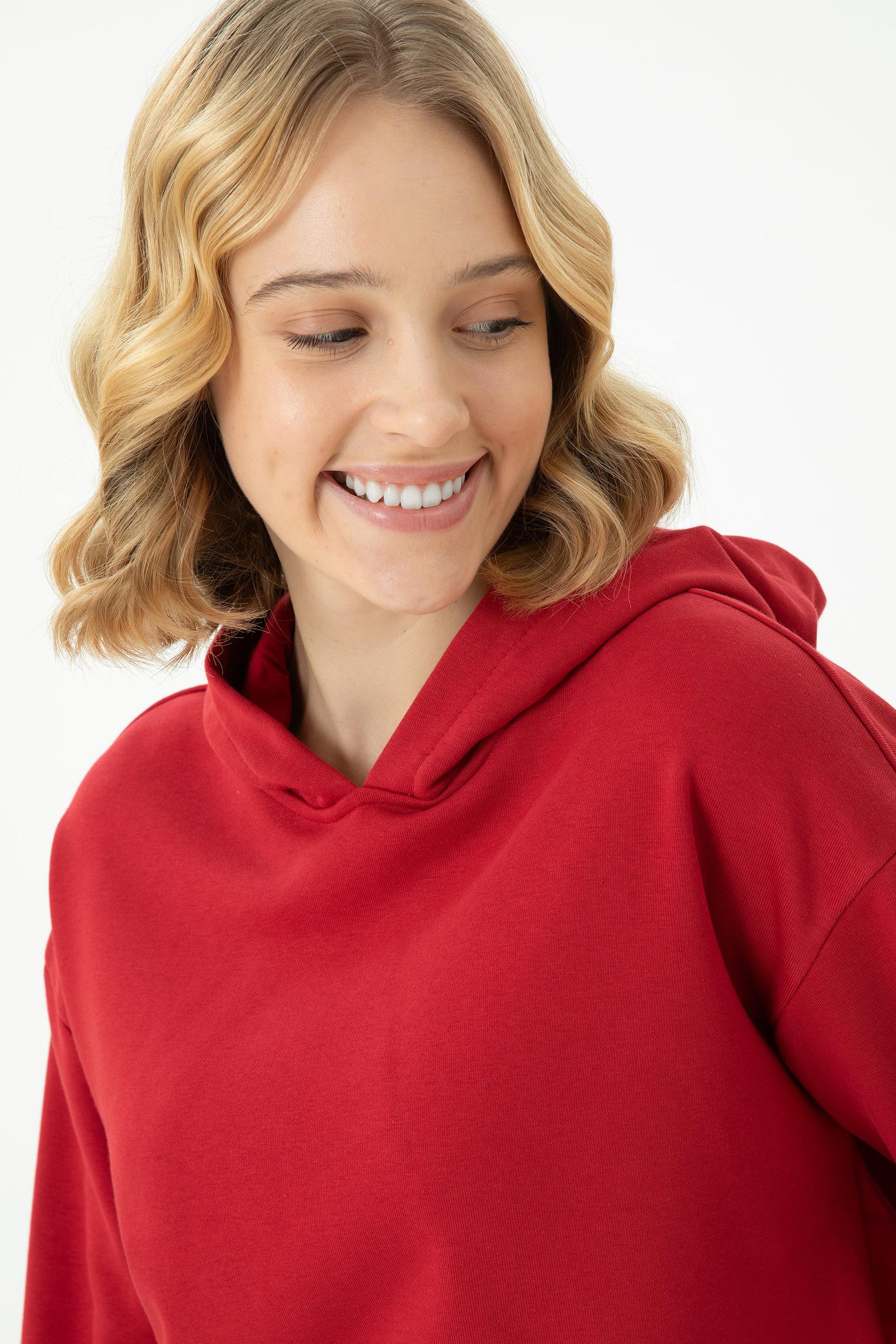 Kadın Kırmızı Kapüşonlu Sweatshirt