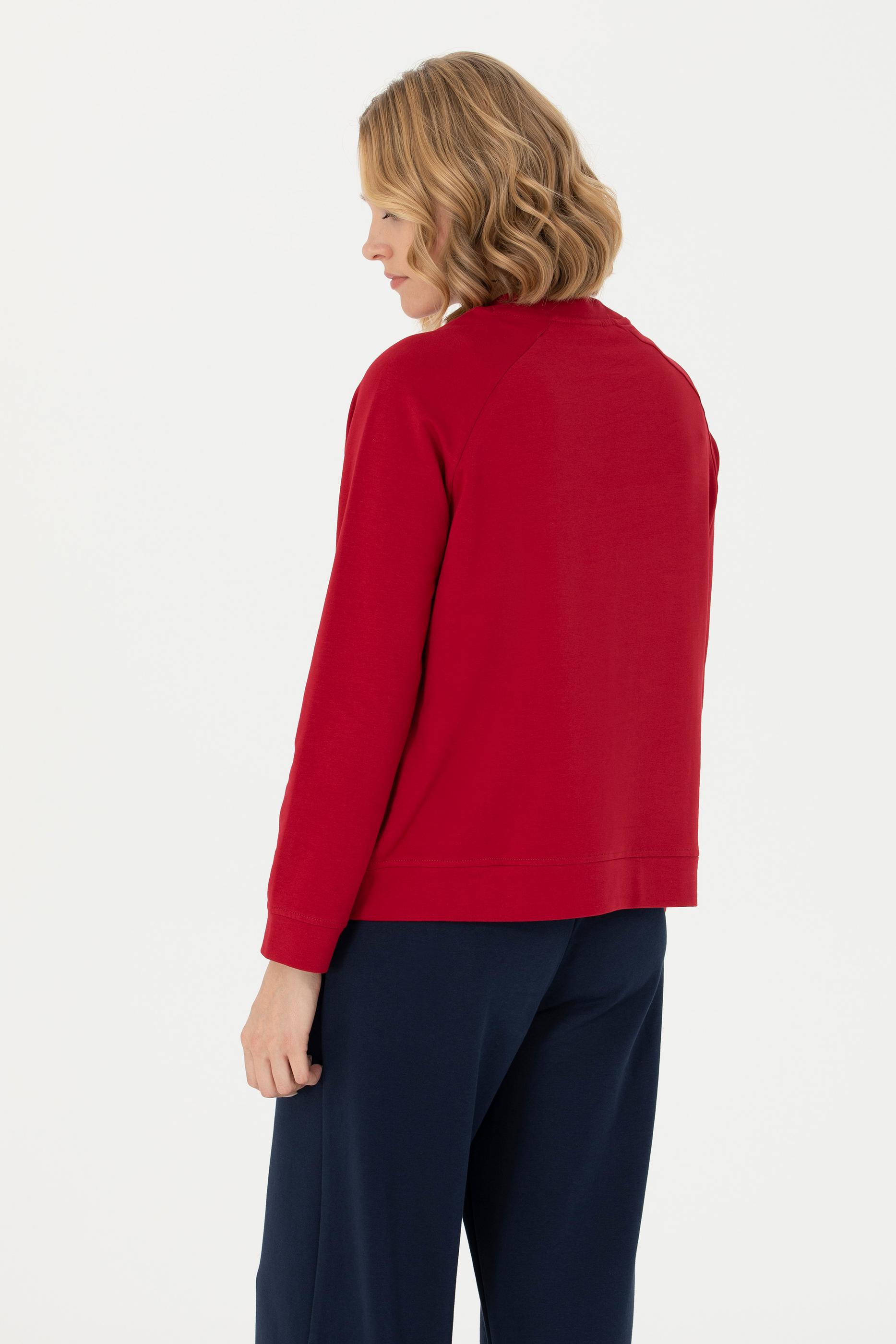Kadın Kırmızı Bisiklet Yaka Sweatshirt