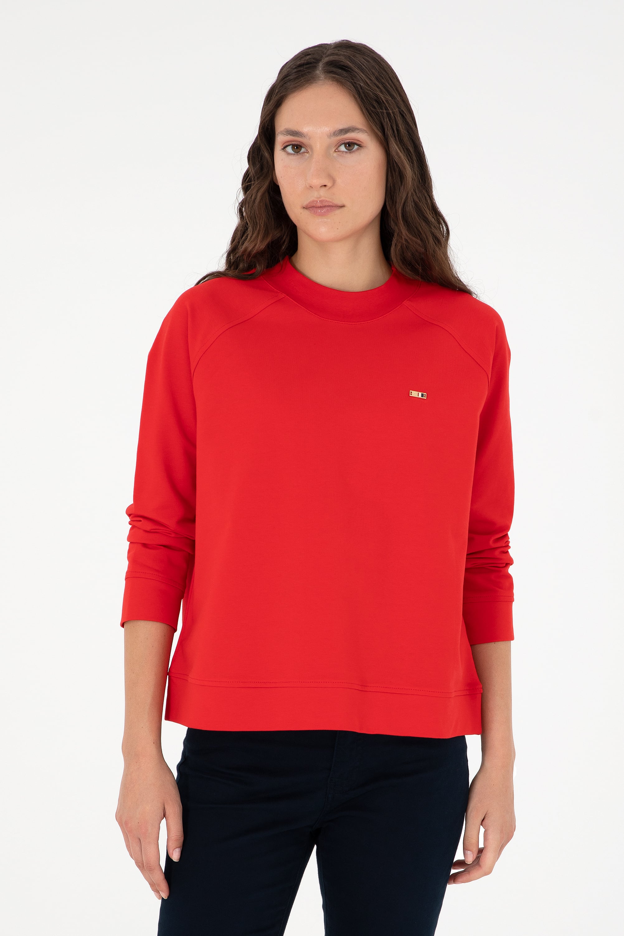 - Kadın Kırmızı Bisiklet Yaka Sweatshirt