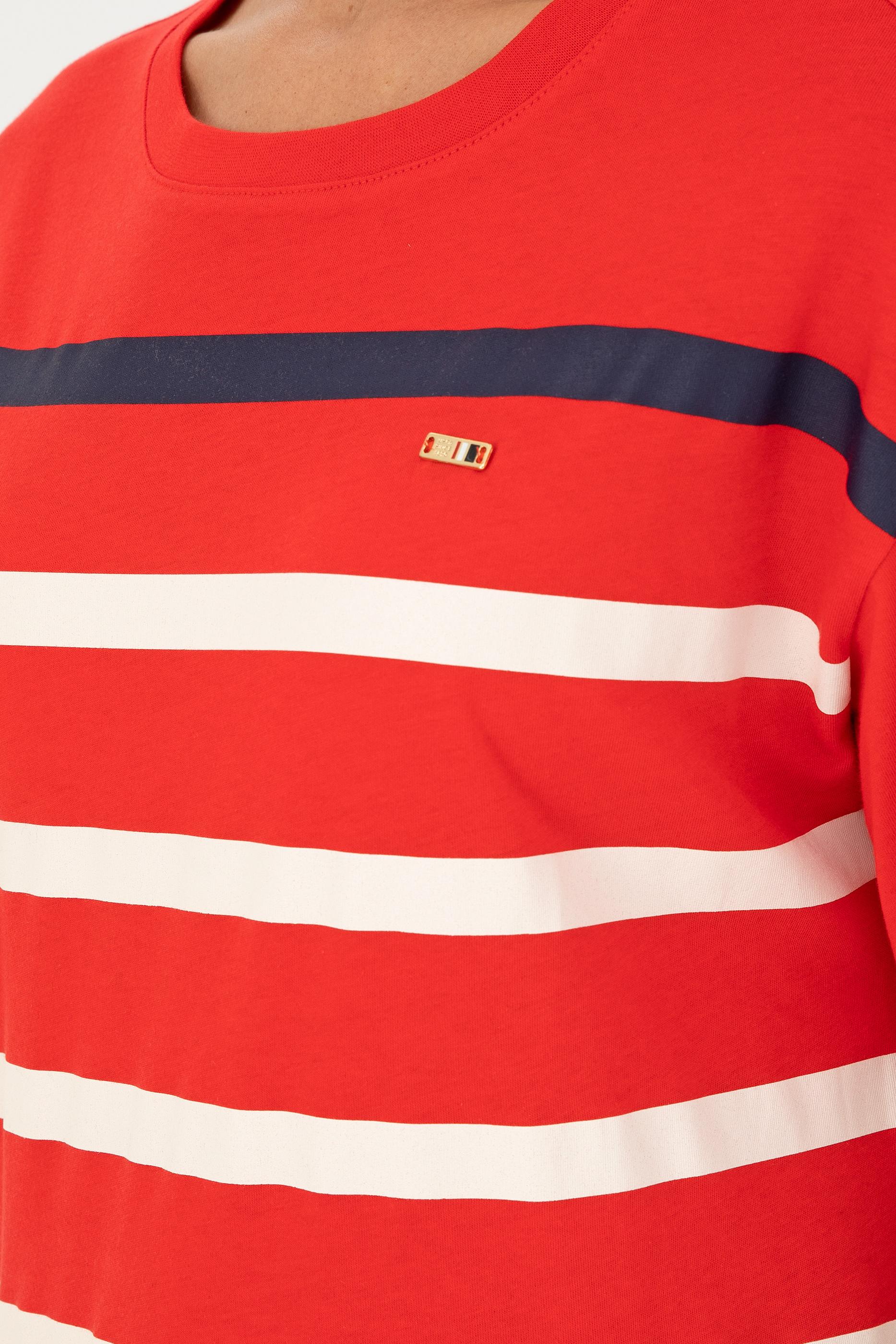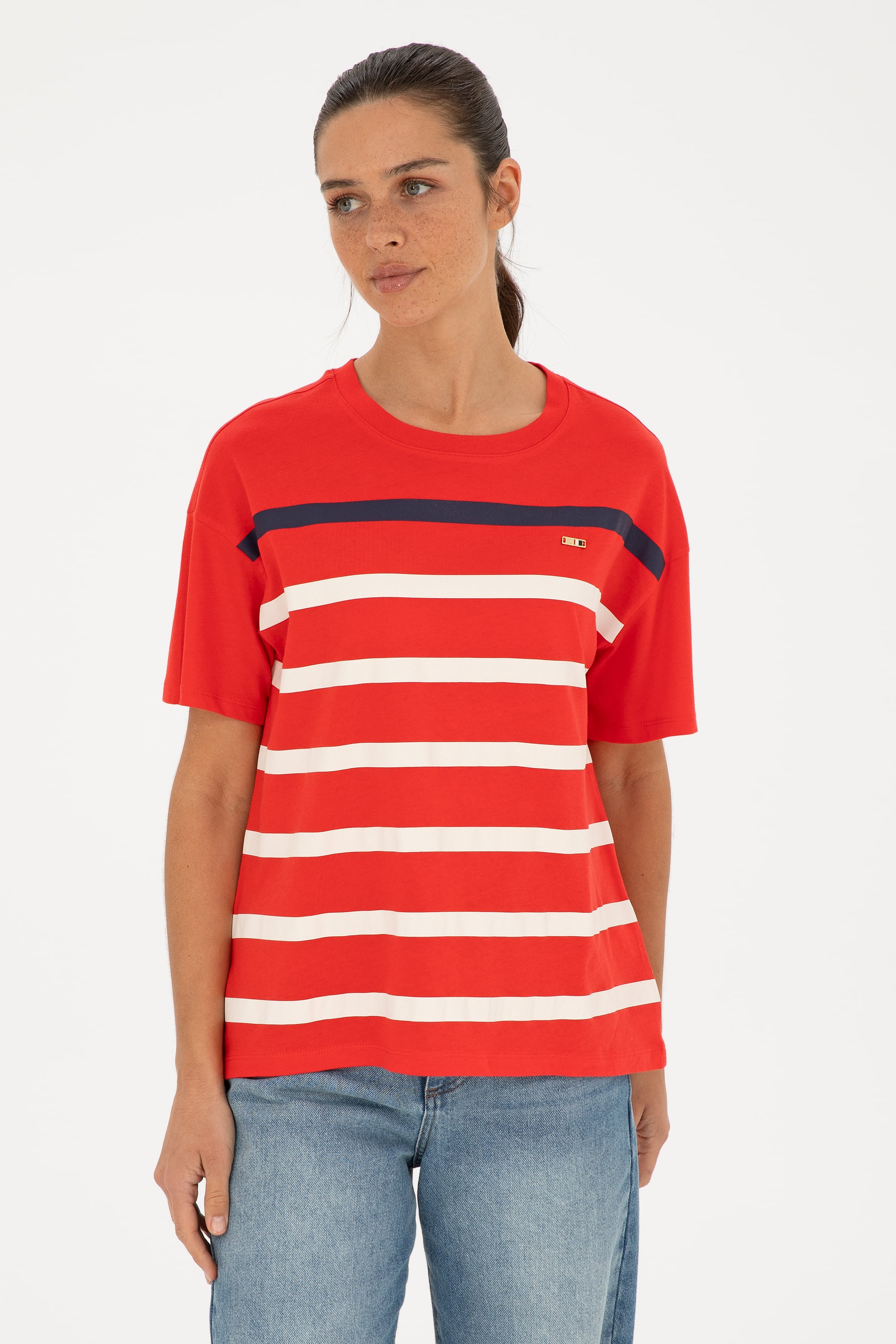 Gardırobunuzdaki diğer parçalarla rahatlıkla kombinleyebileceğiniz beyaz ve lacivert çizgileriyle klasik ve modern modanın harmanlanmış halini yansıtıyor. Gündelik yaşamınızda veya açık hava etkinliklerinde rahatlıkla tercih edebileceğiniz parça, enerjinizi yansıtmak ve stilinize hareket katmak için mükemmel bir seçenek sunuyor. Rahat kesimi sayesinde serbest hareket imkanı sunarak gün boyu keyifle kullanmanızı sağlar. Kırmızı rengin coşkusunu üzerinizde taşıyarak enerjinizi ve canlılığınızı dışa vuracaksınız.