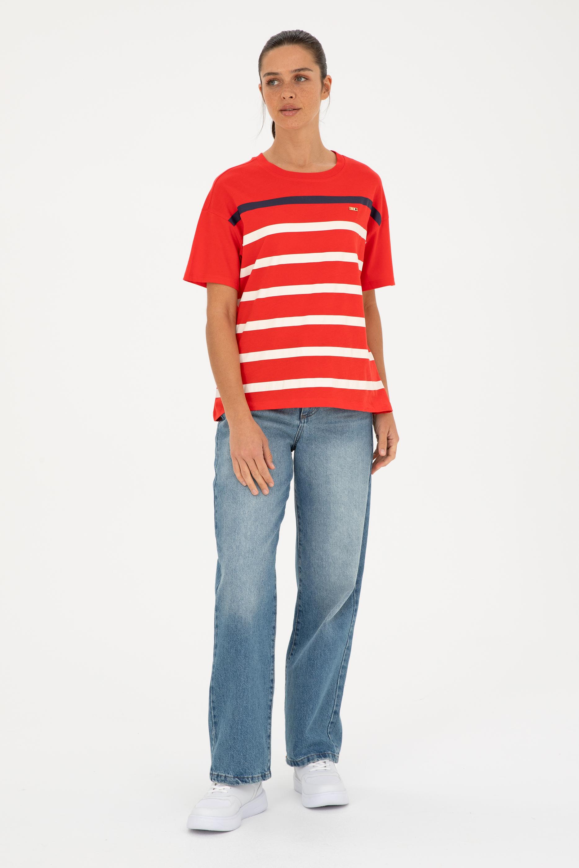 Enerjik kırmızı tonuyla dikkat çeken bisiklet yaka tişört, çizgili deseniyle göz alıcı bir dinamizm sunuyor. %100 pamuk kumaştan üretilmiş olması sayesinde yumuşak ve hafif bir dokunuş sağlayarak yaz günlerinin sıklıkla kullanılan parçası olmaya aday. Bisiklet yaka ve kısa kol tasarımı, ferah ve kullanışlı bir stil sunarken, çizgili desen detayları sportif bir hava katıyor.