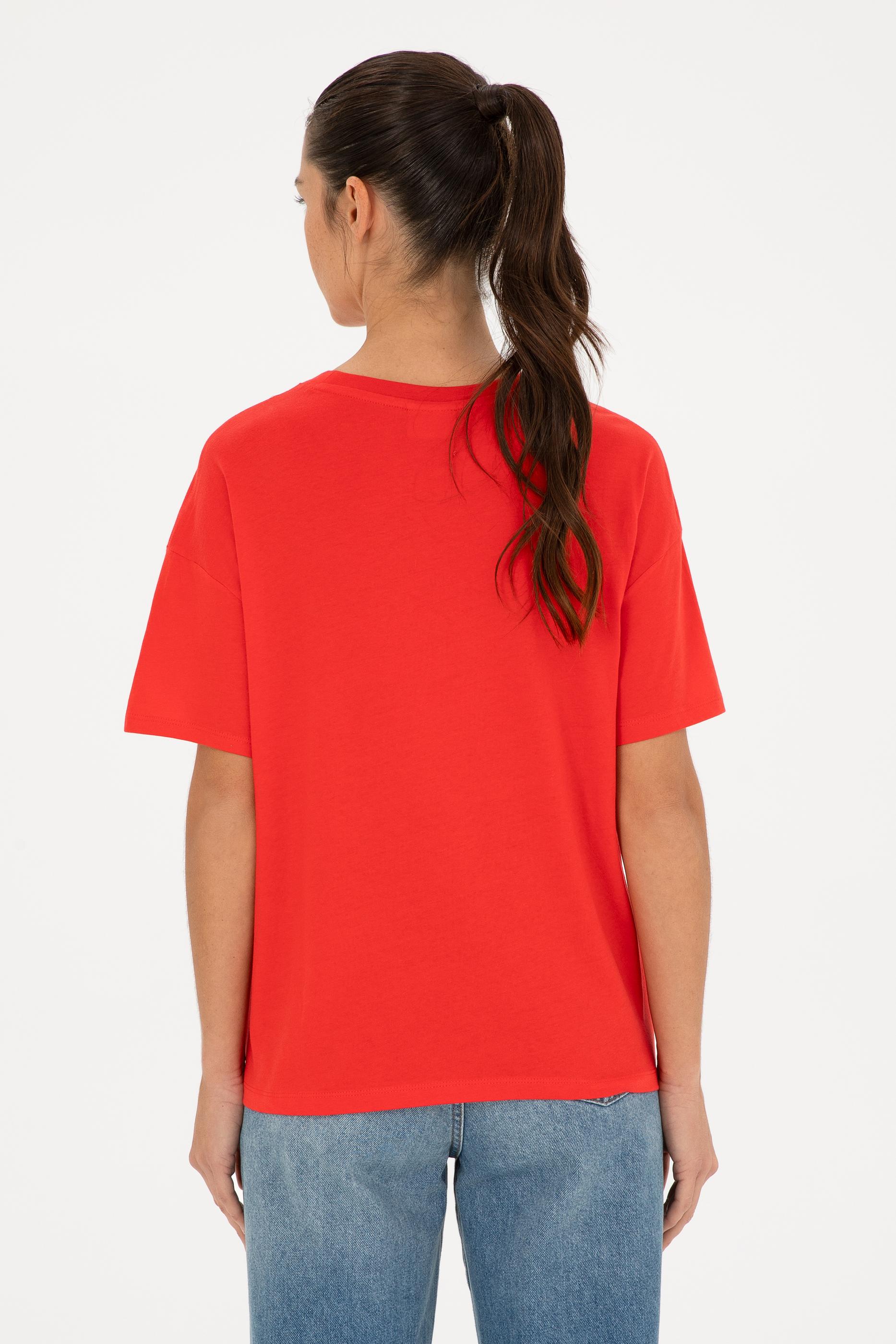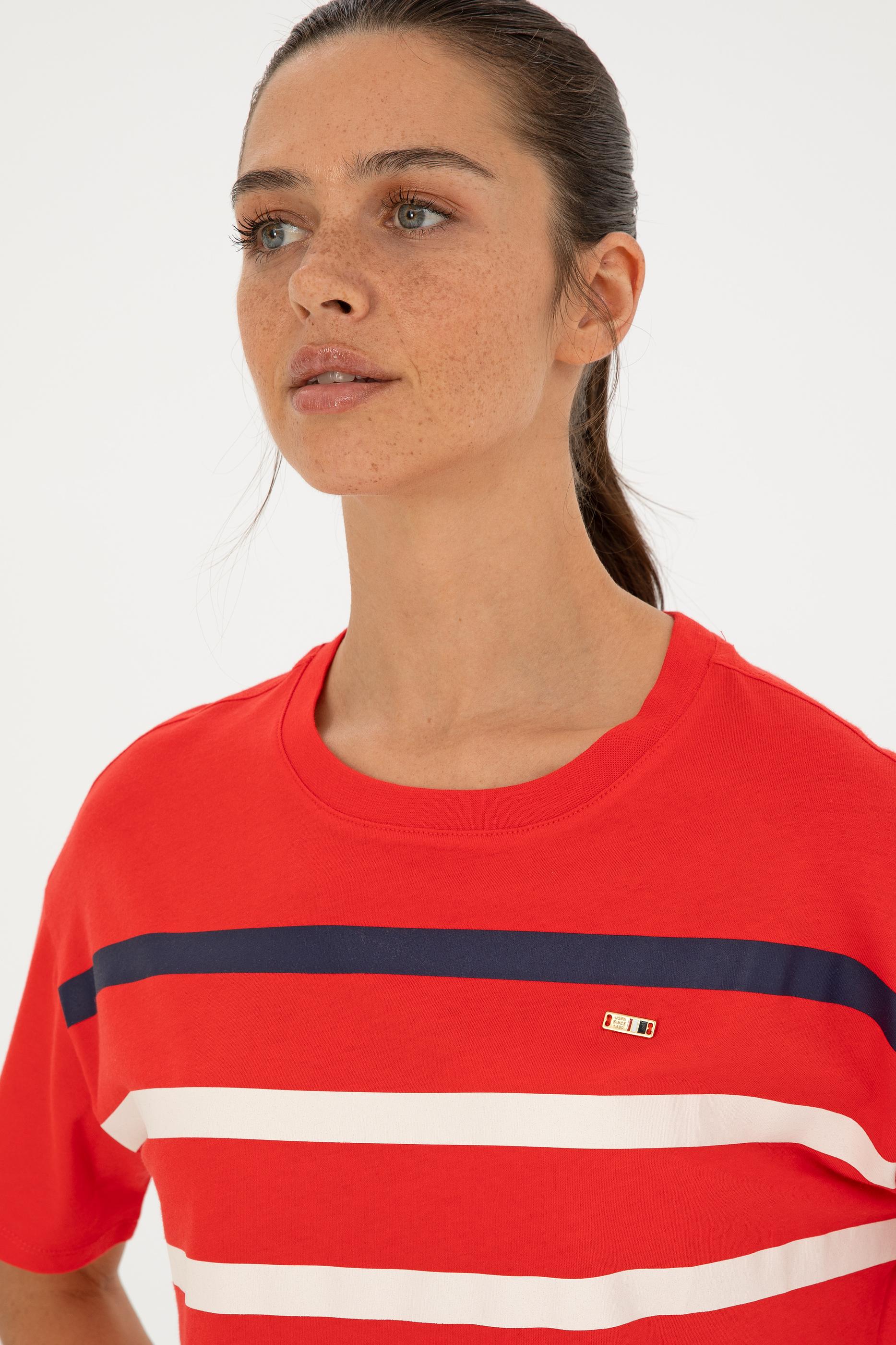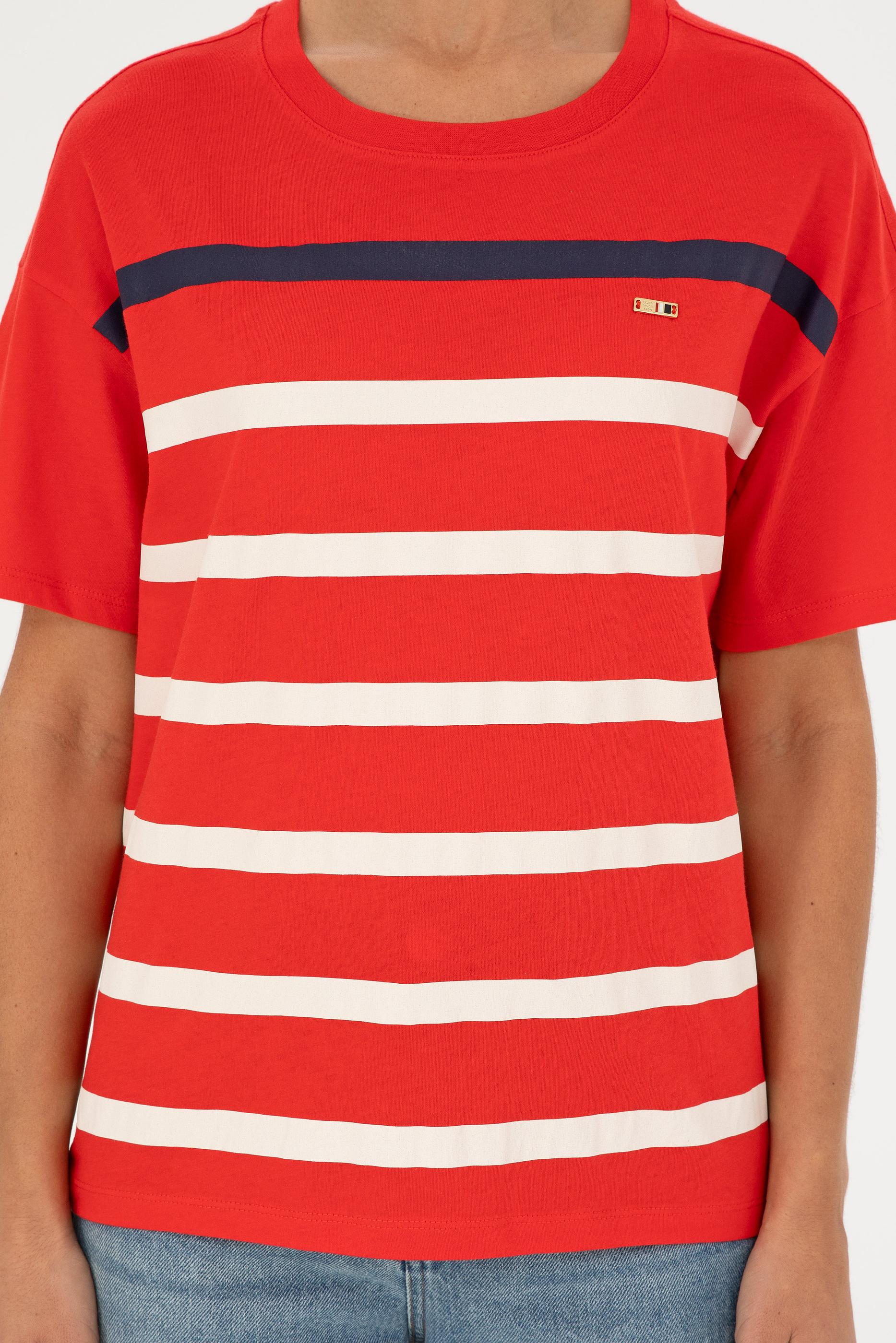 Kadın Kırmızı Bisiklet Yaka Tişört