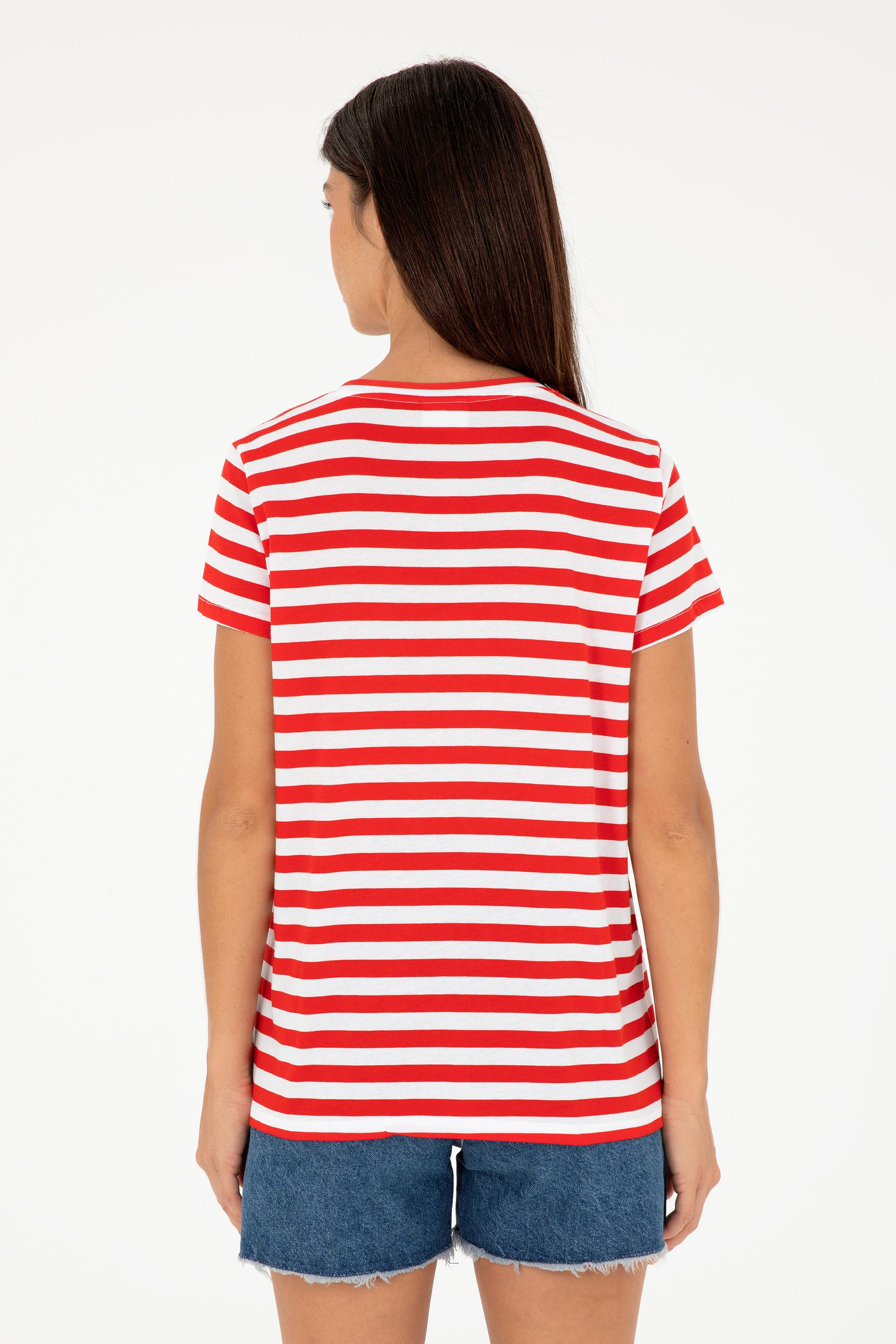Kadın Kırmızı Çizgili V Yaka Tişört