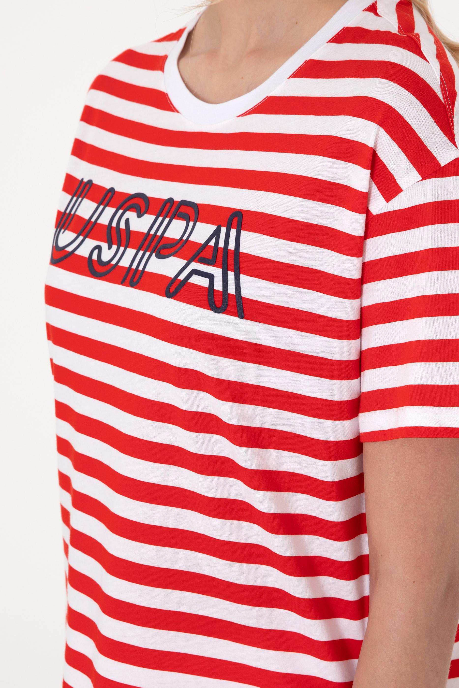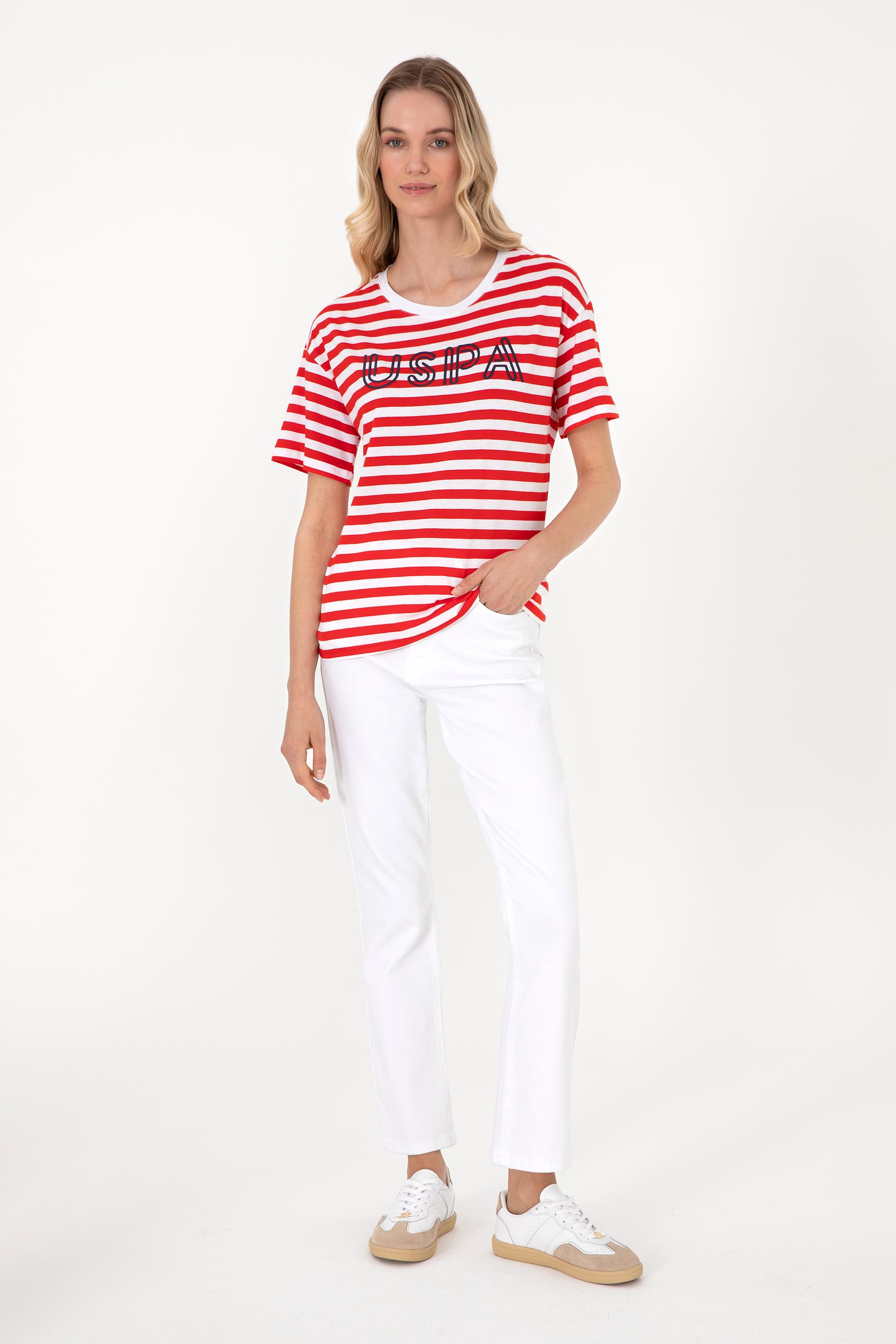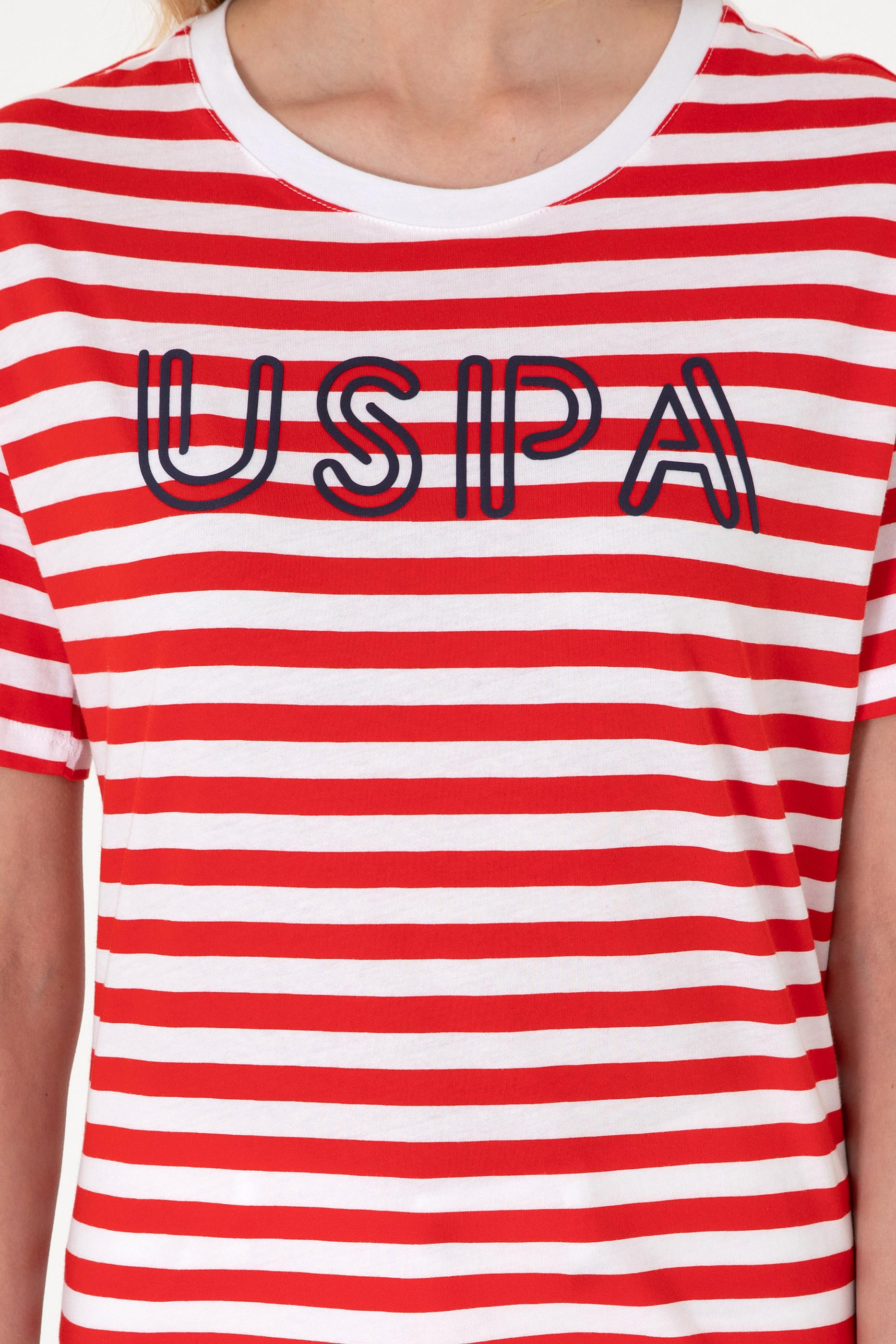U.S. Polo Assn. çizgili tişört, kırmızı-beyaz klasik deseniyle enerjik ve zamansız bir stil sunarken, bisiklet yaka kesimi ve kısa kollu yapısıyla rahat bir kullanım sağlar. Göğüs kısmındaki büyük “USPA” yazı detayı sportif bir hava katarken, düz kesimi farklı beden tiplerine uyum göstererek konforlu bir giyim deneyimi sunar. Günlük stilde öne çıkmak isteyenler için ideal olan bu model, jean pantolonlardan beyaz şortlara kadar birçok parçayla zahmetsizce kombinlenebilir.