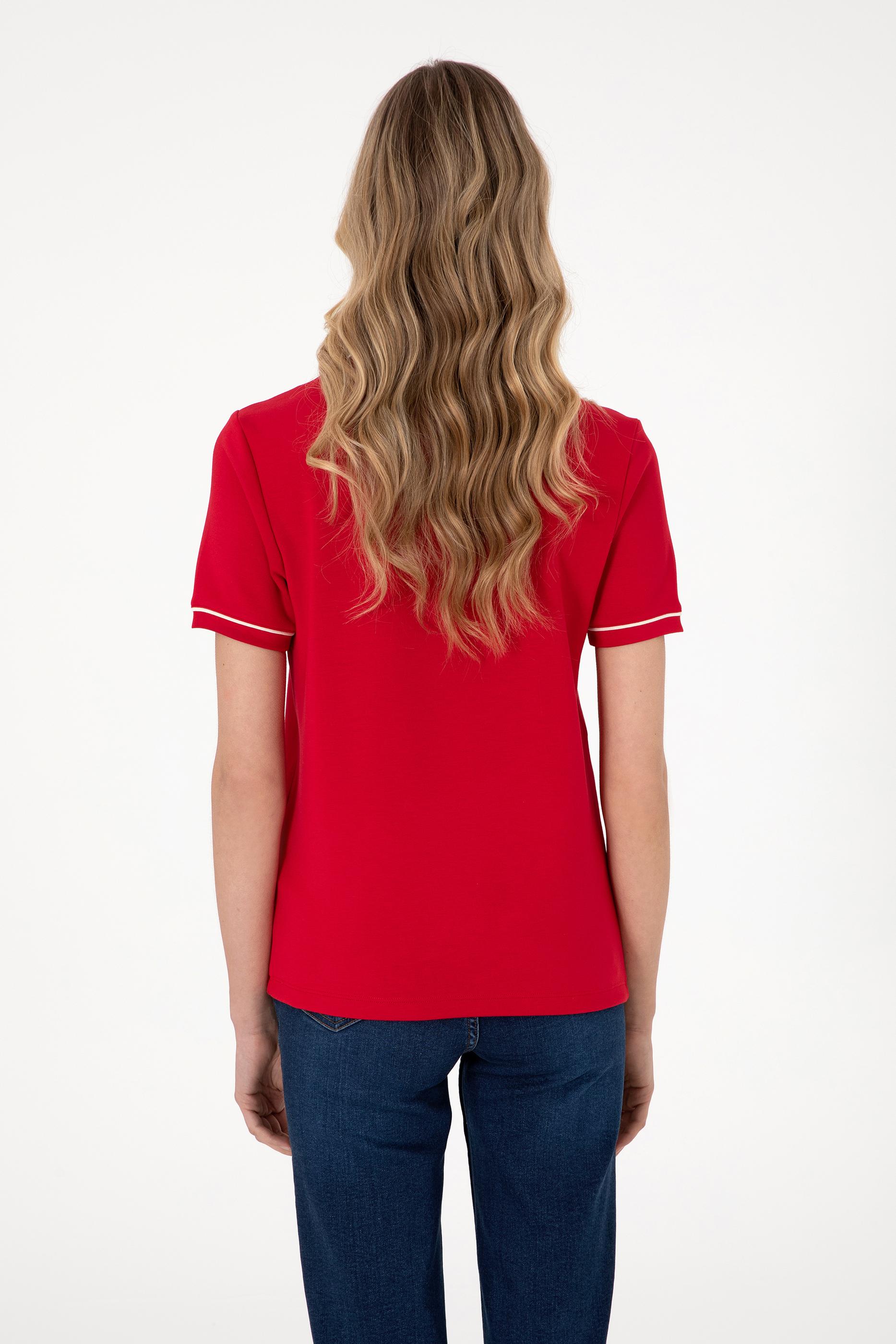 U.S. Polo Assn. tasarımı bu kadın kırmızı tişört, zarif dokunuşlarla sade şıklığı buluşturuyor. Canlı kırmızı rengiyle enerjik bir görünüm sunan model, bisiklet yaka kesimi ve kısa kollu yapısıyla günlük stile modern bir hava katıyor. Göğüs kısmında yer alan minik cep detayı, üzerindeki kontrast şeritle öne çıkarak tasarıma dinamik bir vurgu kazandırıyor. Aynı şerit detayı, kol uçlarındaki ince çizgilerle bütünlük oluştururken, alt köşedeki küçük metal logo U.S. Polo Assn. stilini tamamlıyor. Jean pantolonlar ve sneaker’larla kombinlendiğinde sade ama dikkat çekici bir görünüm elde etmek mümkün.