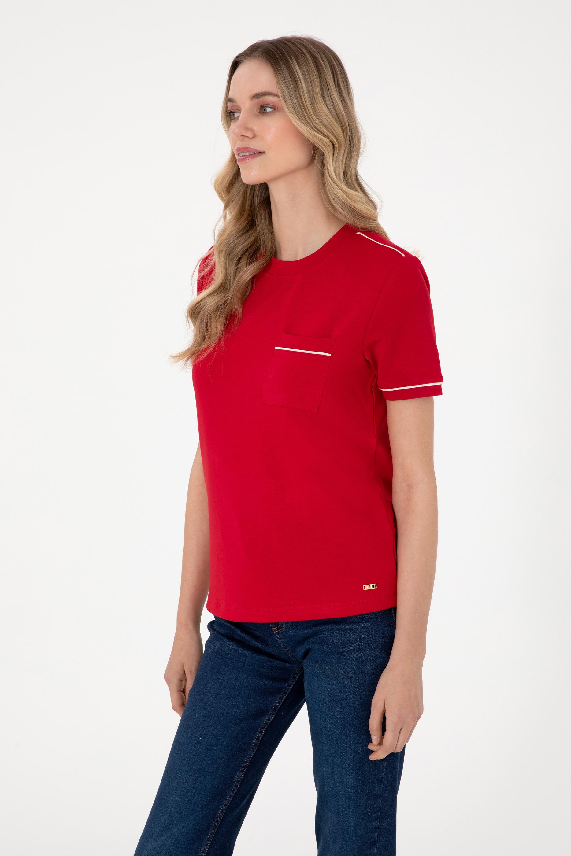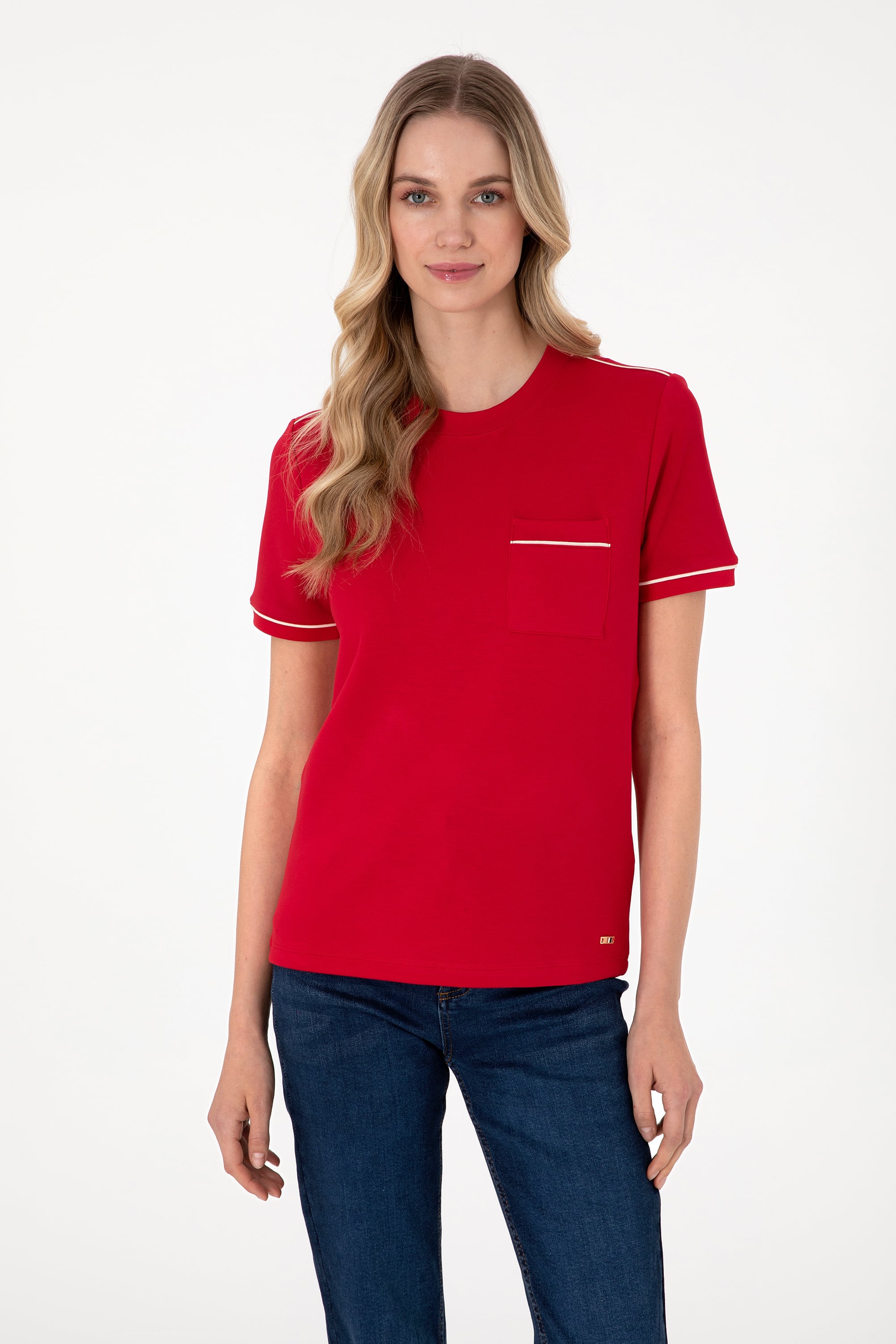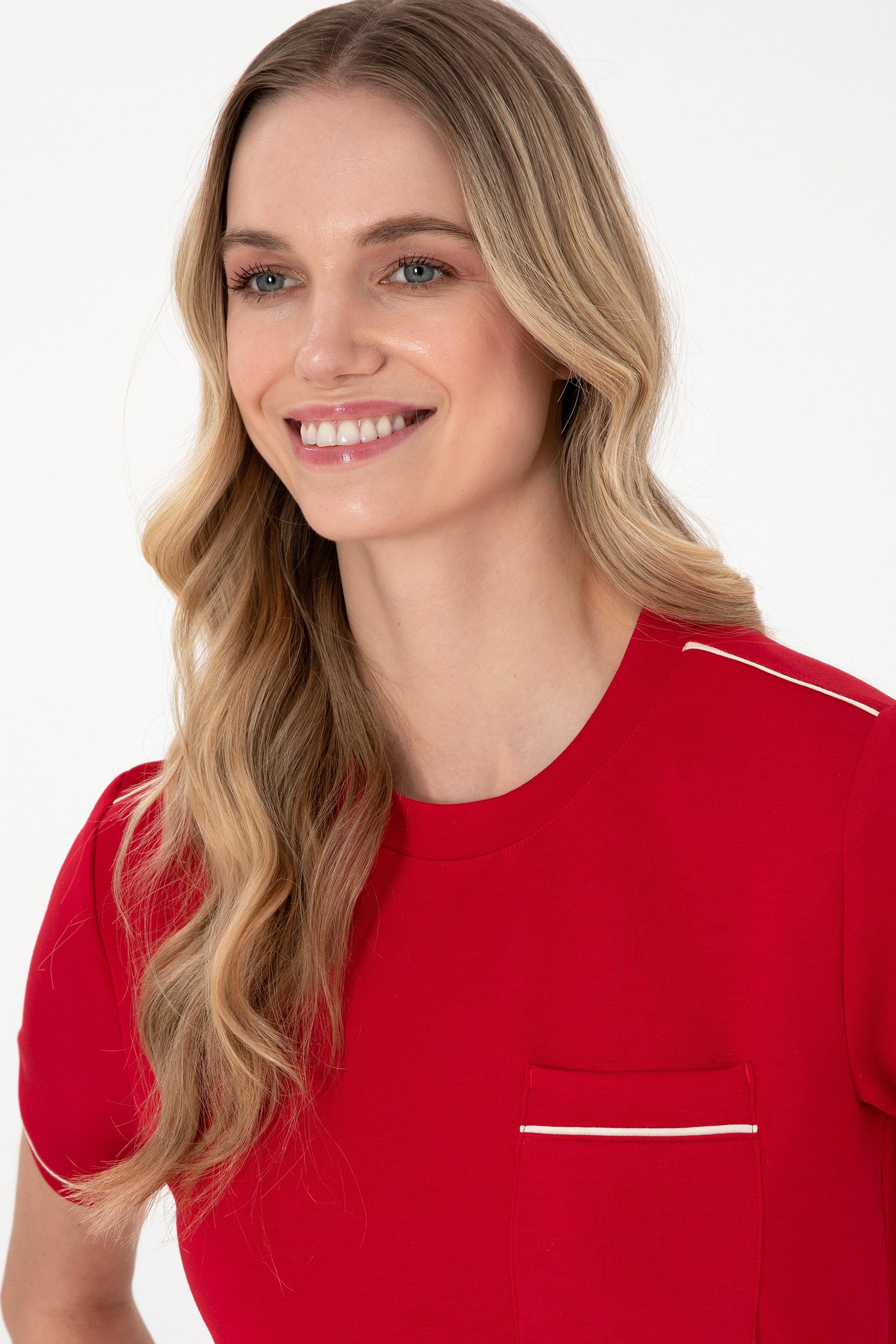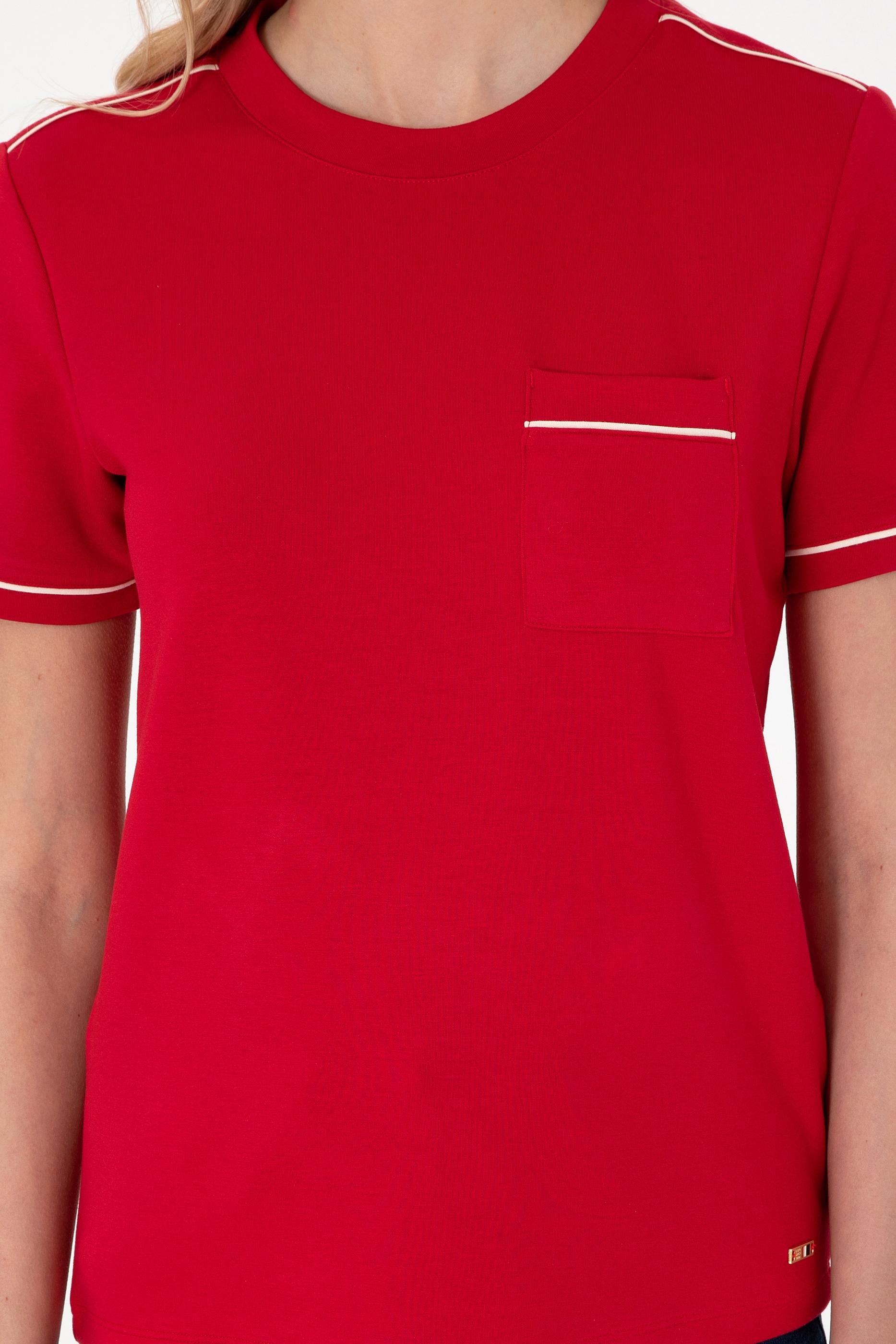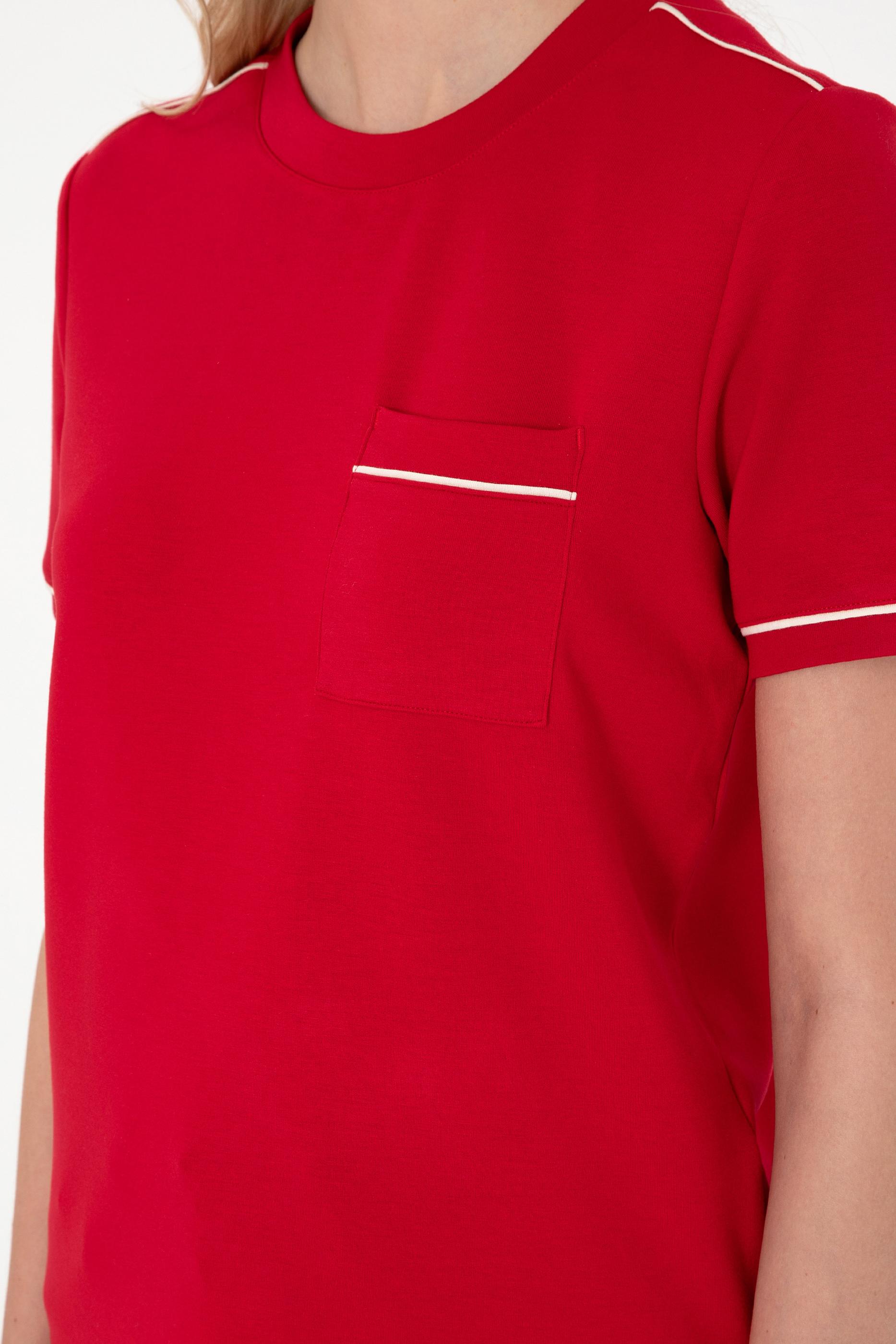 Kadın Kırmızı Modal Karışımlı Bisiklet Yaka Tişört