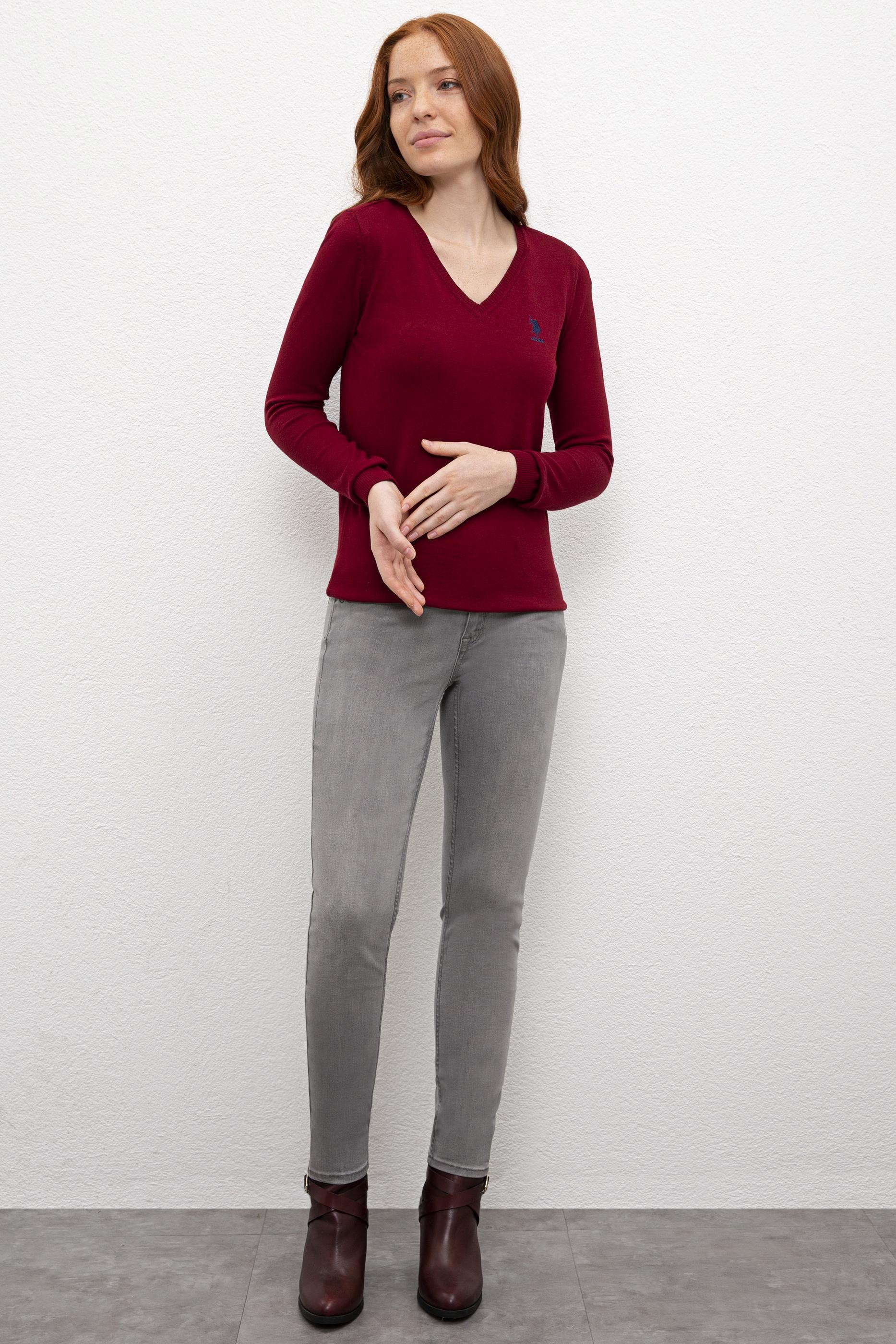 Kadın Kırmızı Triko Kazak Basic