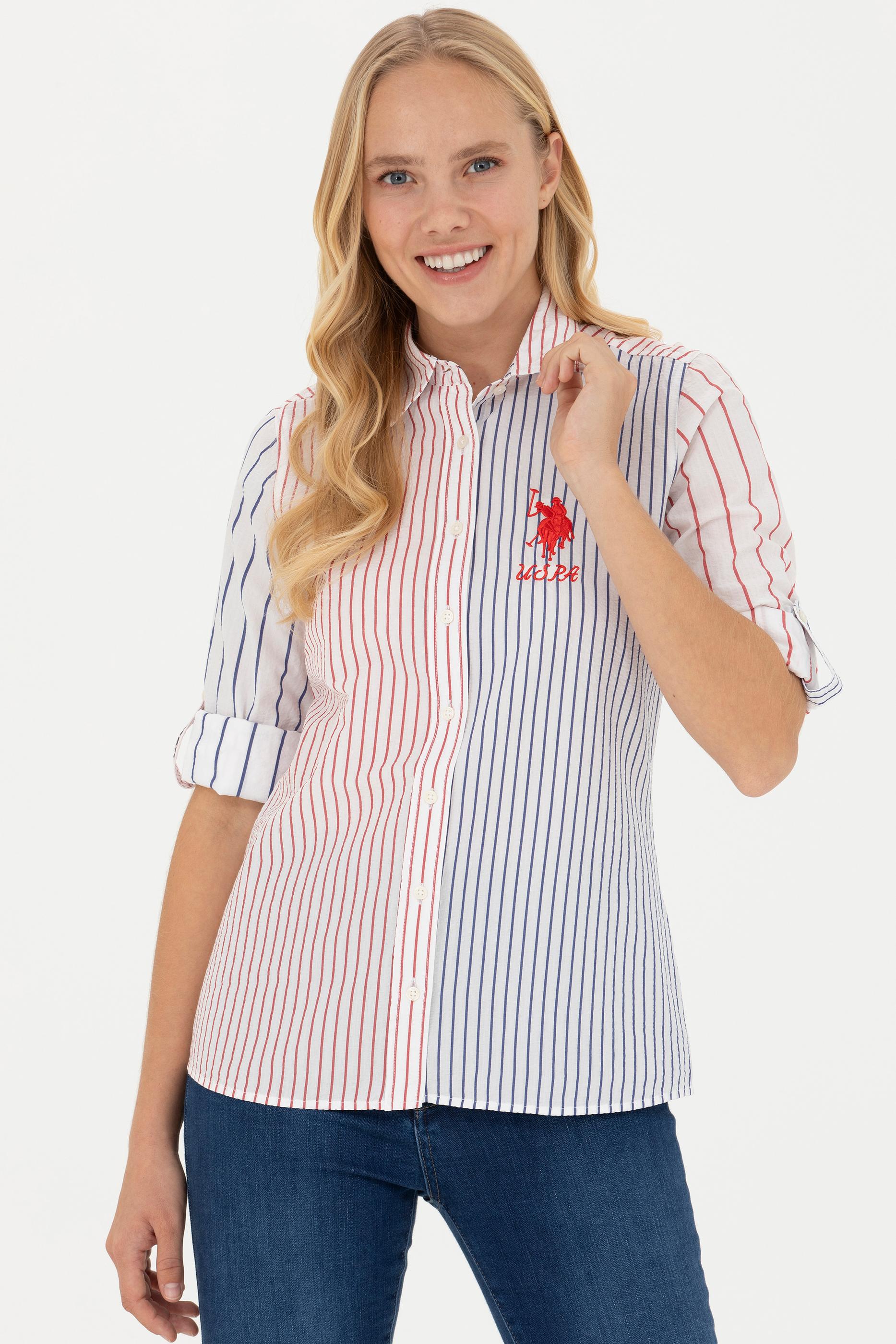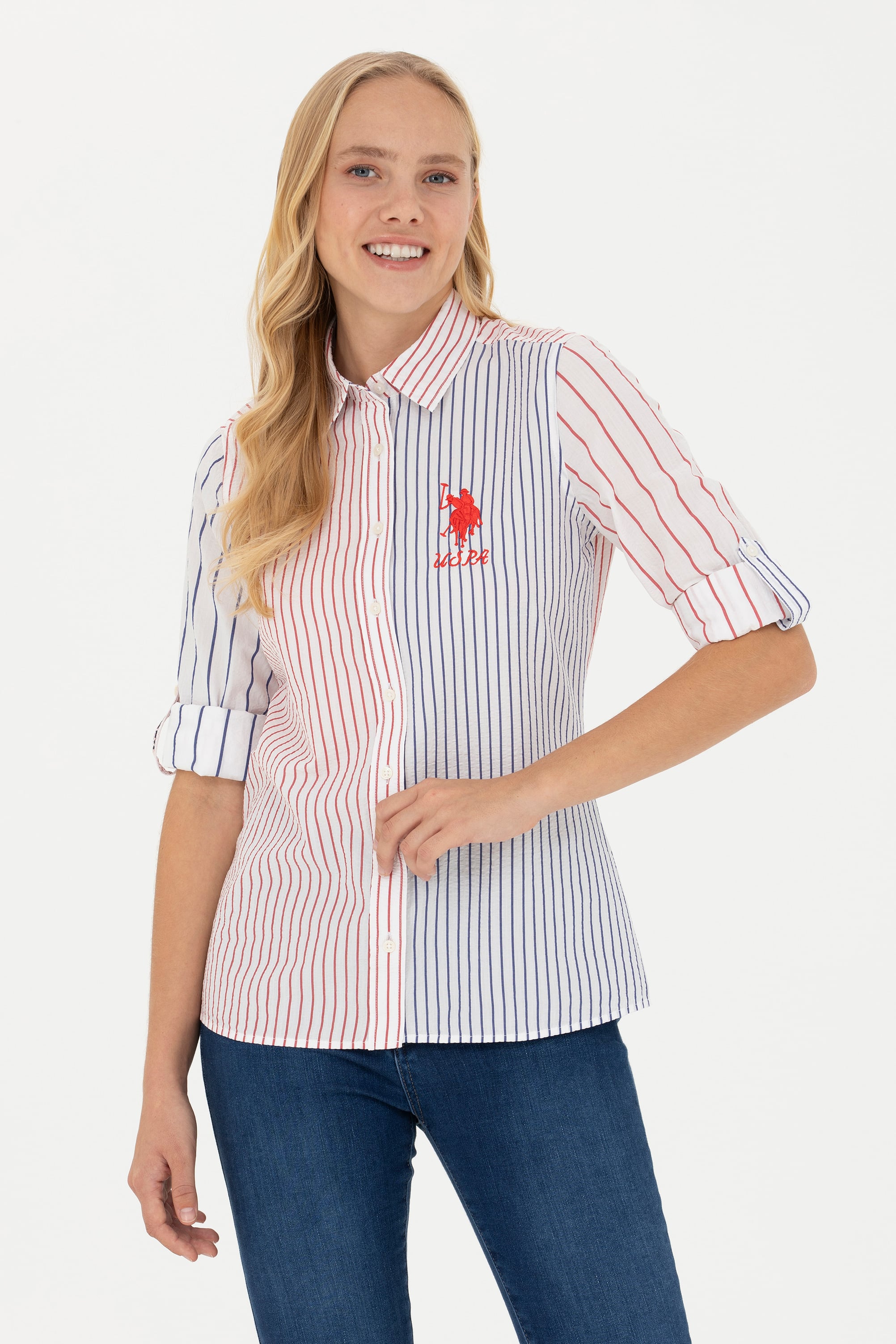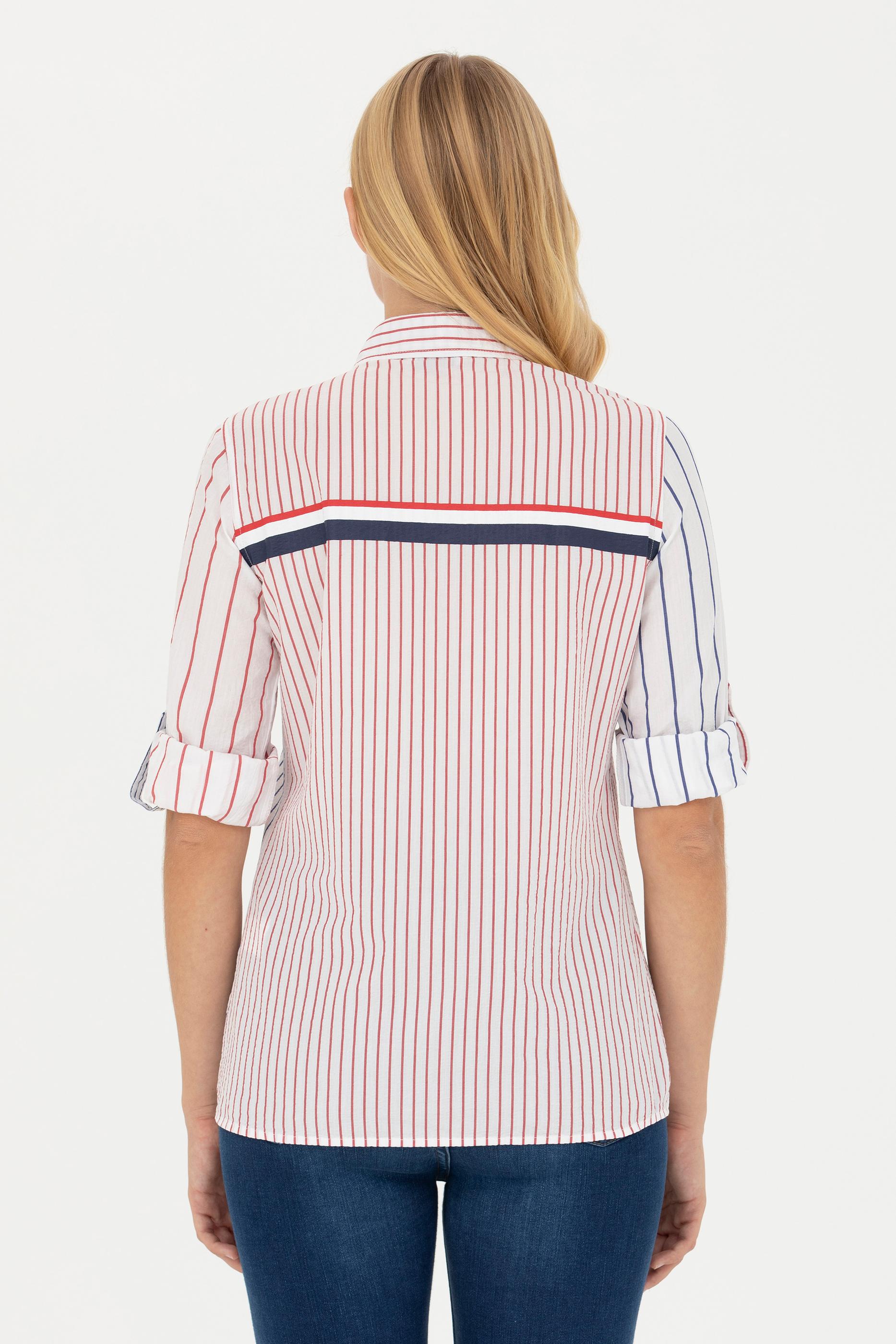 Kadın Kırmızı Uzun Kollu Çizgili Gömlek