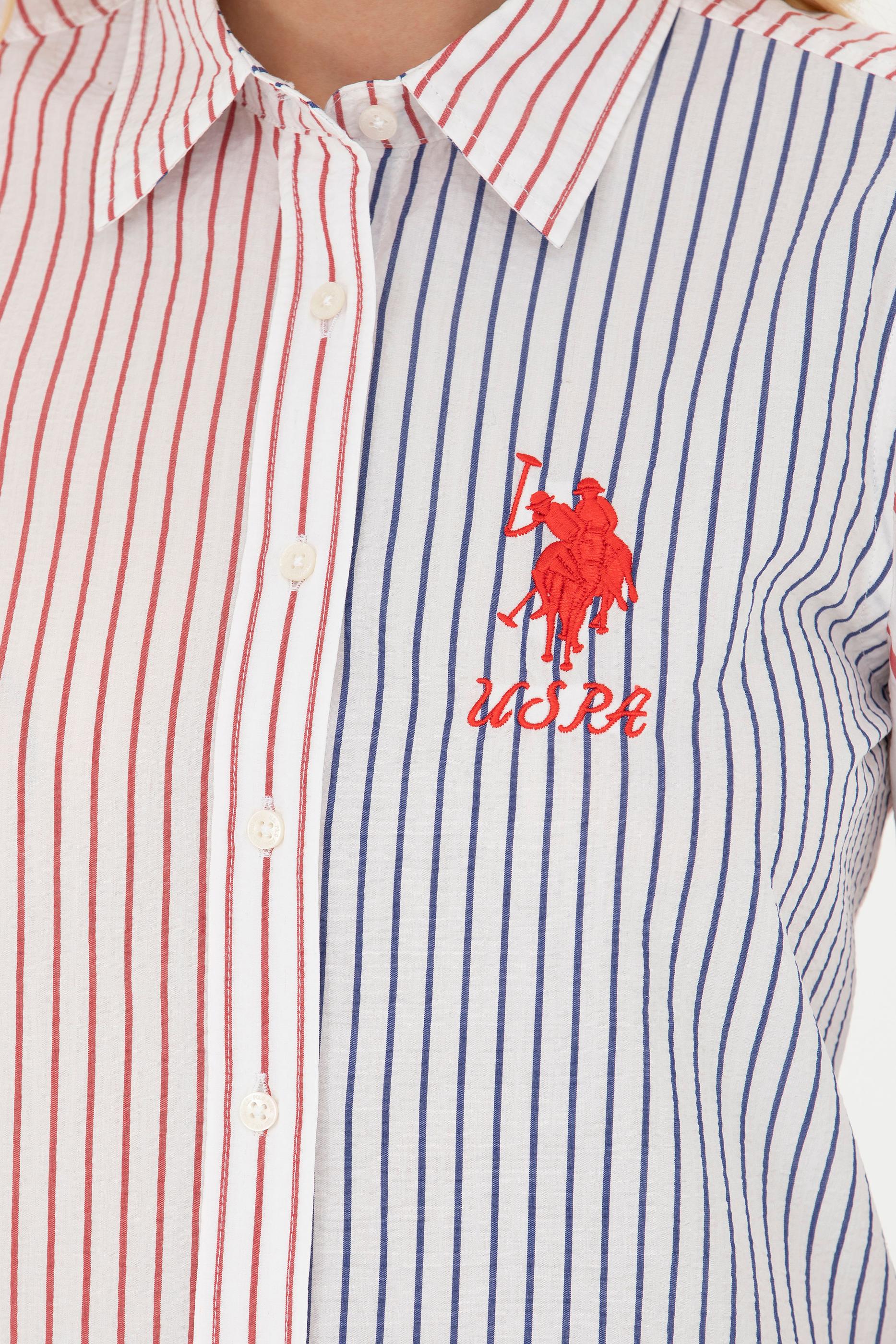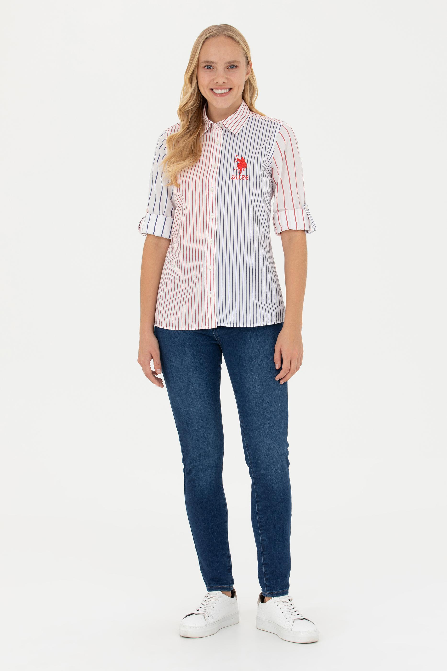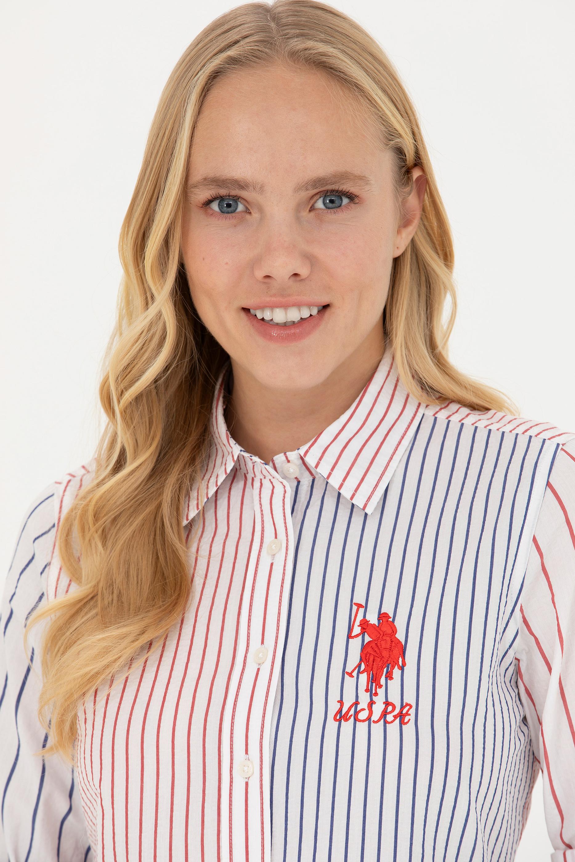 Kadın Kırmızı Uzun Kollu Çizgili Gömlek