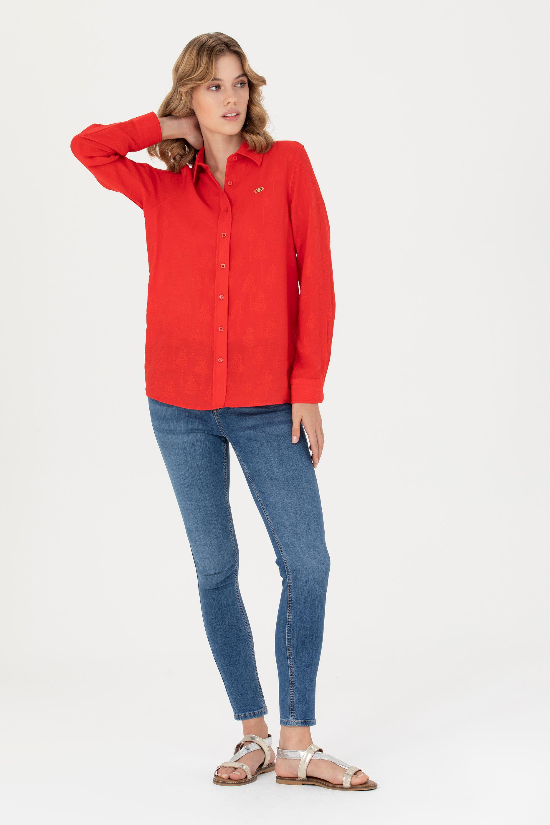 Kadın Kırmızı Uzun Kollu Gömlek