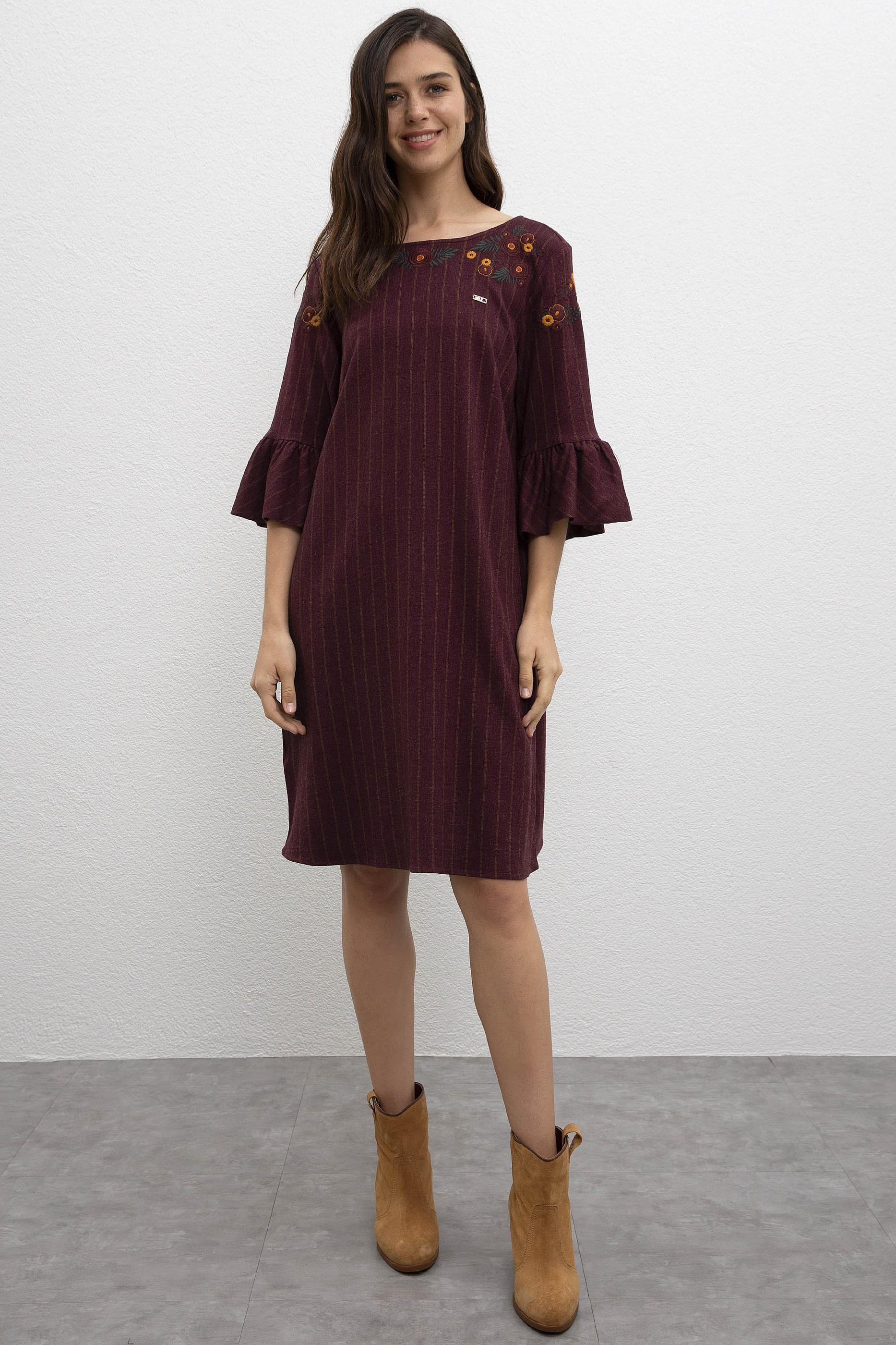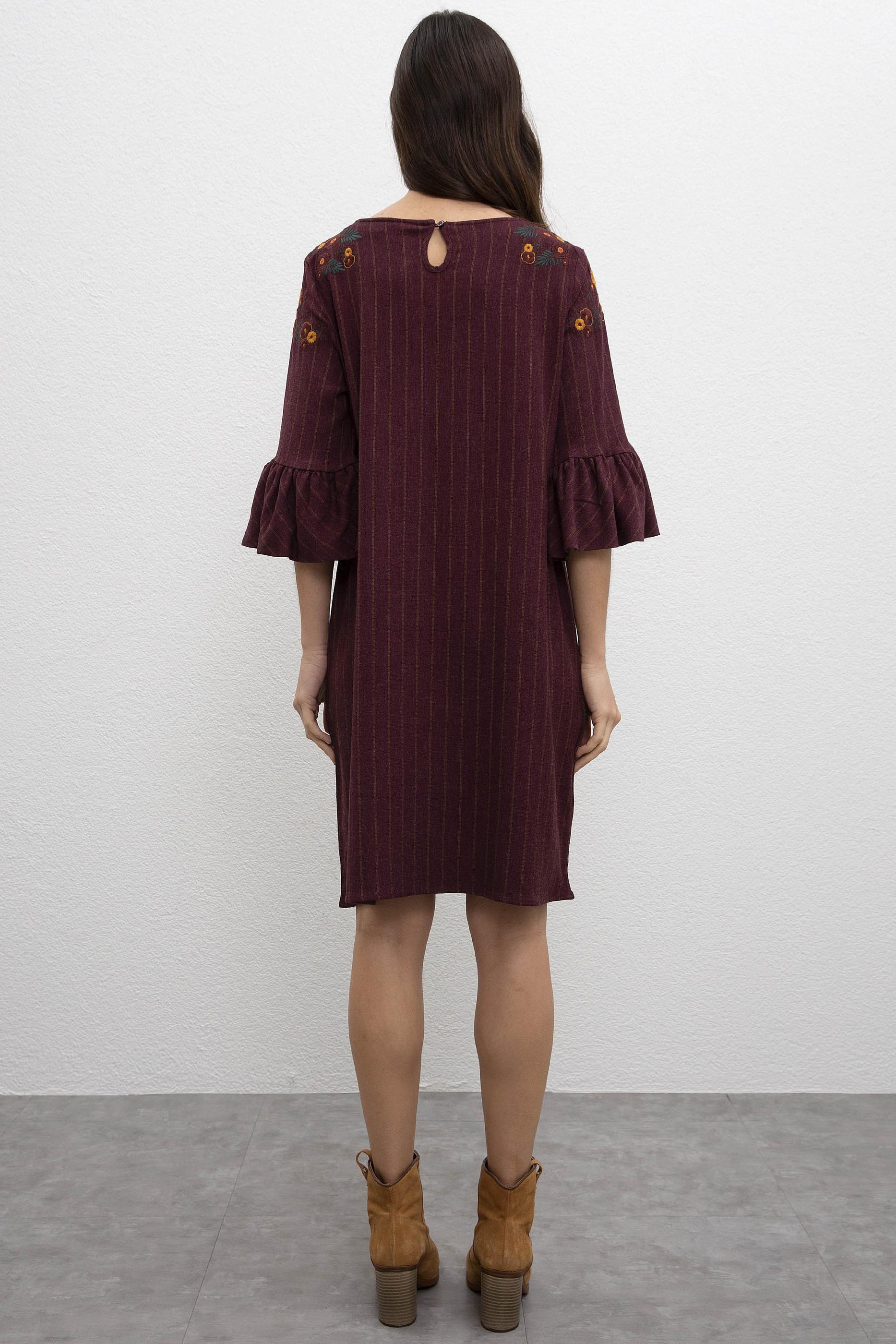- Kadın Koyu Bordo Dokuma Elbise