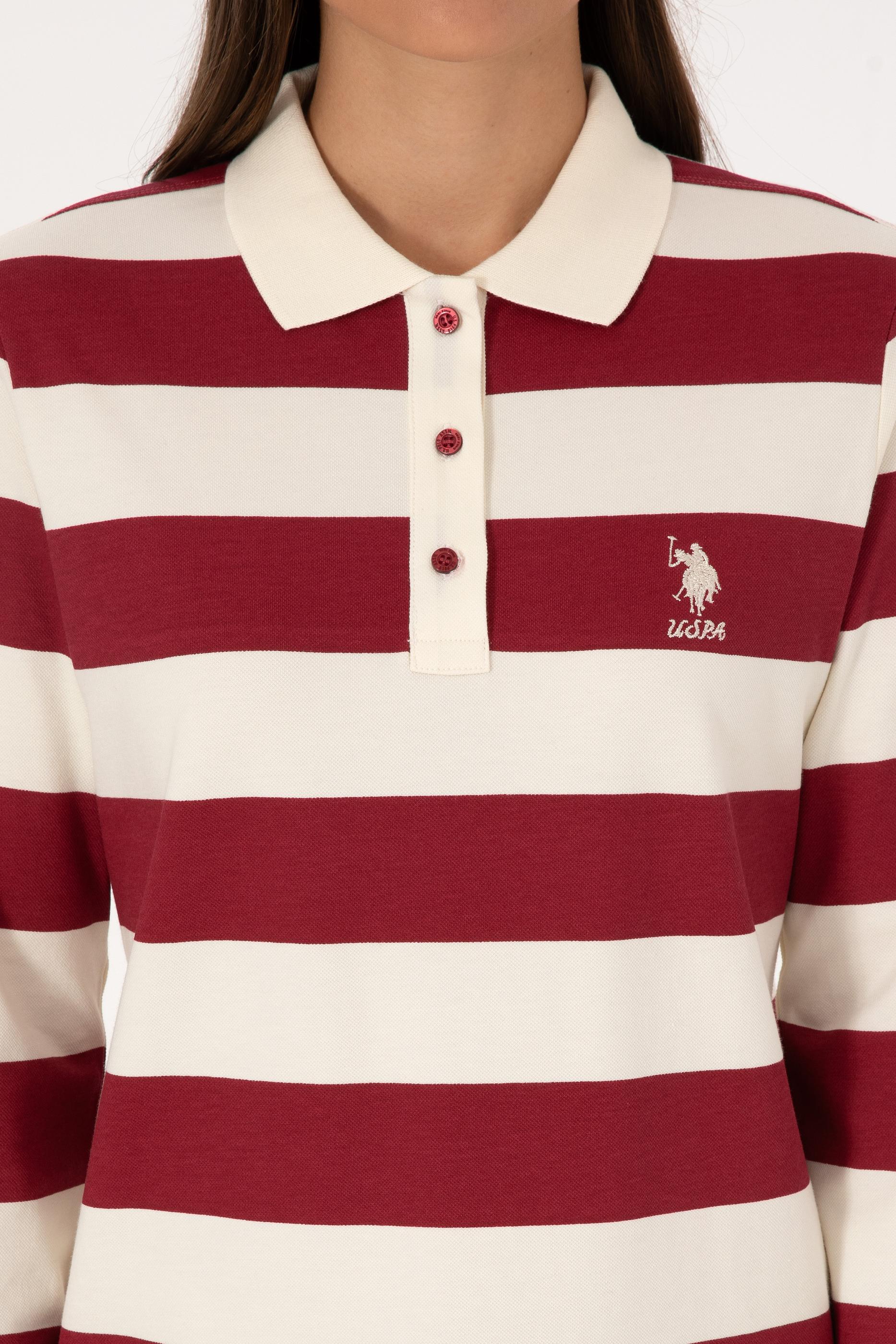 Kadın Koyu Frambuaz Çizgili Polo Yaka Sweatshirt
