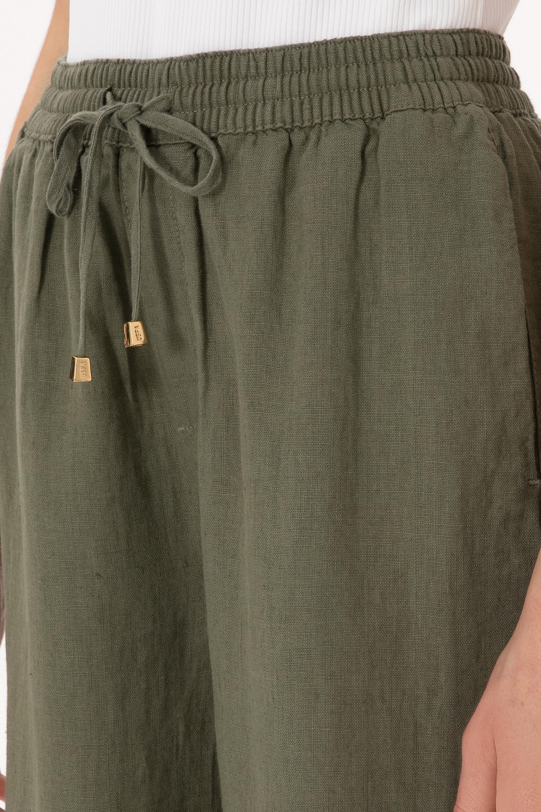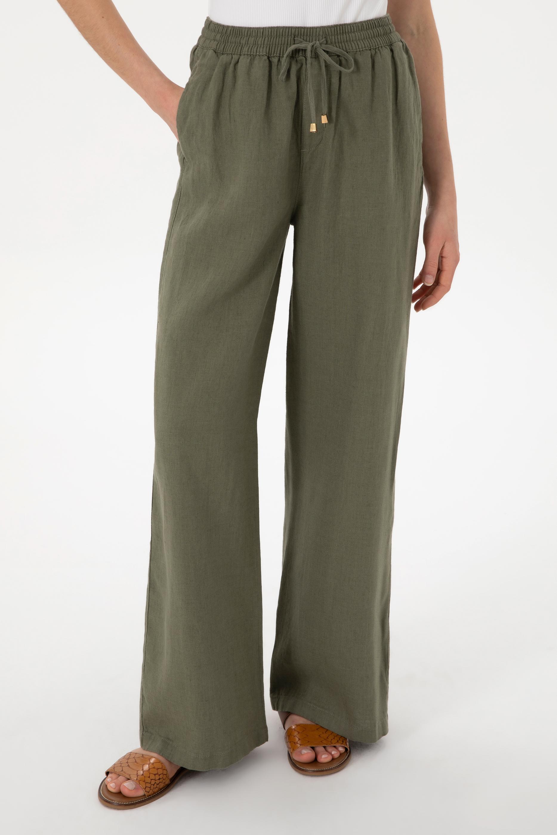 - Kadın Koyu Haki Loose Relax Fit Kanvas Pantolon