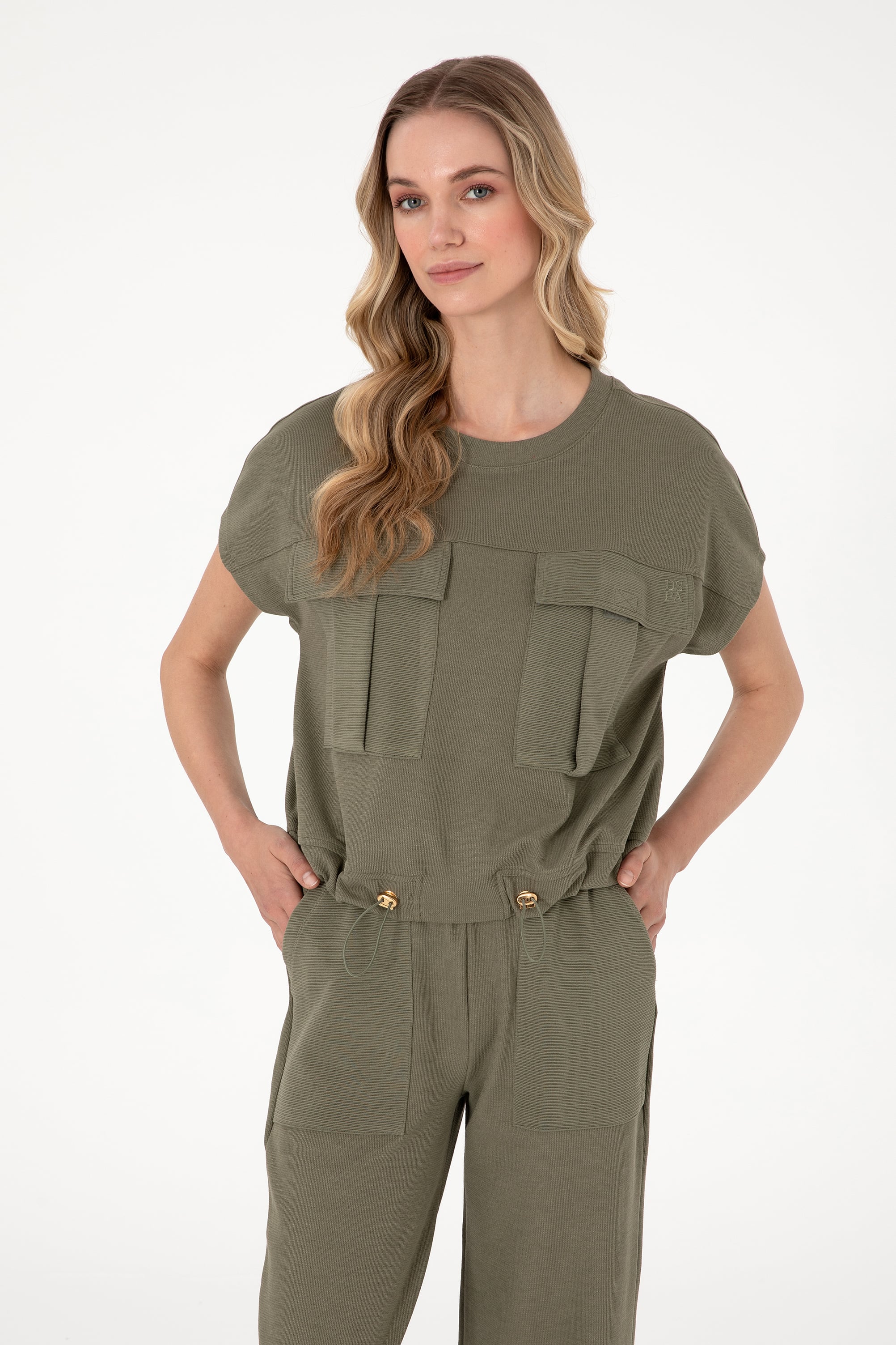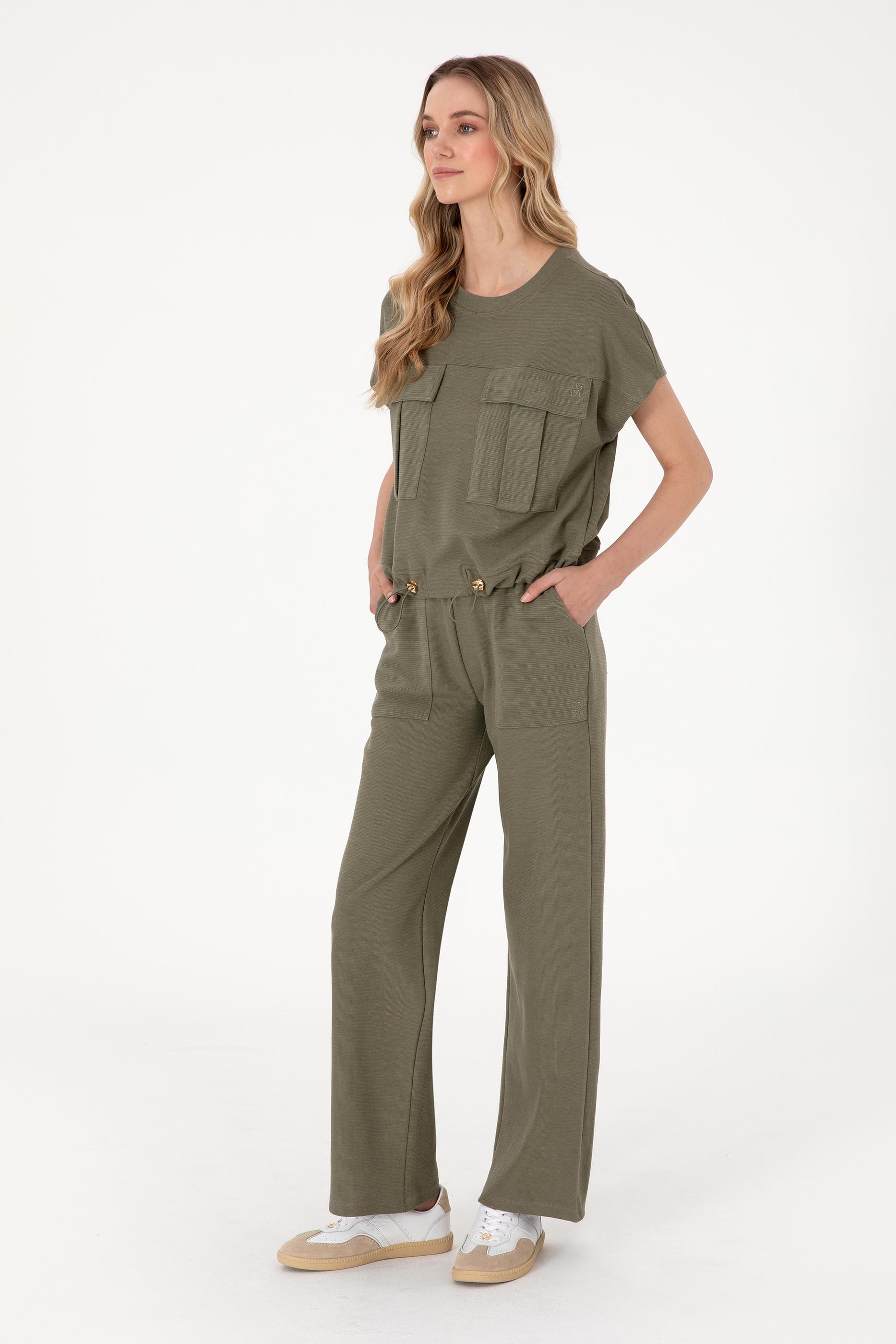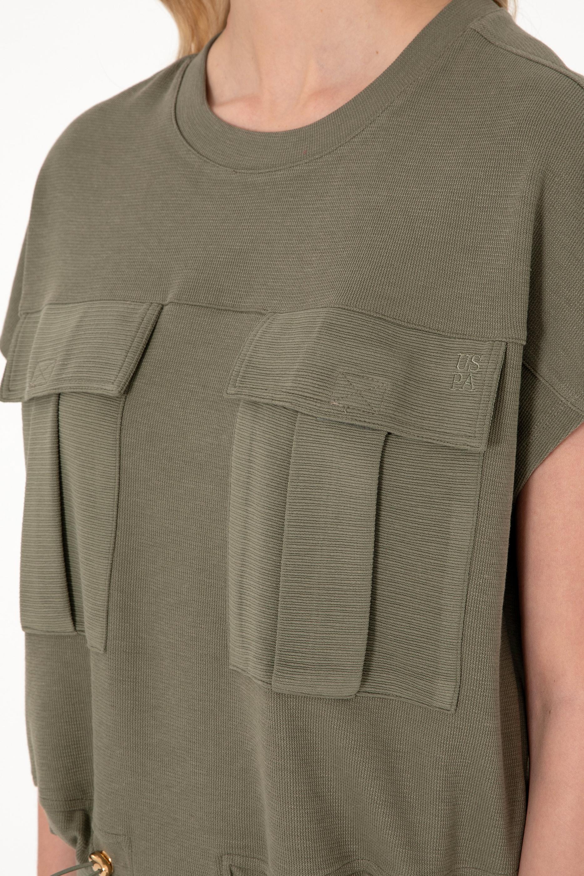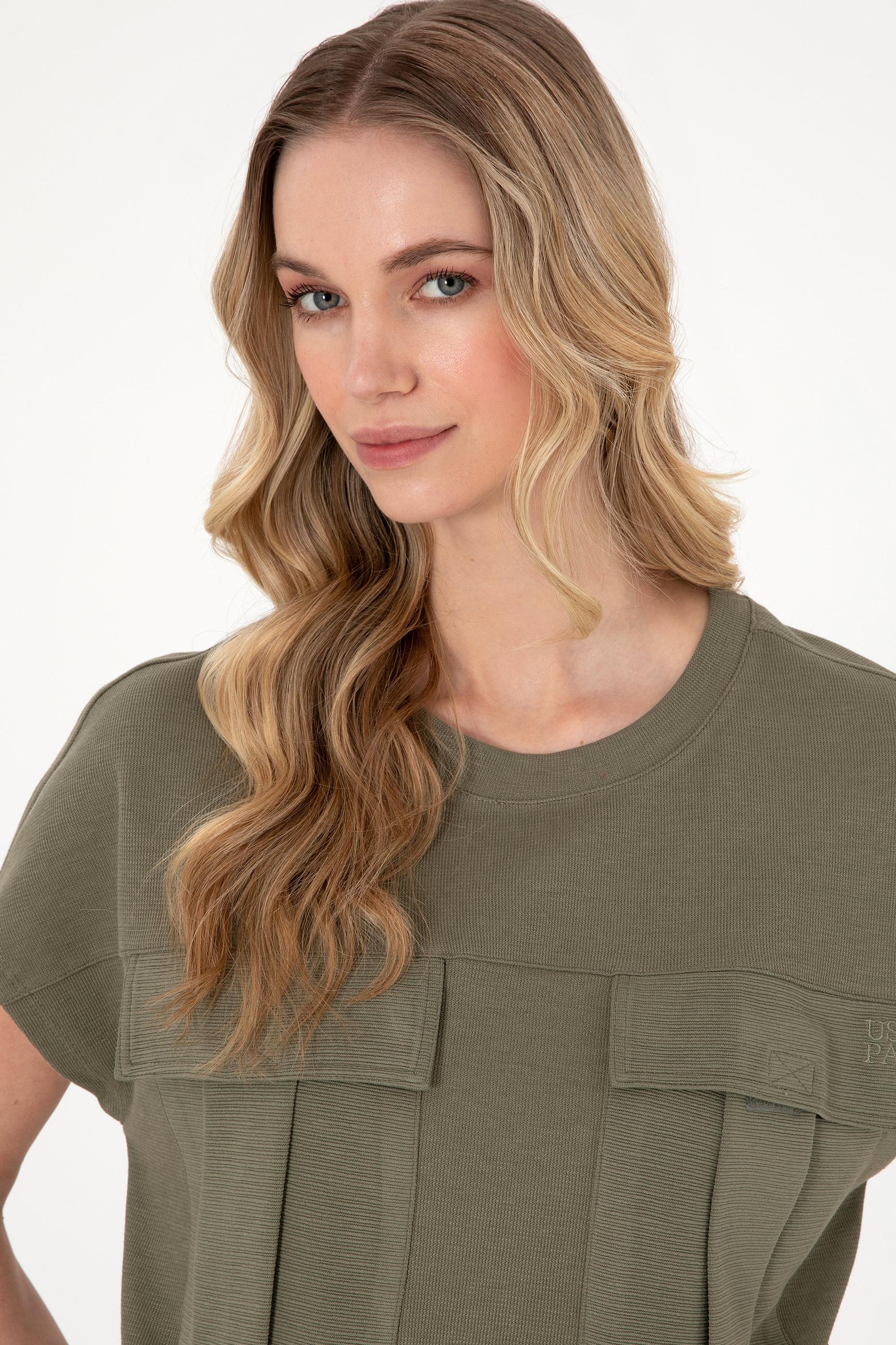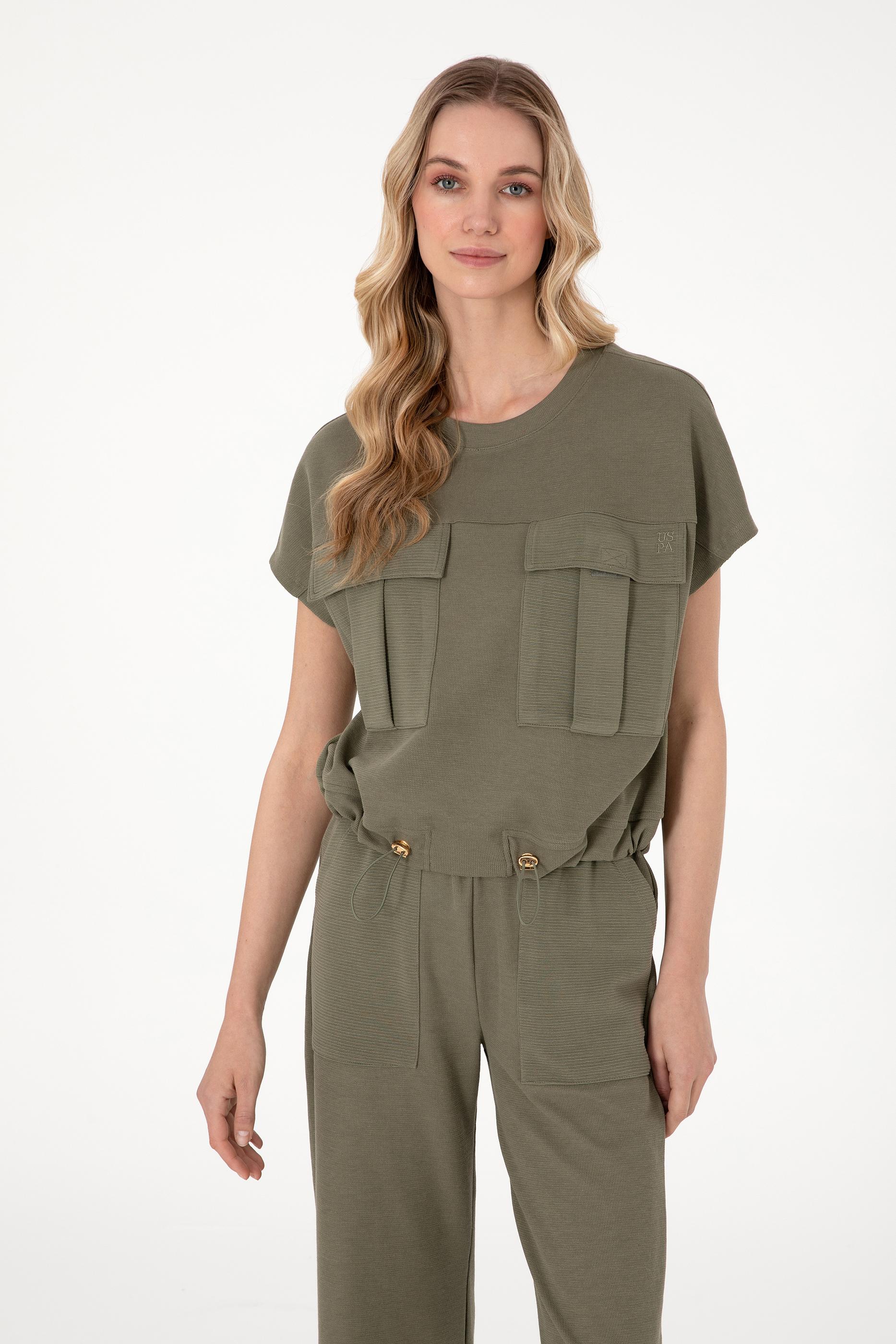 Kadın Koyu Haki Bisiklet Yaka Tişört
