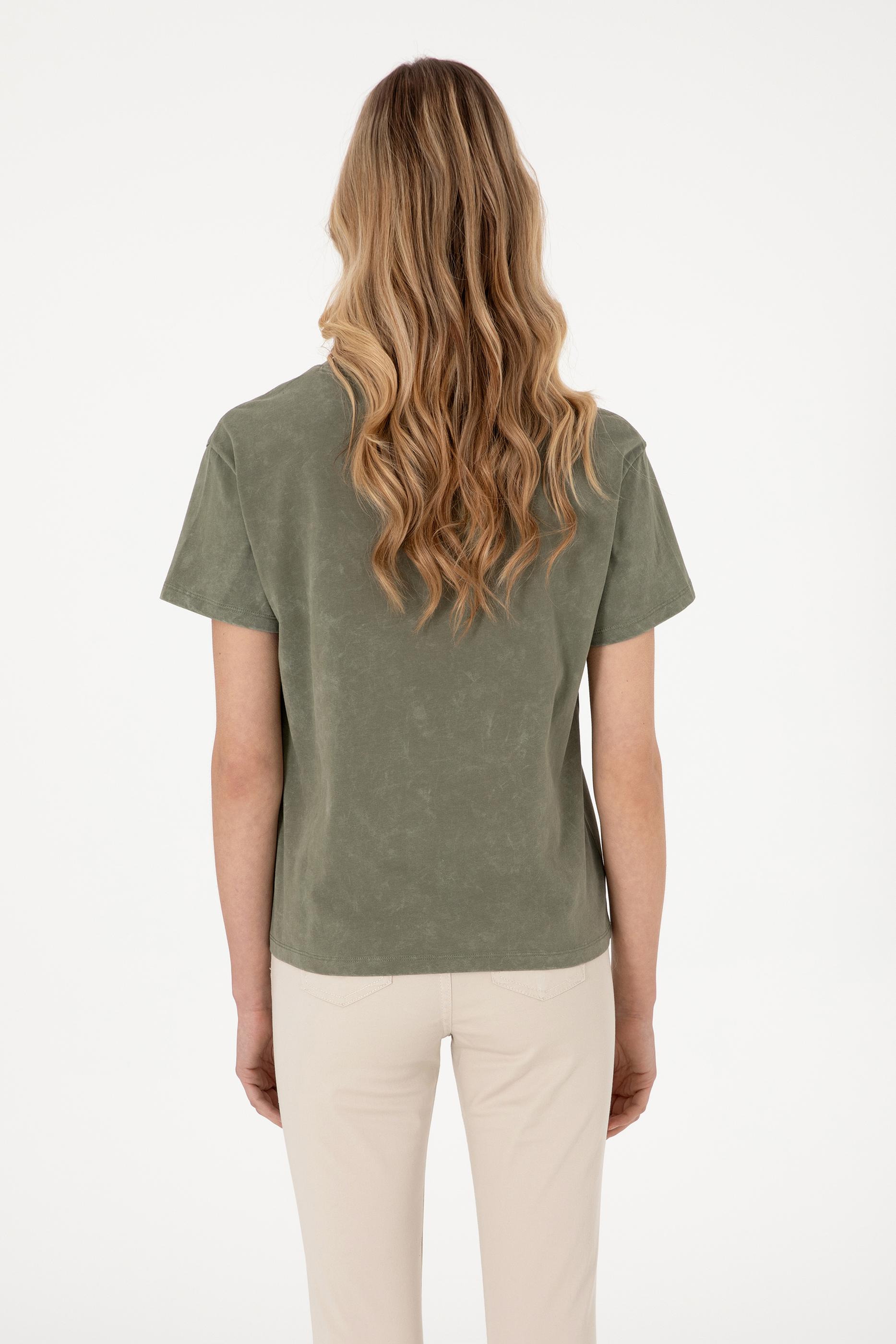 - Kadın Haki Yıkamalı Bisiklet Yaka Tişört