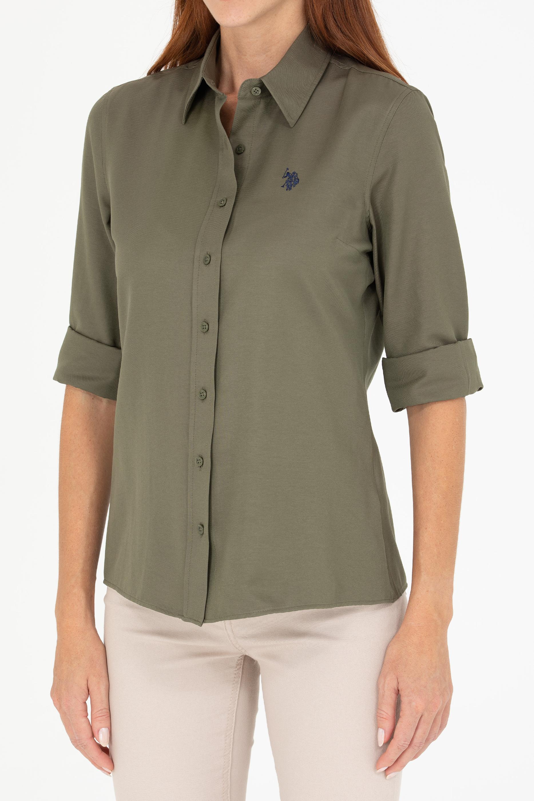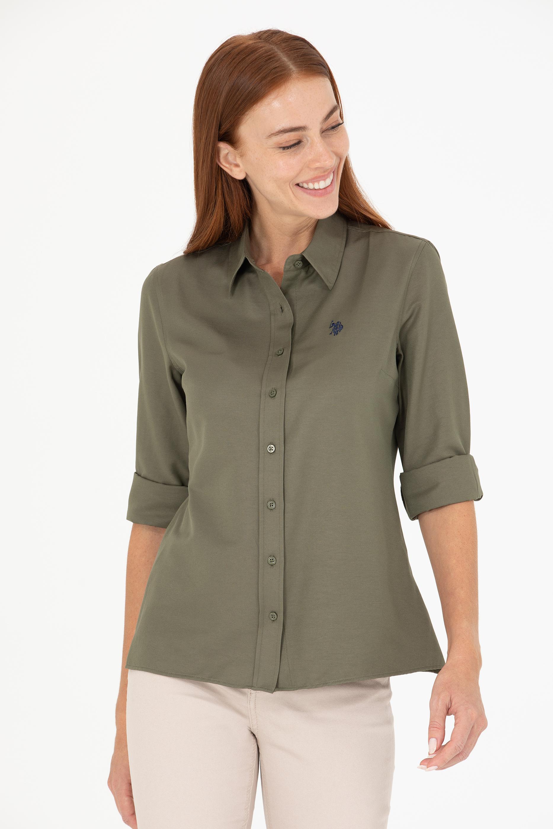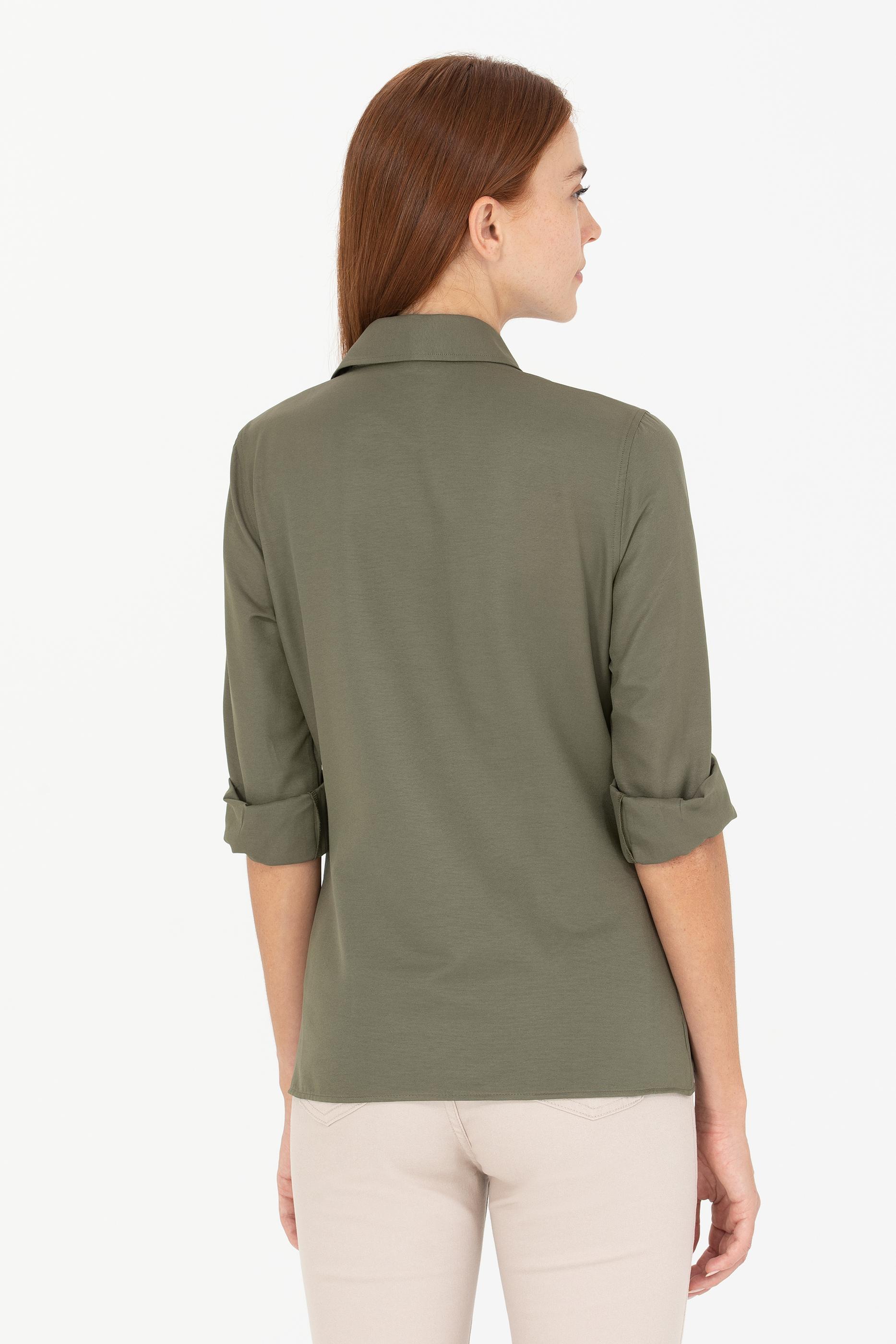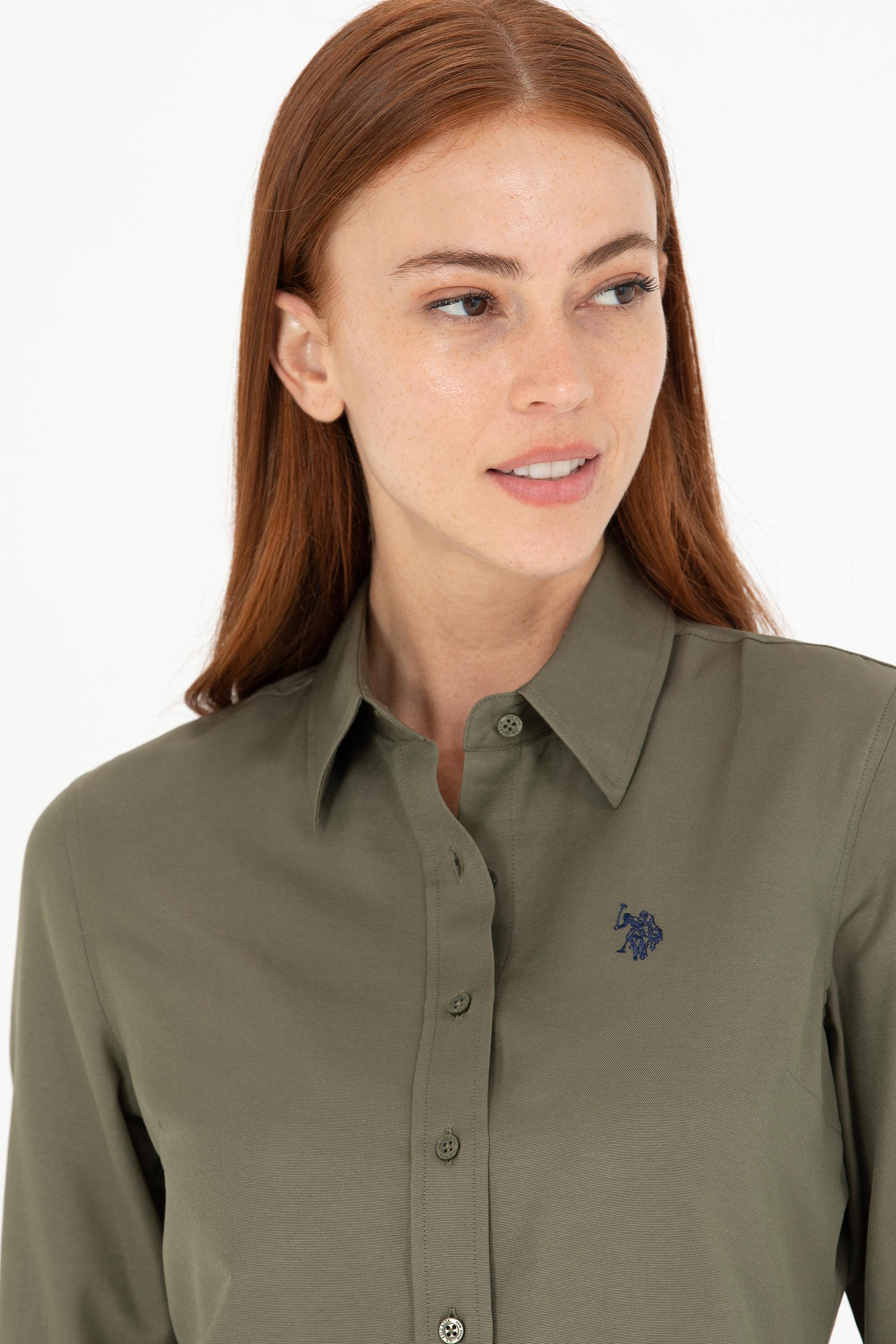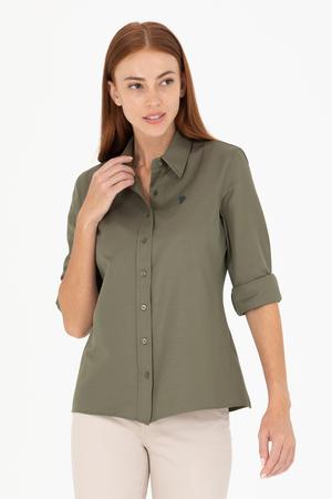 - Kadın Koyu Haki Uzun Kollu Basic Gömlek