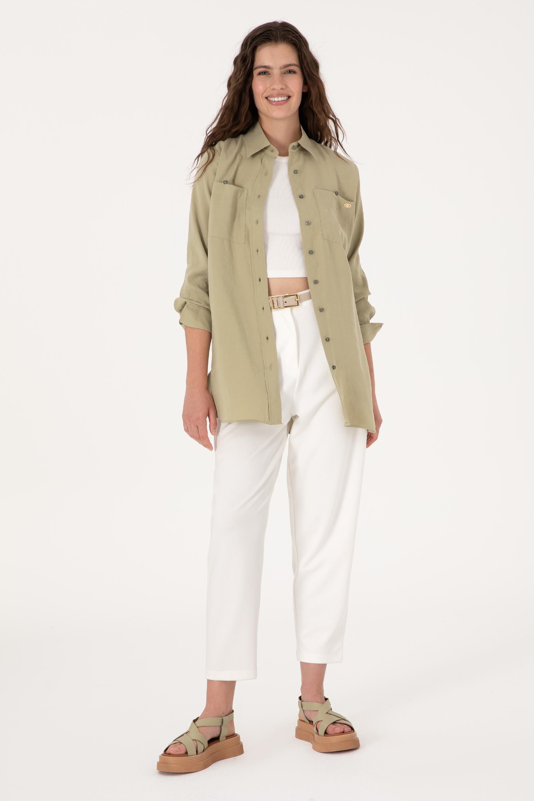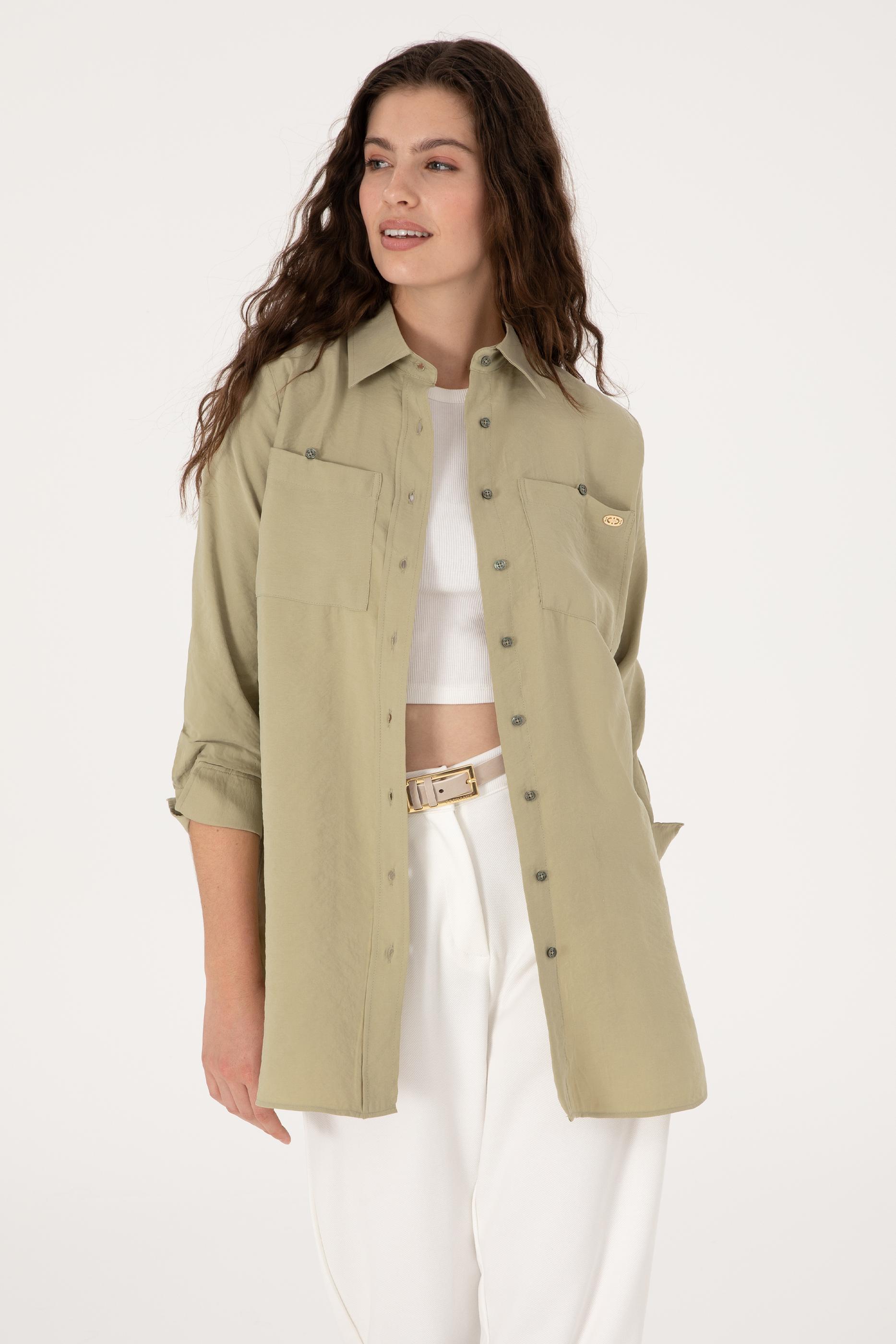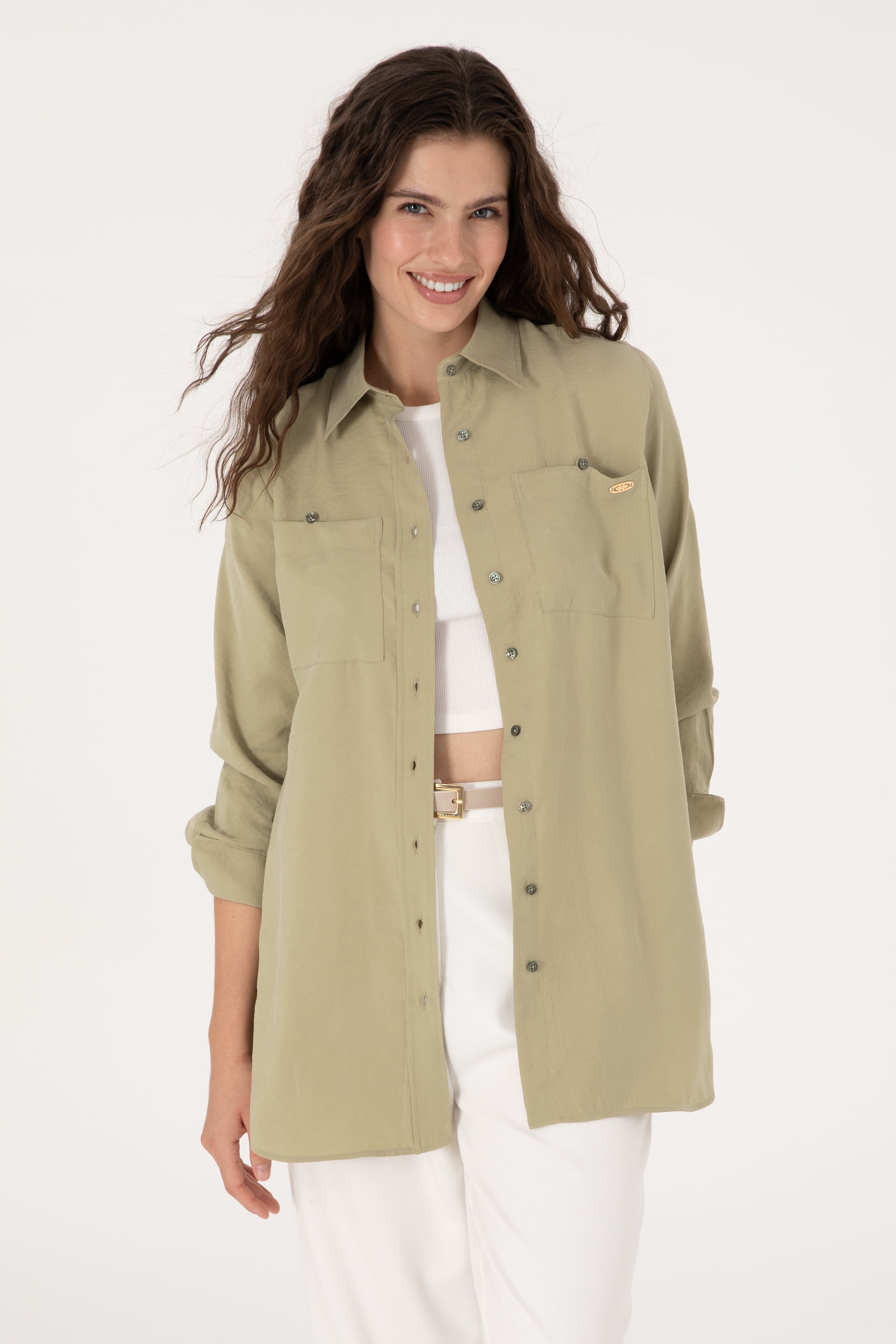 Kadın Koyu Haki Uzun Kollu Gömlek