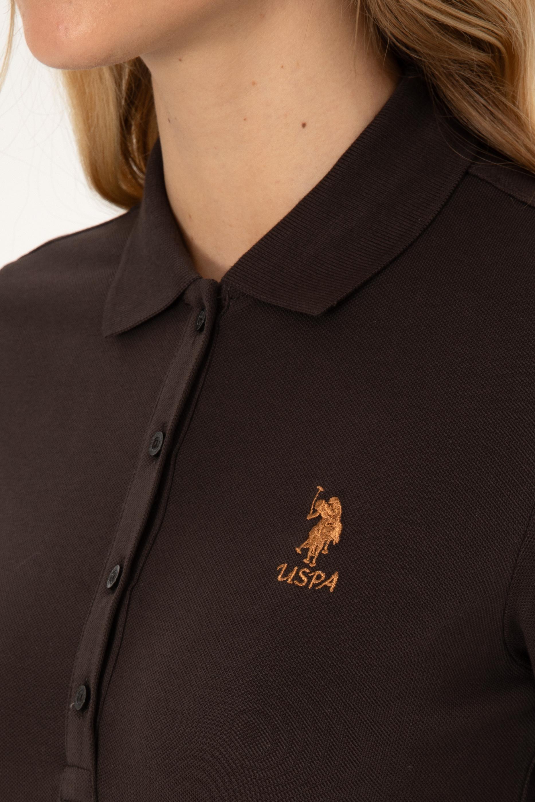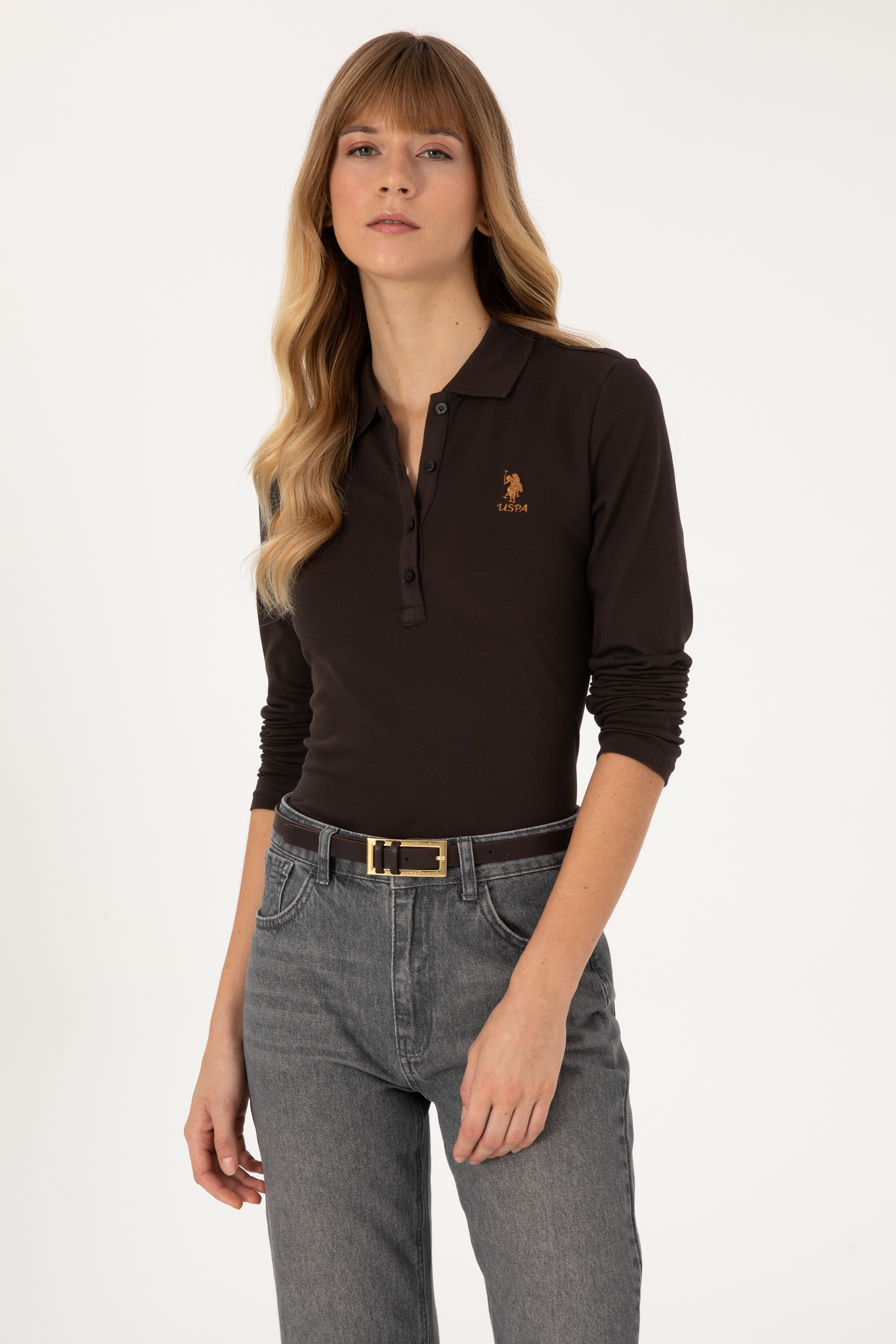Kadın Kahverengi Basic Polo Yaka Sweatshirt