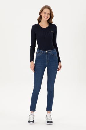 Kadın Koyu Mavi Jean Pantolon