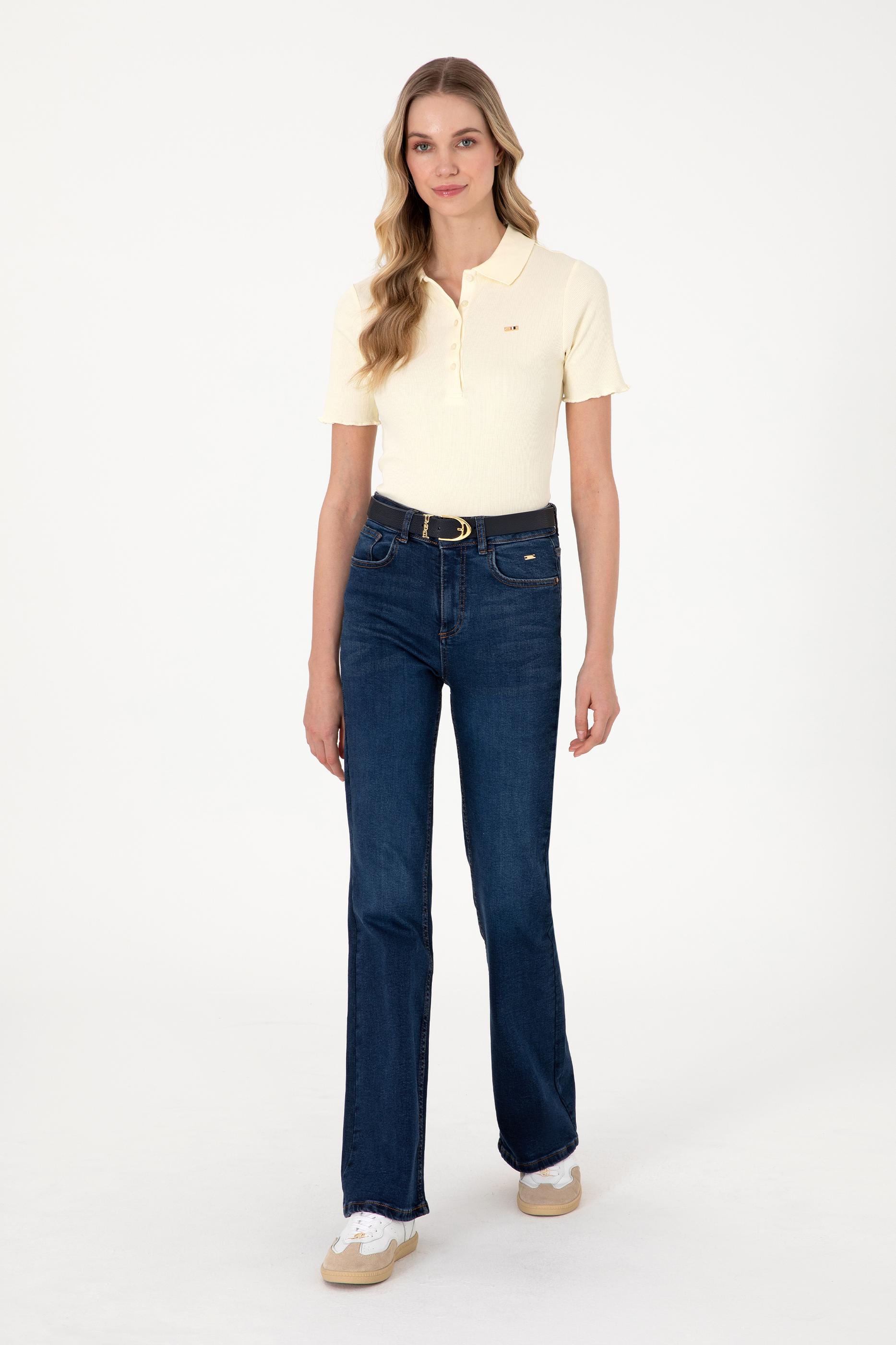 - Kadın Koyu Mavi Slim Flare Fit Jean Pantolon