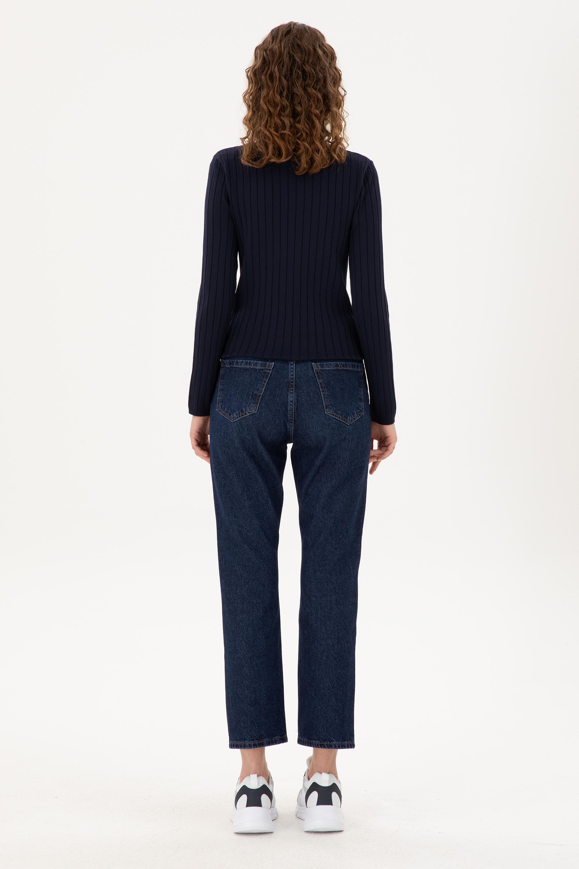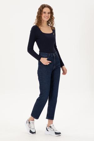 - Kadın Koyu Mavi Straight Fit Jean Pantolon