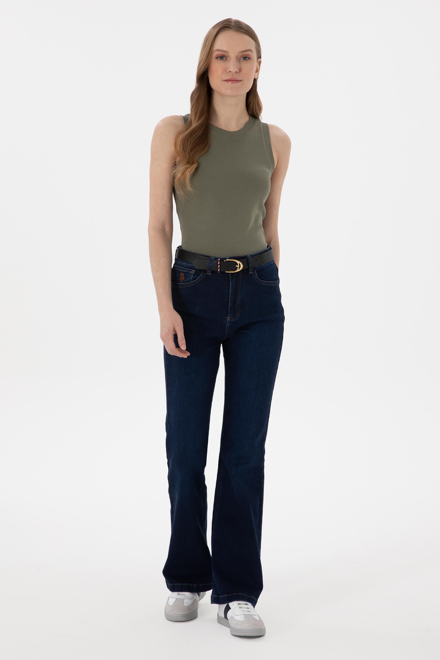 - Kadın Koyu Mavi Slim Flare Fit Jean Pantolon