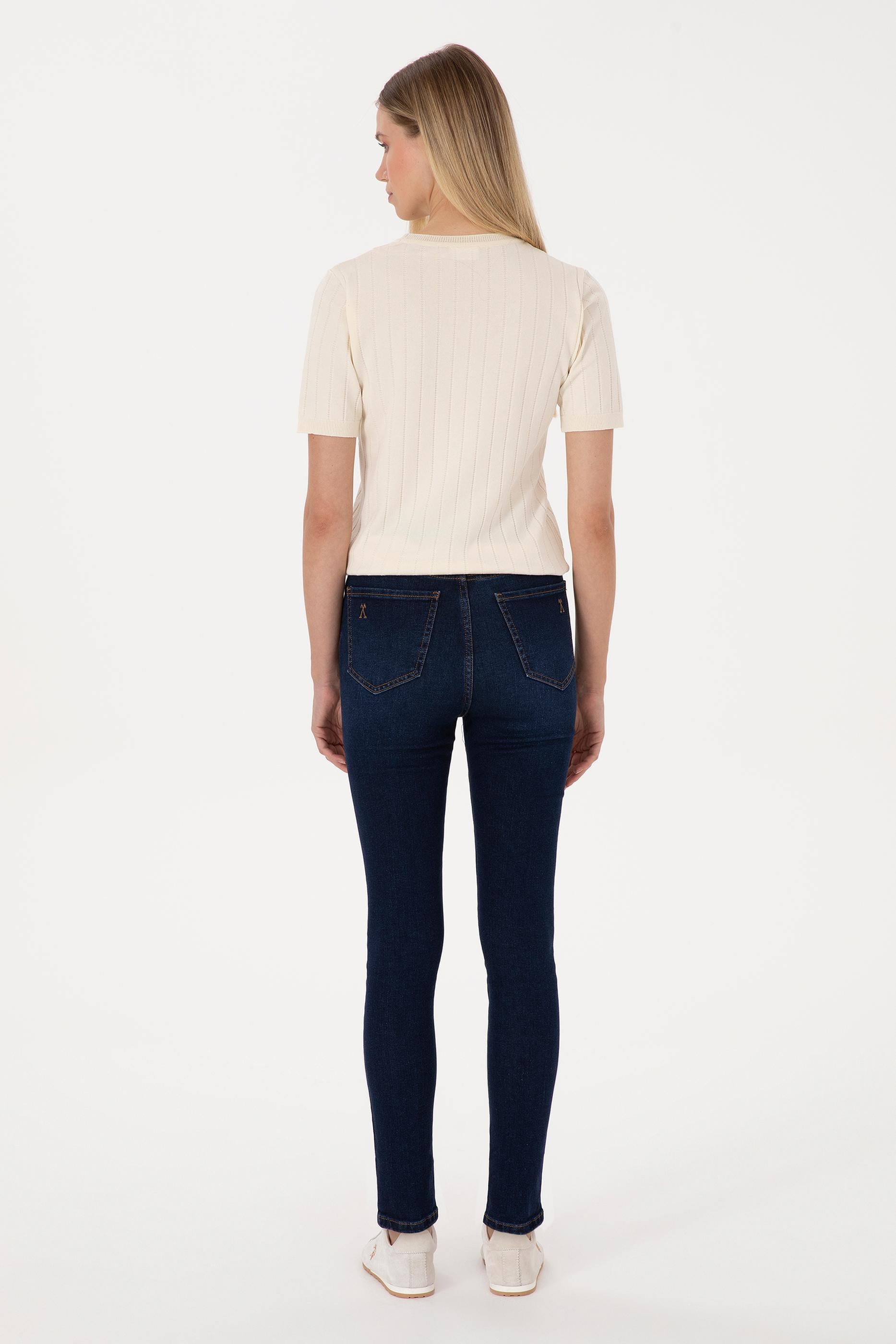 - Kadın Koyu Mavi Skinny High Waist Fit Jean Pantolon