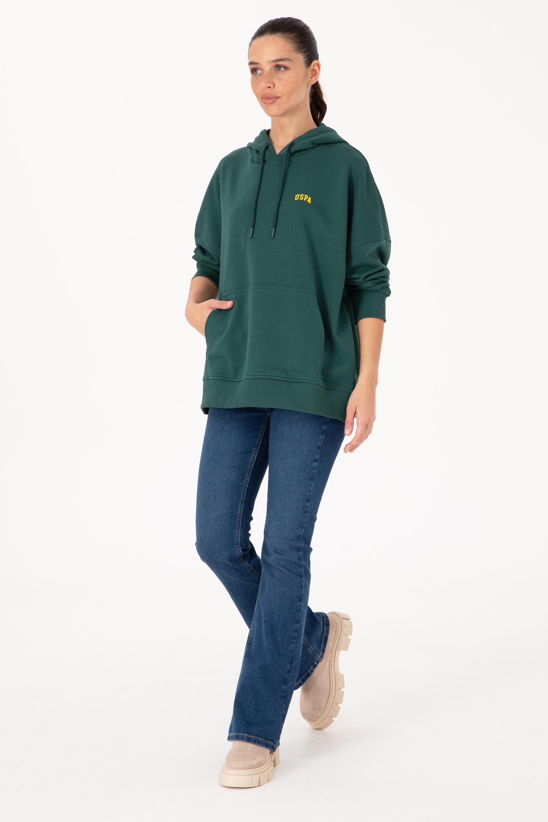 - Kadın Koyu Yeşil Kapüşonlu Basic Sweatshirt