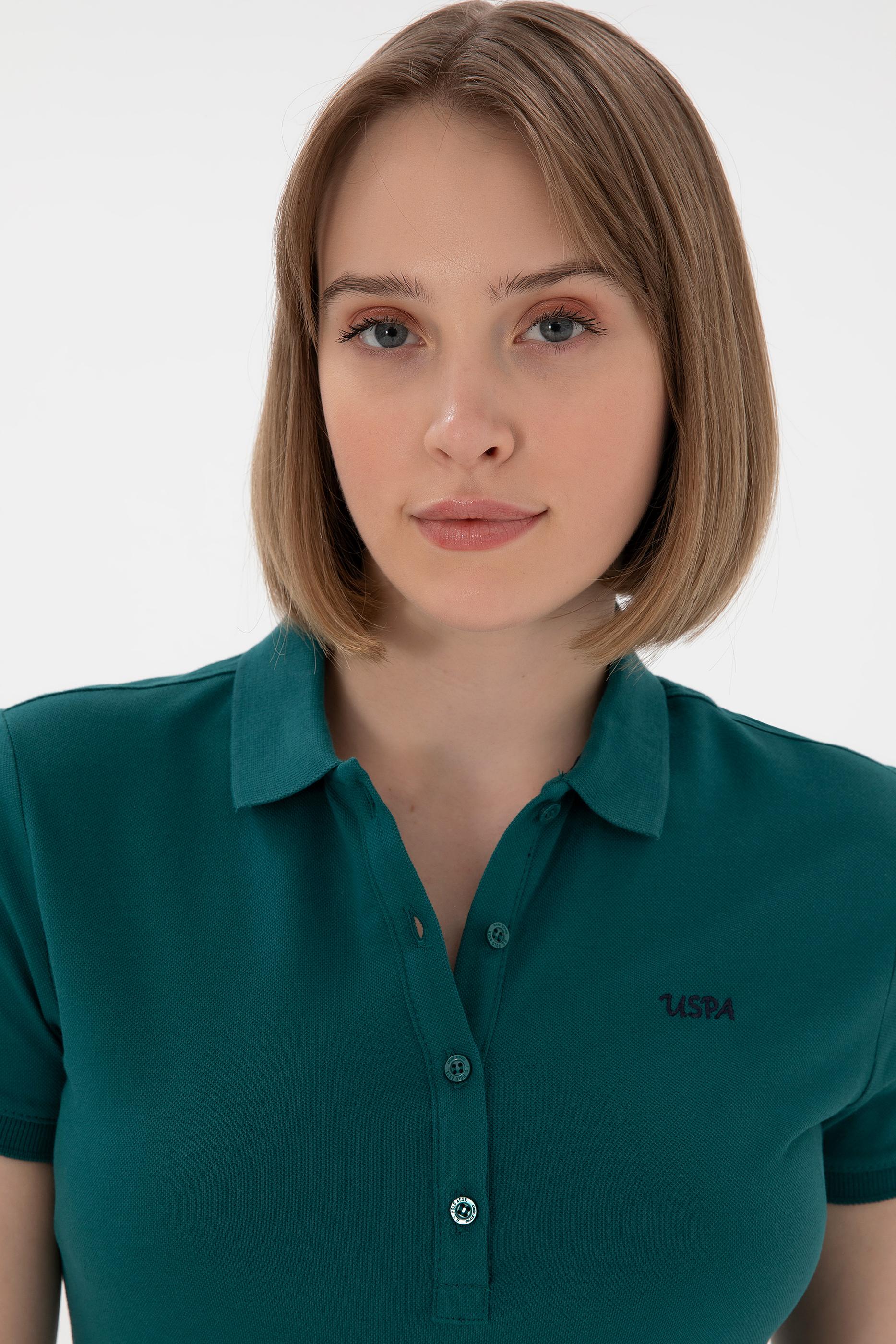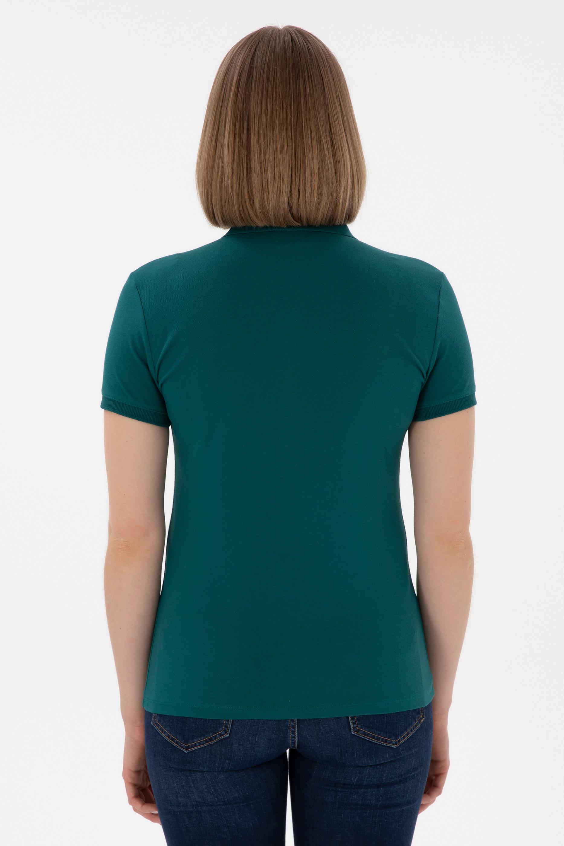 Kadın Koyu Yeşil Basic Polo Yaka Tişört