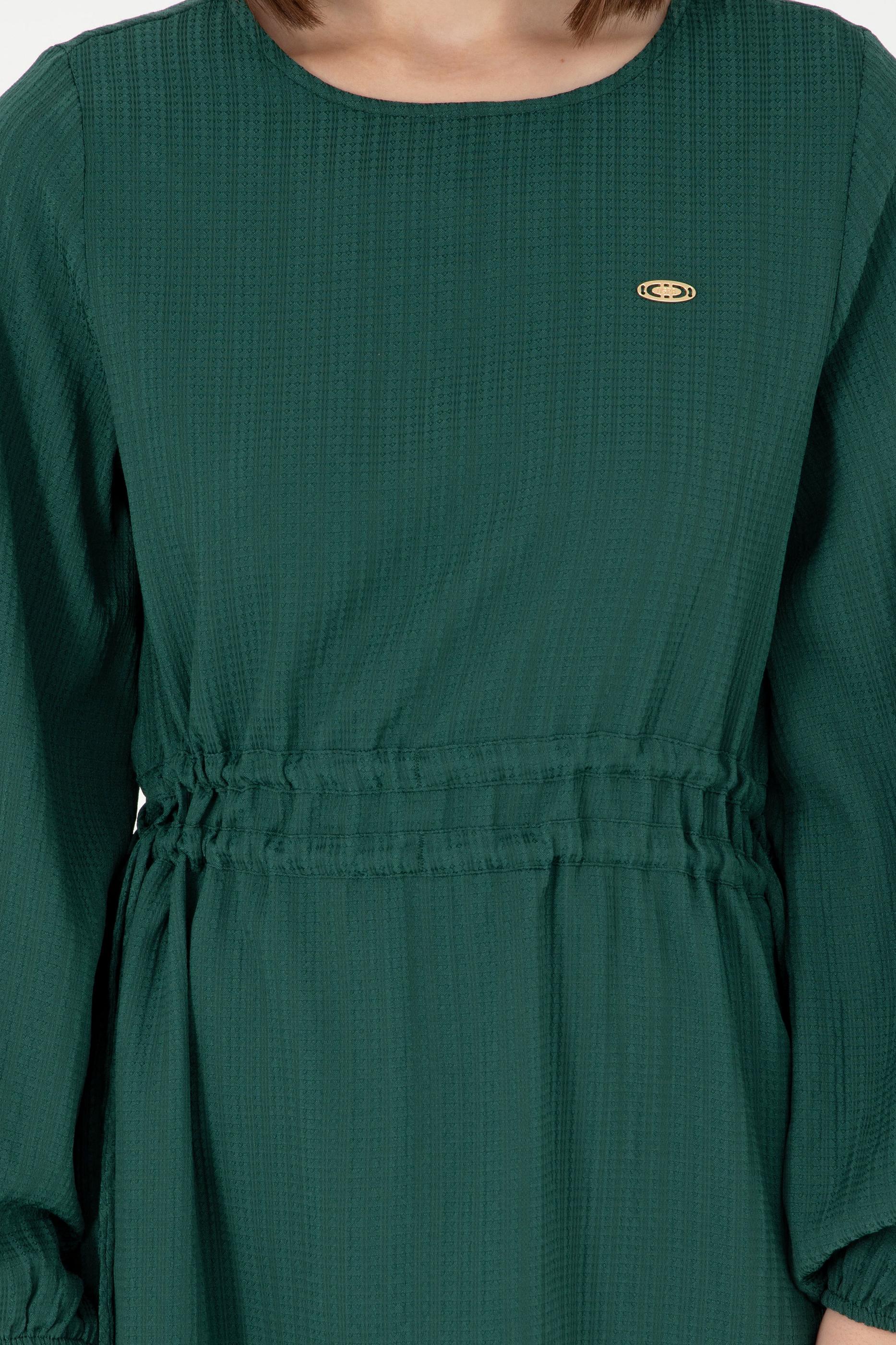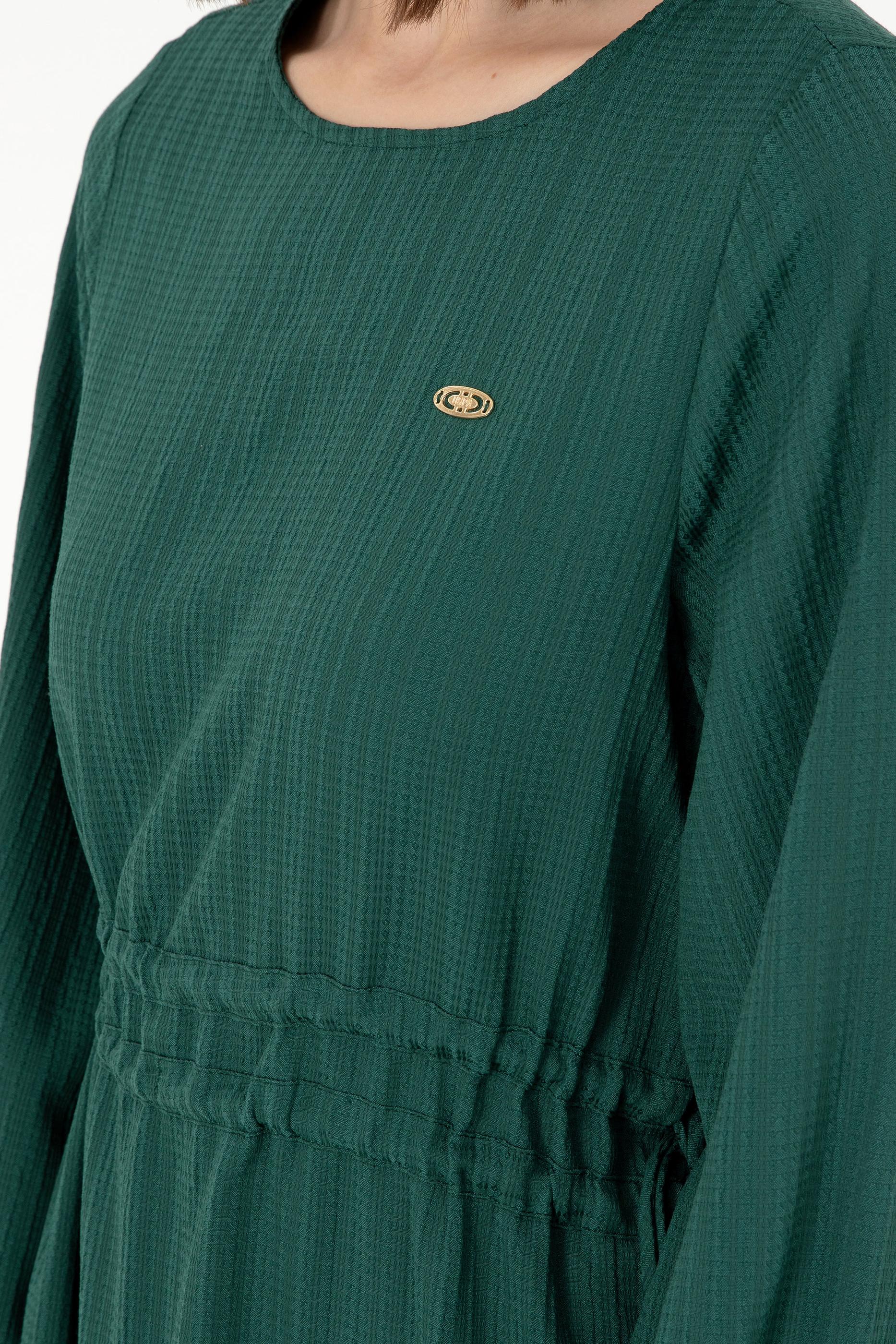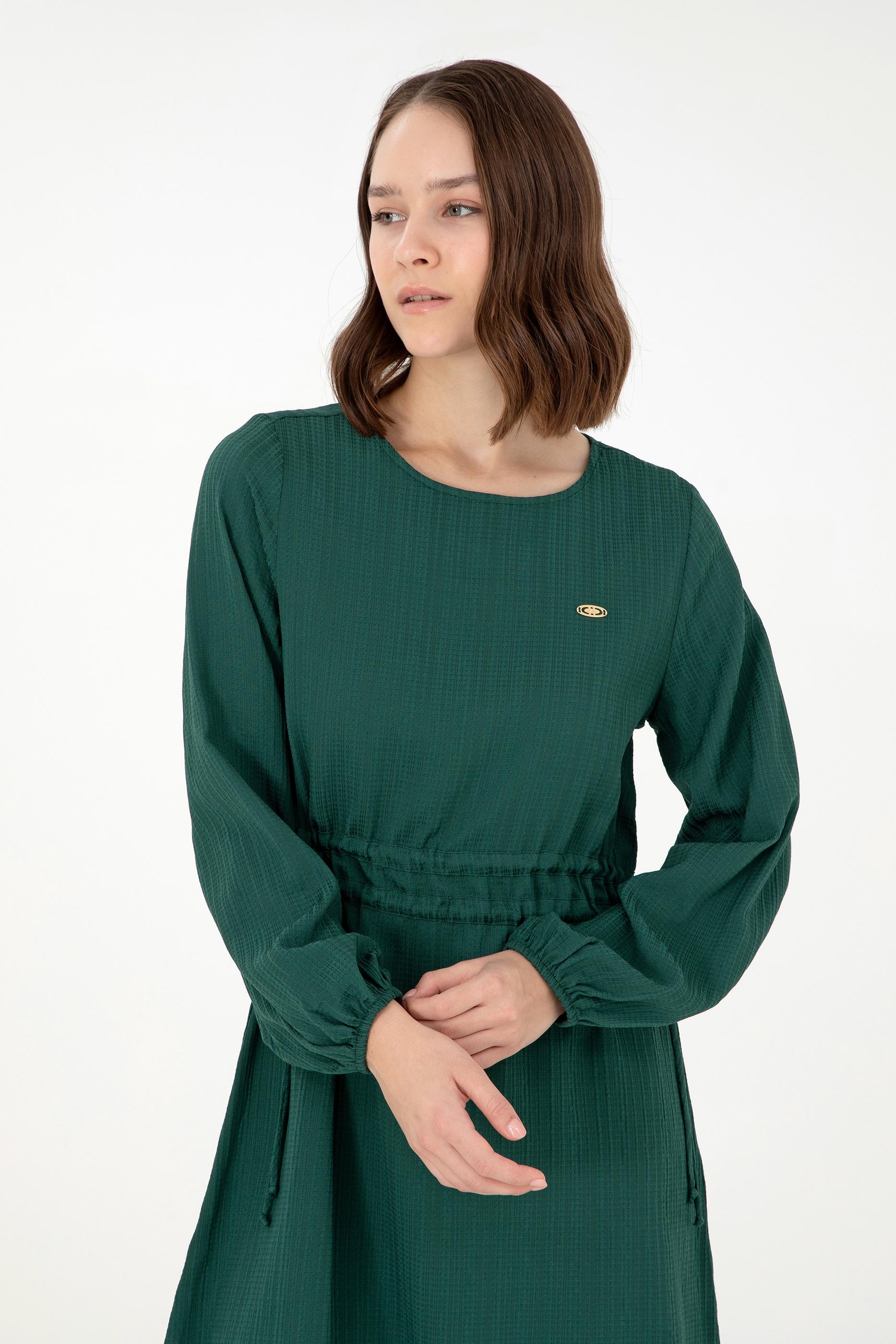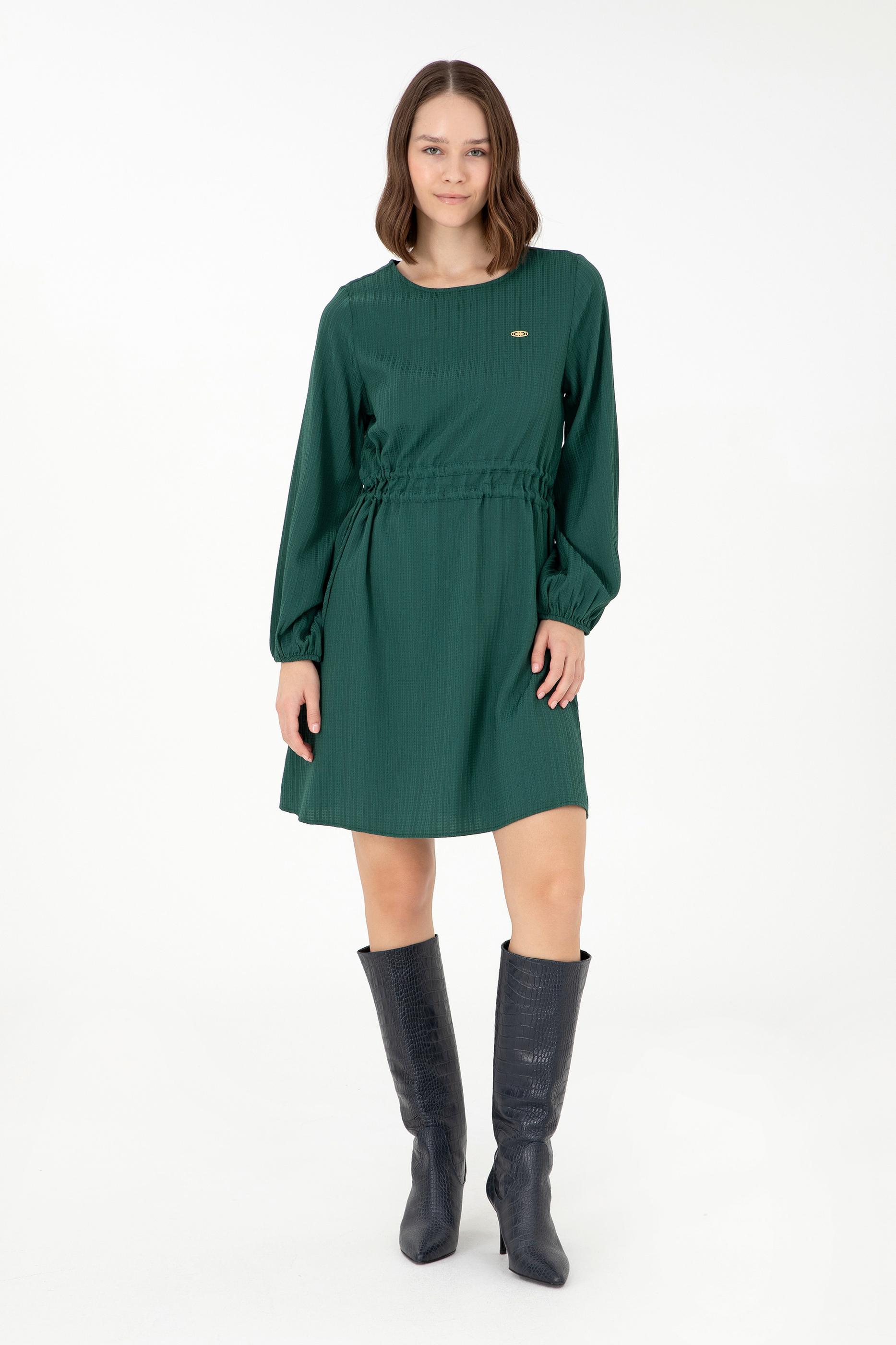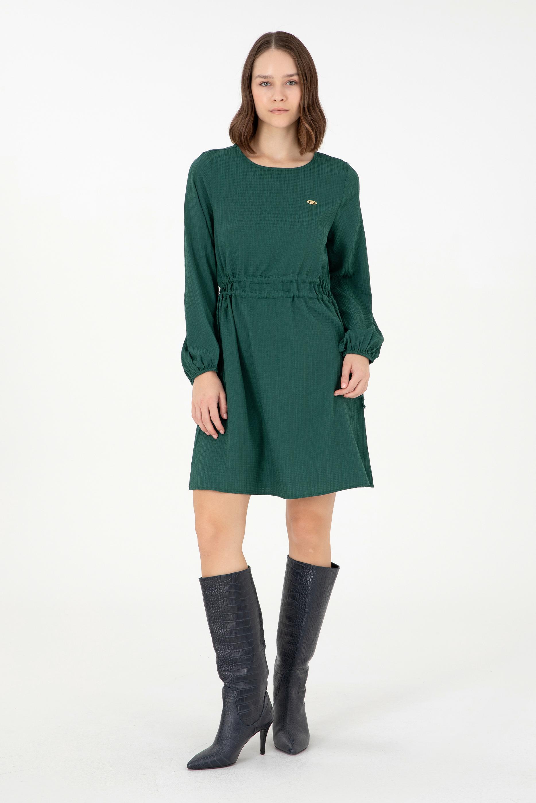 Kadın Koyu Yeşil Dokuma Elbise