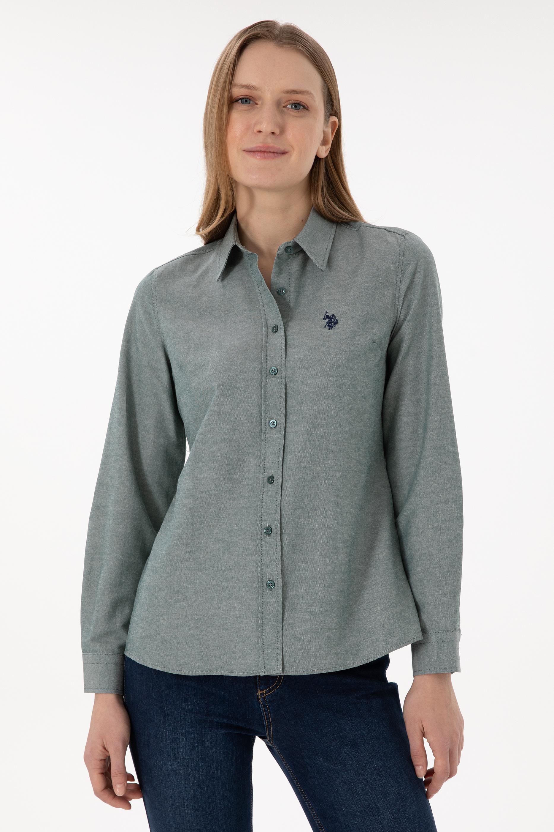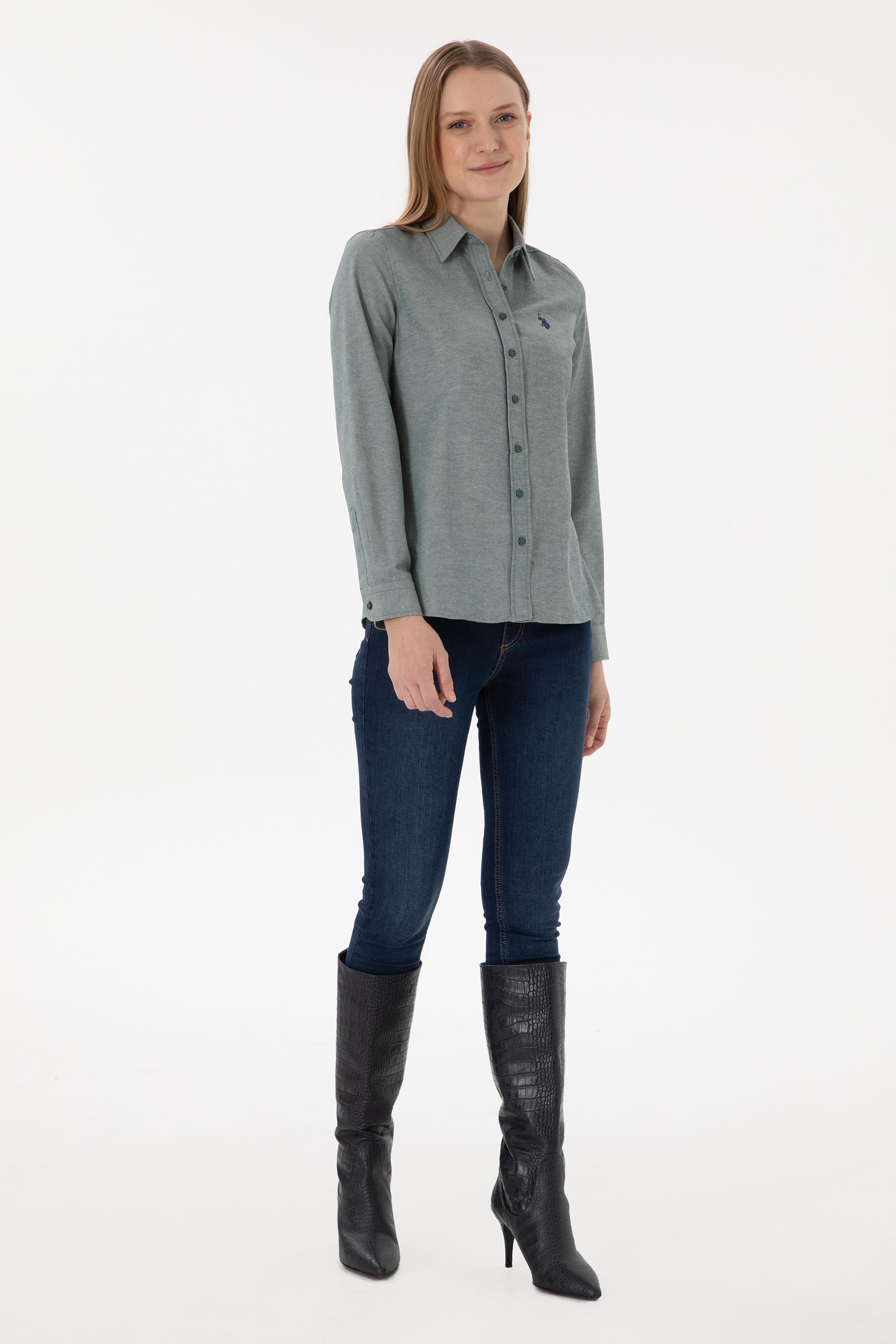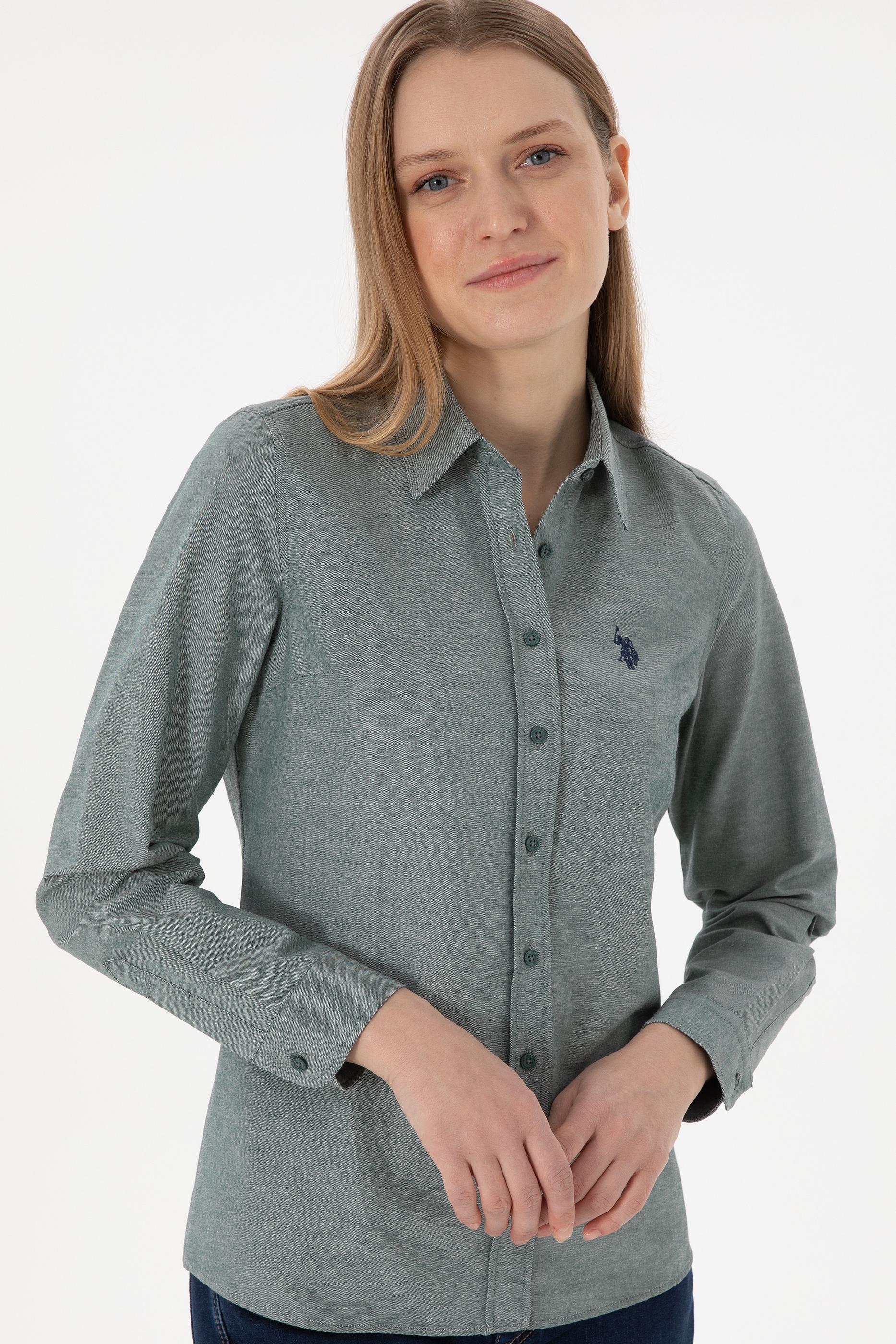 - Kadın Koyu Yeşil Uzun Kollu Basic Gömlek